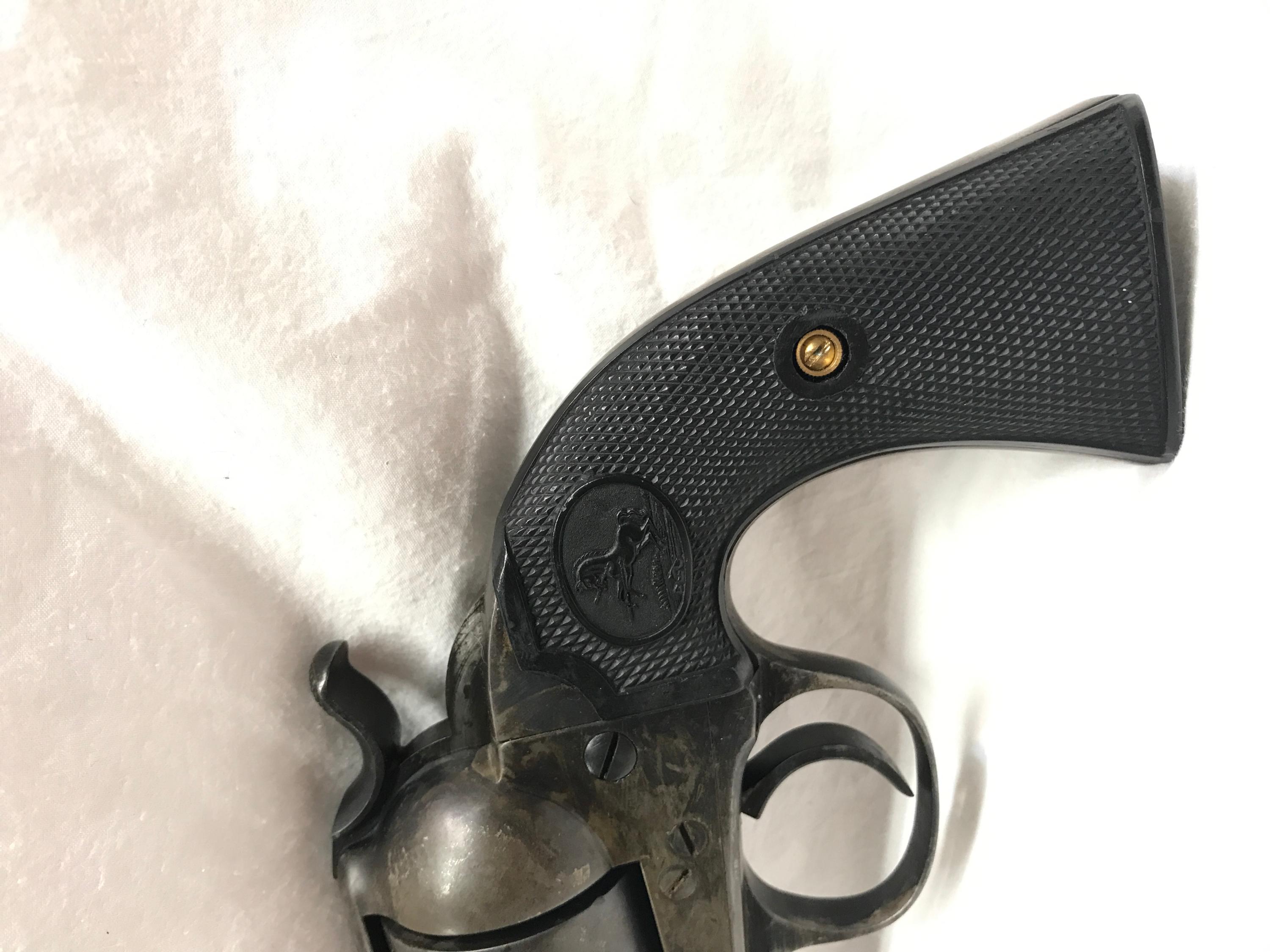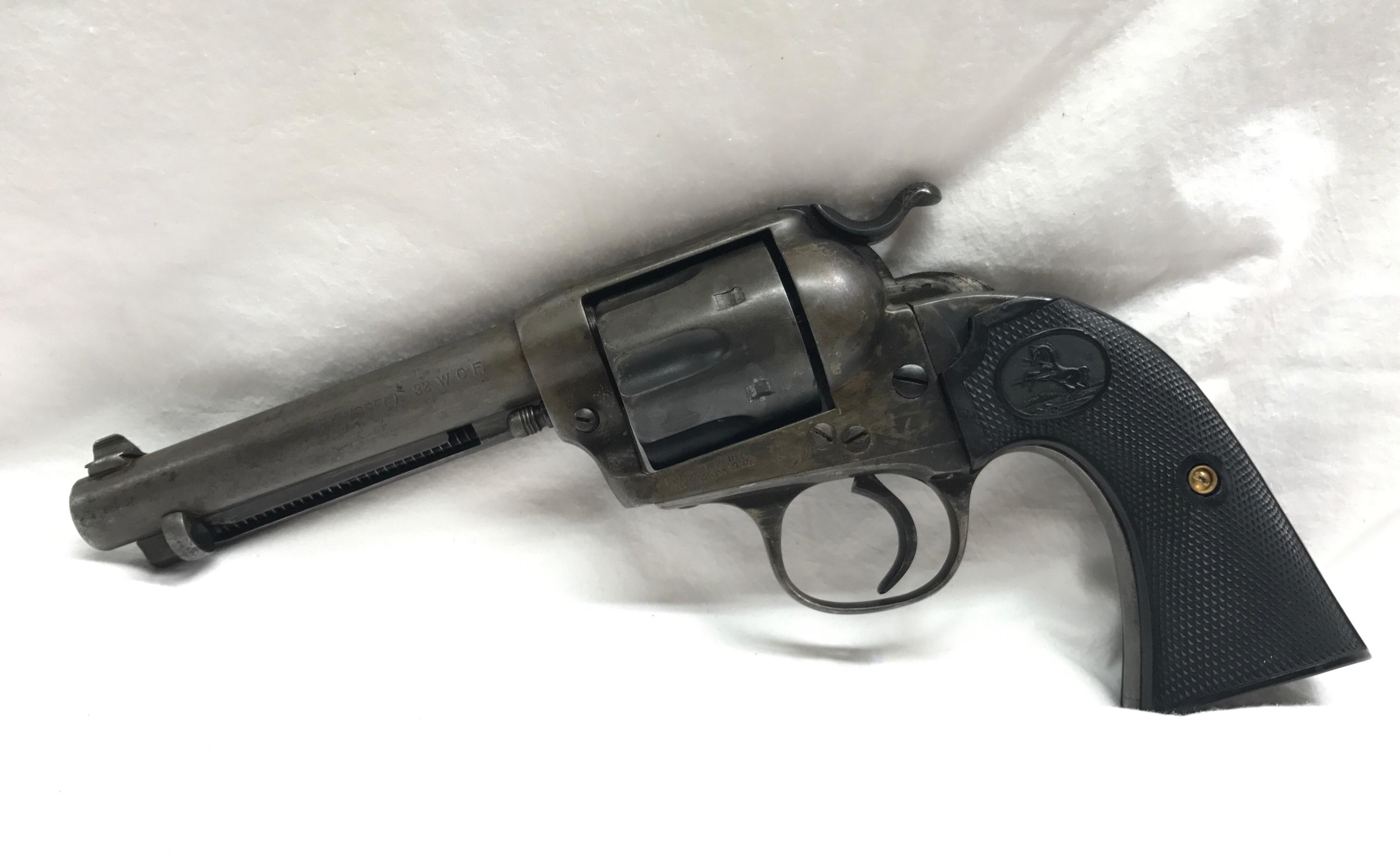 Description: This item just in very nice older Colt ... 6-12-17...........SOLD.....SOLD.....SOLD 32-20 Bisley serial shows it made in 1904 serial is 254930 4 and 7/8 barrel length it appears the front sight is not the orig one (Lyman front site) very smooth and good timing great trigger SOLD Curio/Relic: Yes |