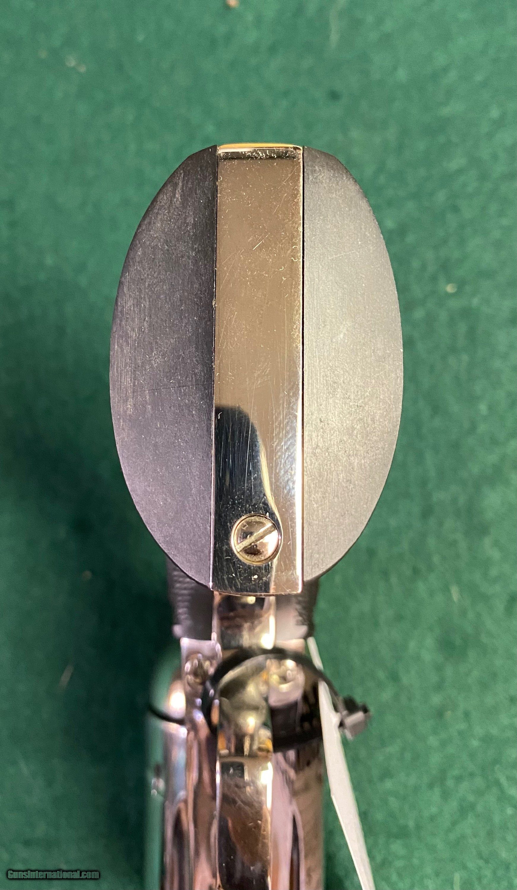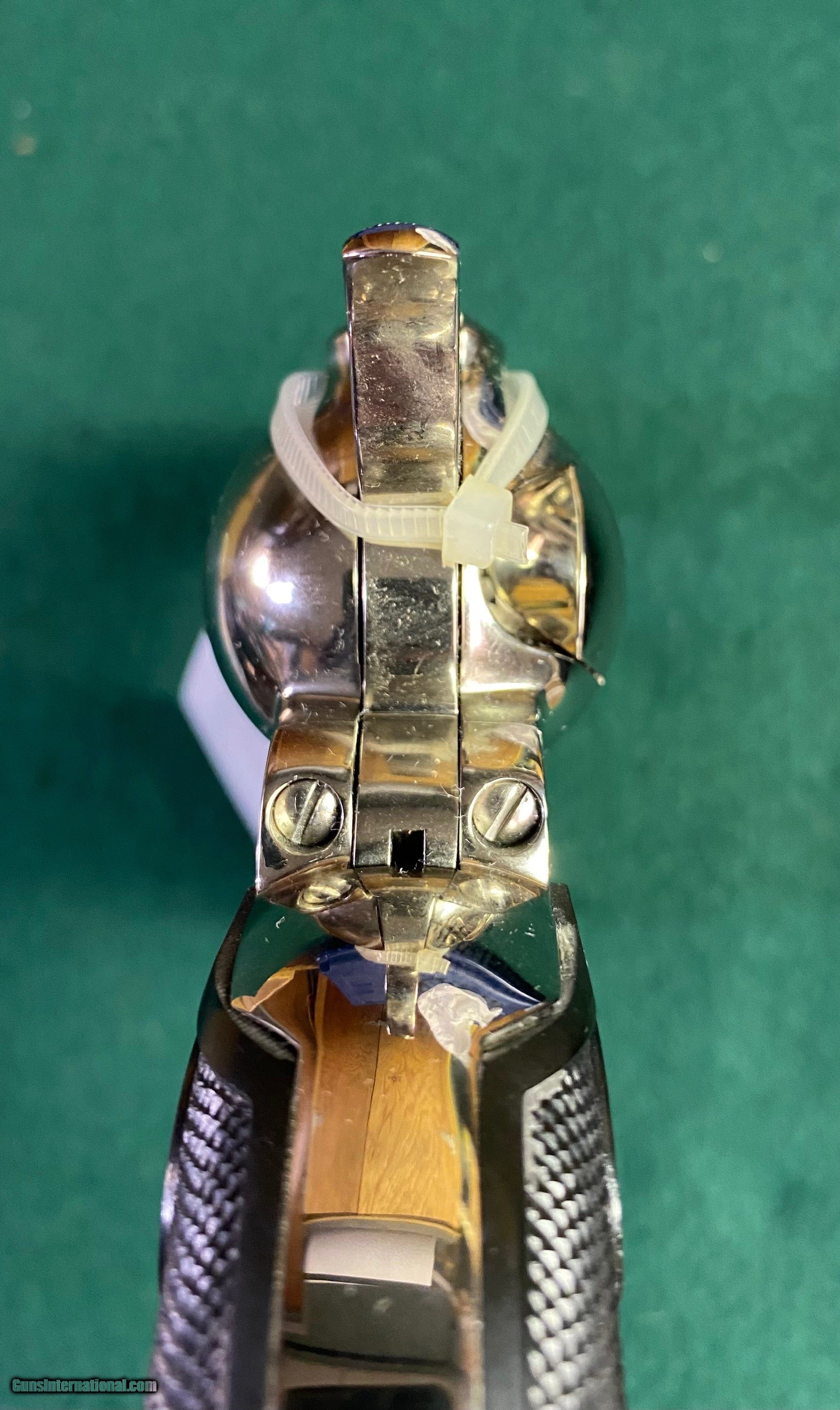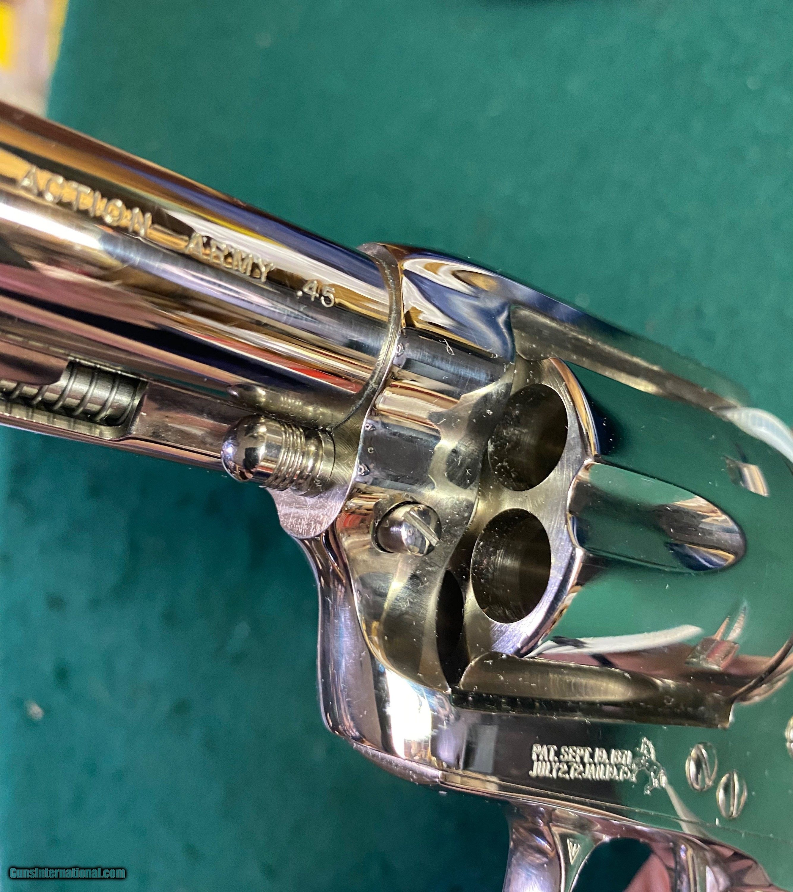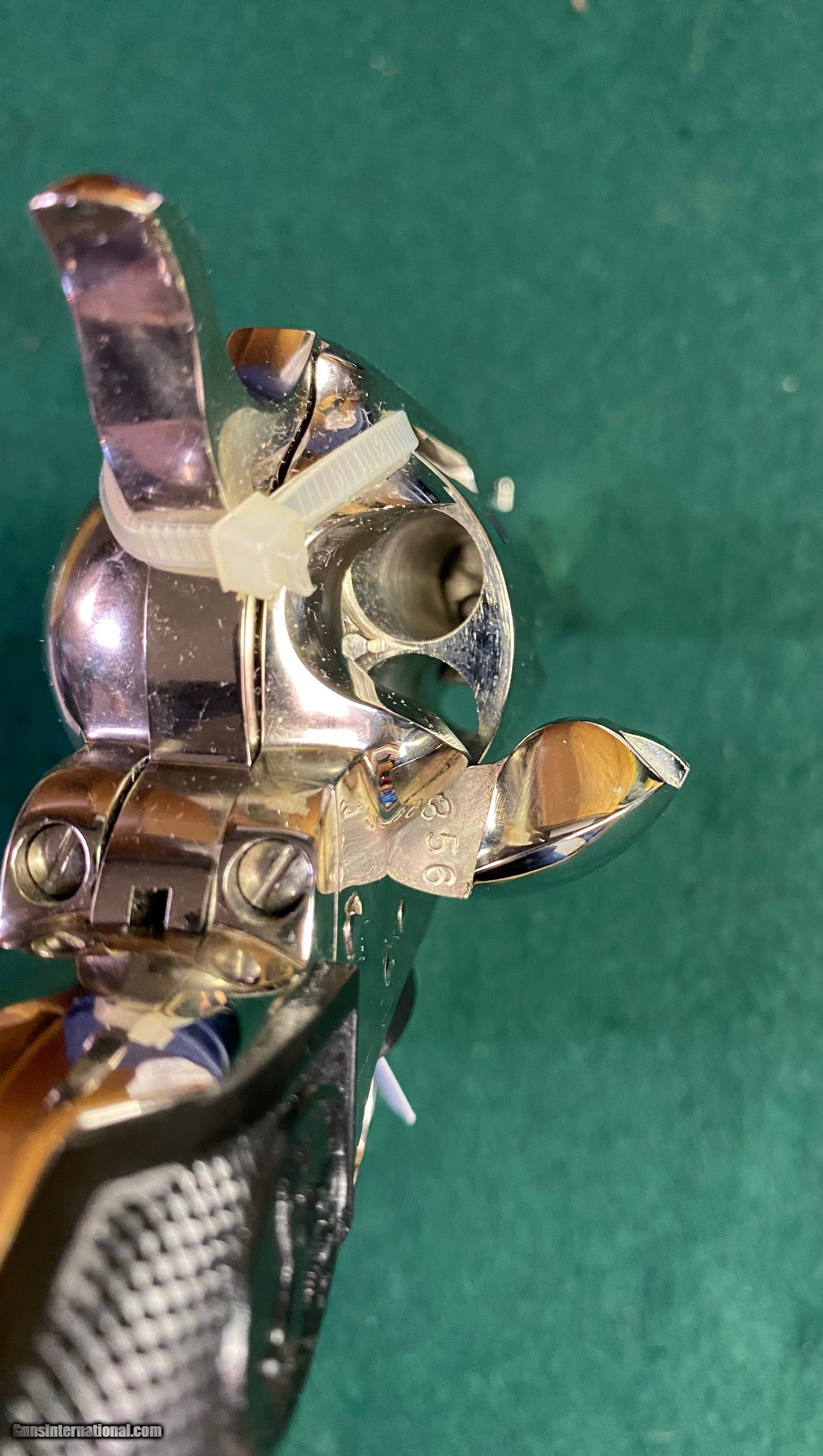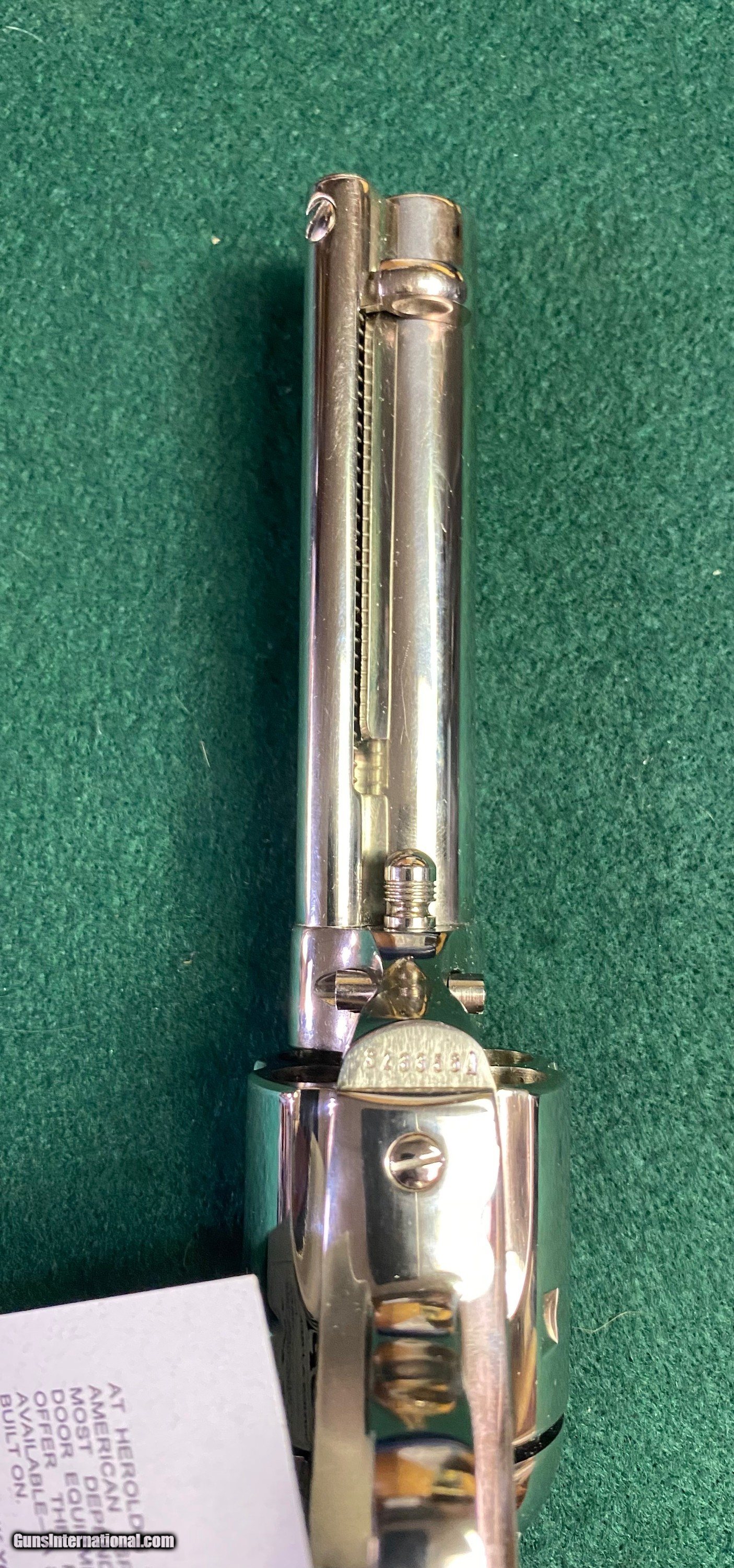 Description: Yet another jewel of a Colt Single Action Army revolver has arrived at our shop on consignment. This time it's a third generation SAA that comes with the box and is "As-New". Caliber is .45LC w/a 4 3/4" barrel. Has a zip tie around the hammer so that cylinder won't rotate and leave a dragline. (This item can be considered new old stock) Please see pictures for more details. We reserve the right to sell this item at our retail location until an offer is placed on Guns International. Once funds are received for this item, it is removed from our sales floor. $3150 + $30 for shipping. Business hours are Tuesday through Saturday, 9 AM to 5 PM. Closed on Sunday and Monday. Credit cards are welcome with a 4% fee. Personal checks are also accepted, however we do not ship the item until your check clears our bank. Stop on by and see our wide selection of vintage and modern firearms at George Herold's Gun Shoppe located in Waynesboro, Pa. George and Denise welcome you to the shop. SOLD Handgun Caliber: .45 Colt Manufacturer: Colt Model: Single Action Army Serial Number: S2335xx Barrel Length: 4 3/4” Condition: As new w/box |