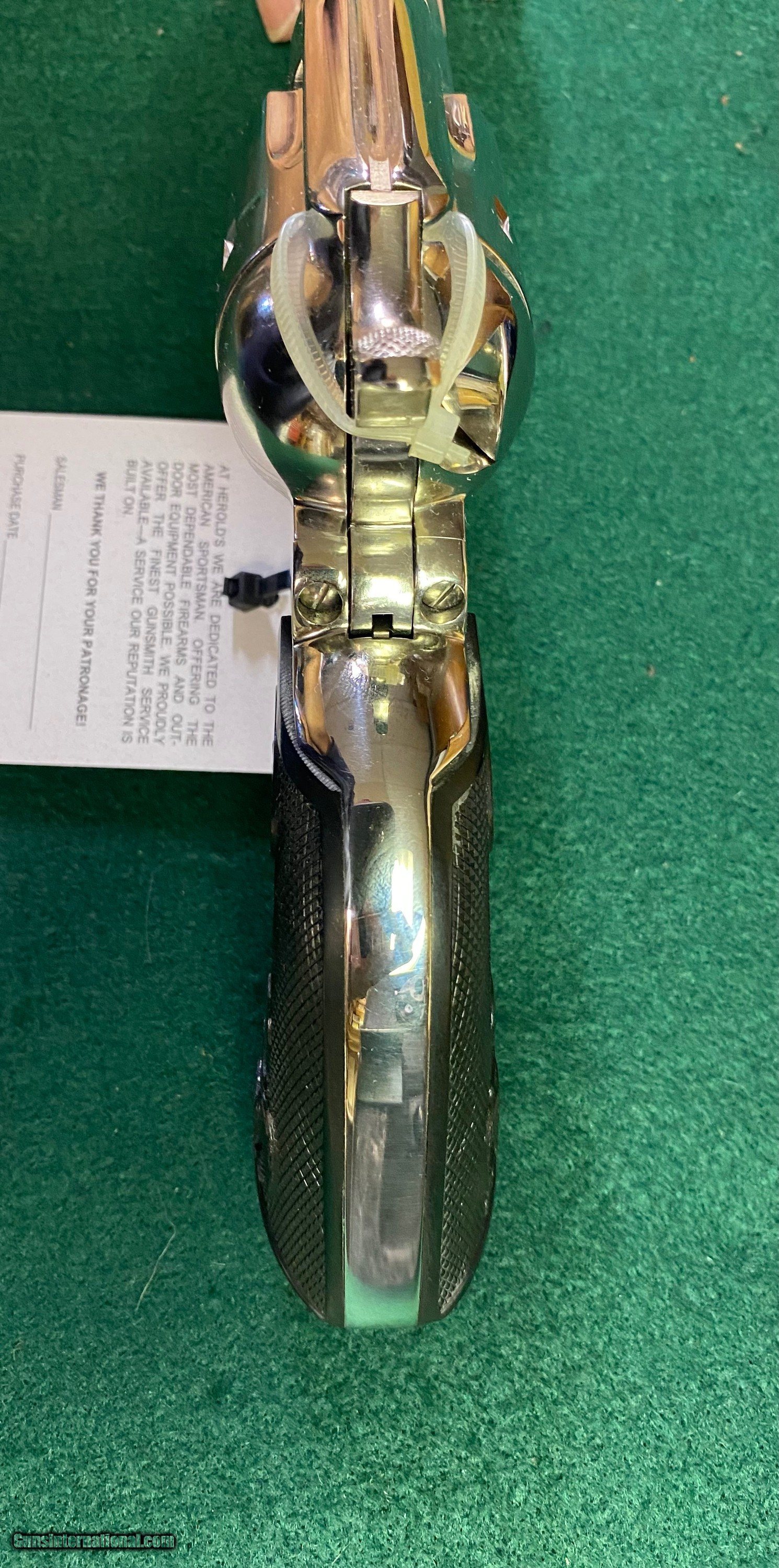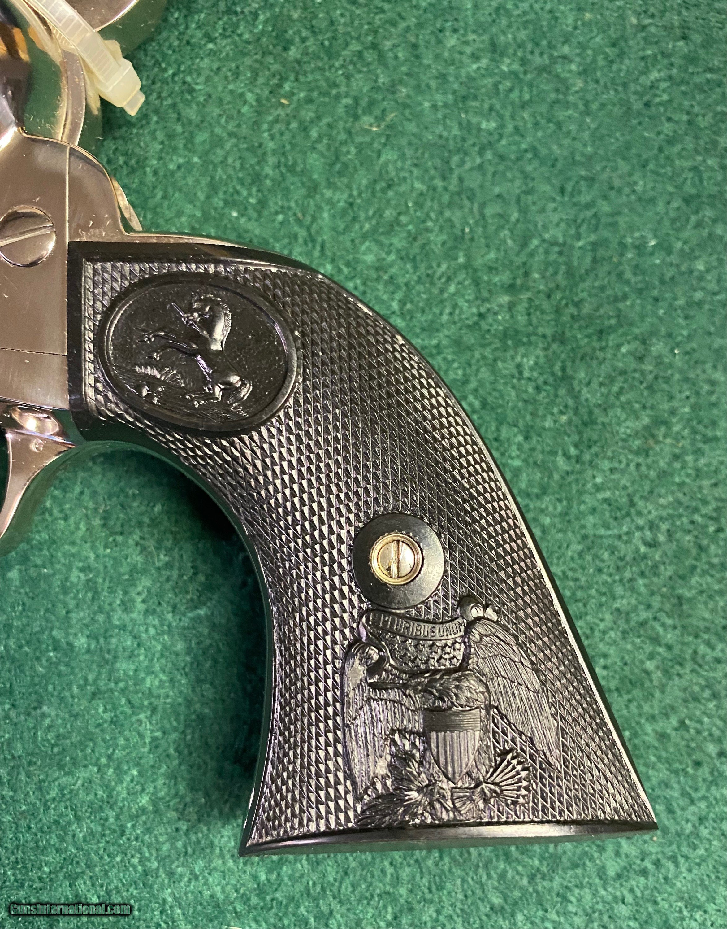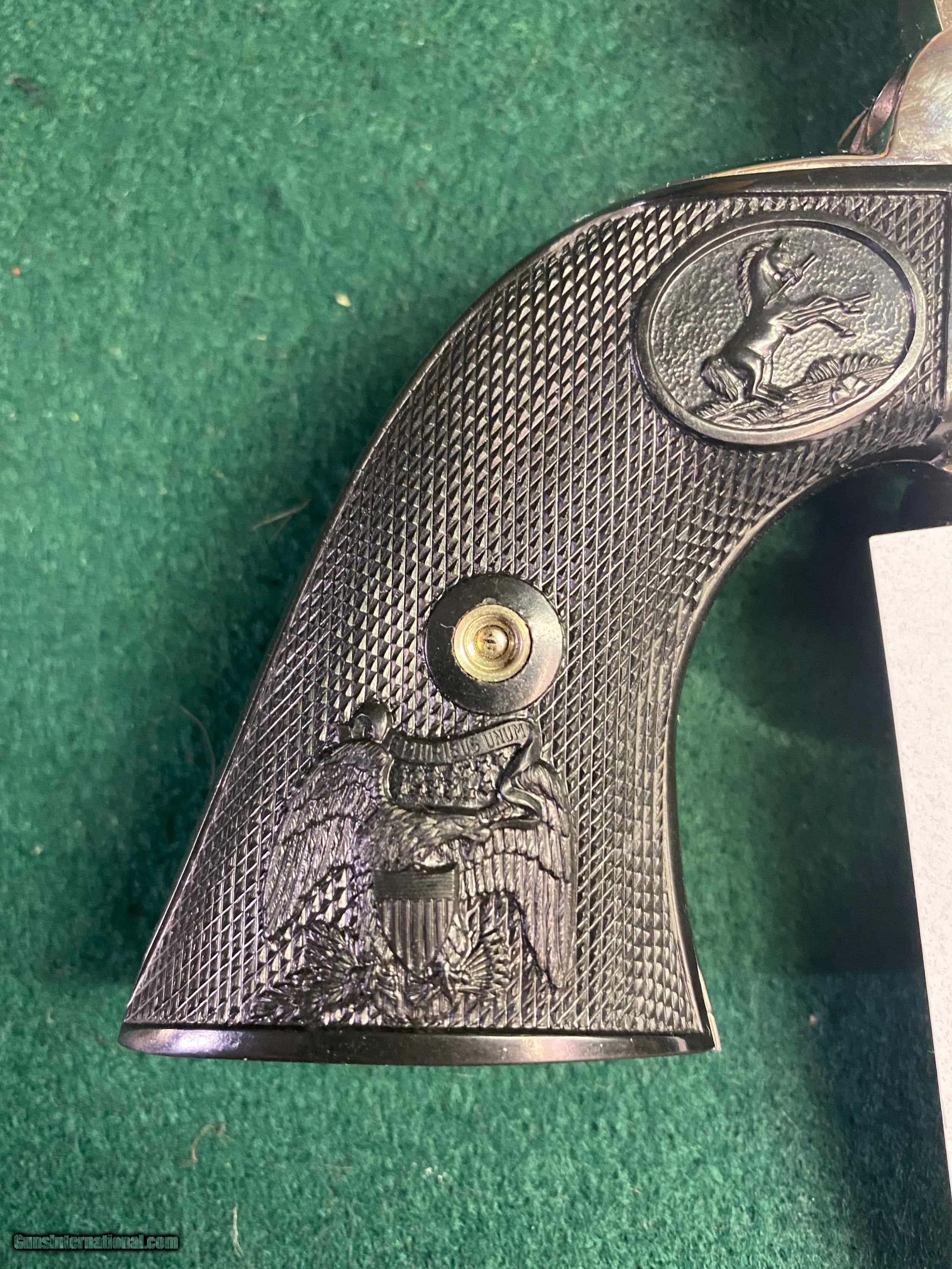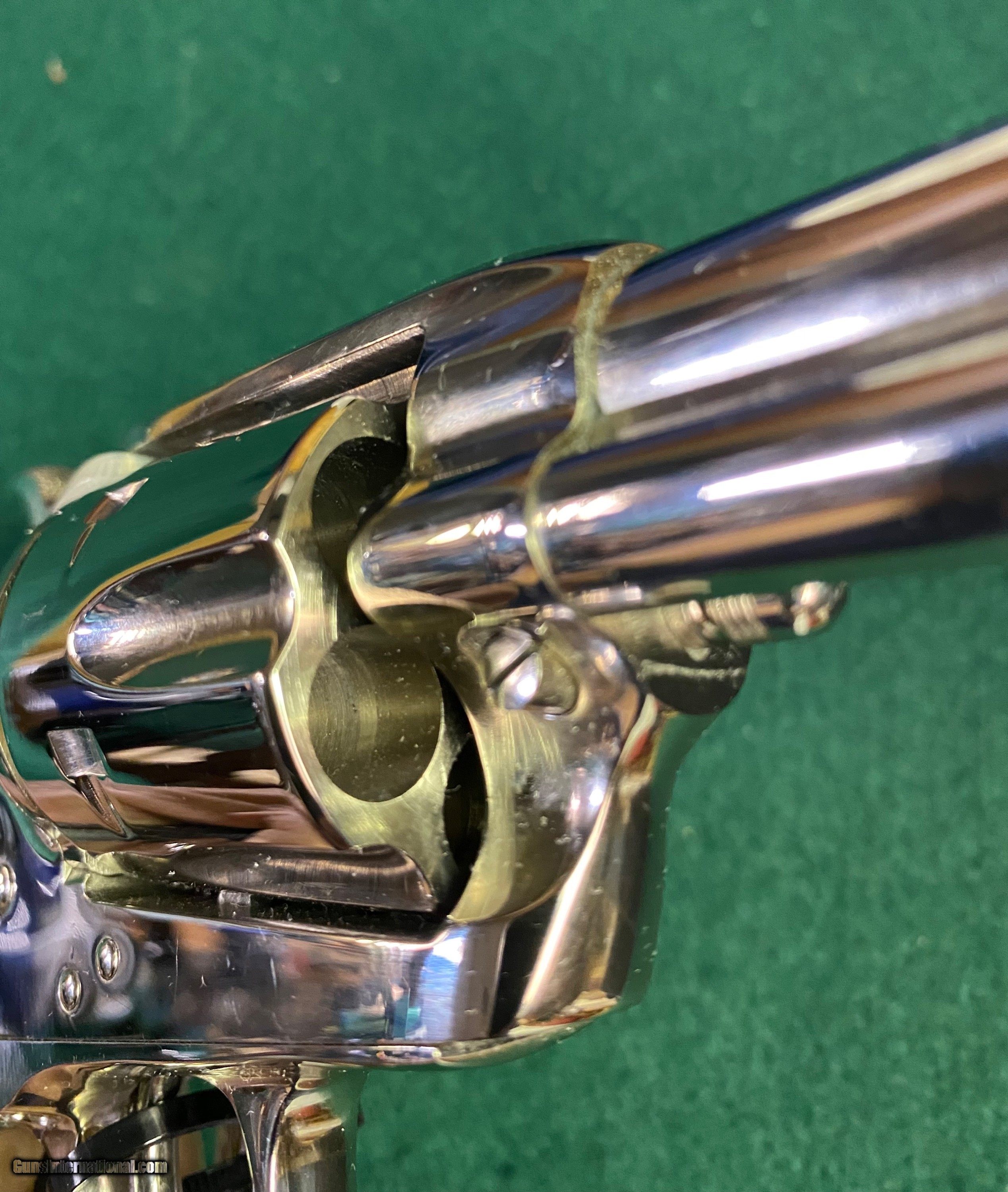 Description: Yet another jewel of a Colt Single Action Army revolver has arrived at our shop on consignment. This time it's a third generation SAA that comes with the box and is "As-New". Caliber is .45LC w/a 4 3/4" barrel. Has a zip tie around the hammer so that cylinder won't rotate and leave a dragline. (This item can be considered new old stock) Please see pictures for more details. We reserve the right to sell this item at our retail location until an offer is placed on Guns International. Once funds are received for this item, it is removed from our sales floor. $3150 + $30 for shipping. Business hours are Tuesday through Saturday, 9 AM to 5 PM. Closed on Sunday and Monday. Credit cards are welcome with a 4% fee. Personal checks are also accepted, however we do not ship the item until your check clears our bank. Stop on by and see our wide selection of vintage and modern firearms at George Herold's Gun Shoppe located in Waynesboro, Pa. George and Denise welcome you to the shop. SOLD Handgun Caliber: .45 Colt Manufacturer: Colt Model: Single Action Army Serial Number: S2335xx Barrel Length: 4 3/4” Condition: As new w/box |