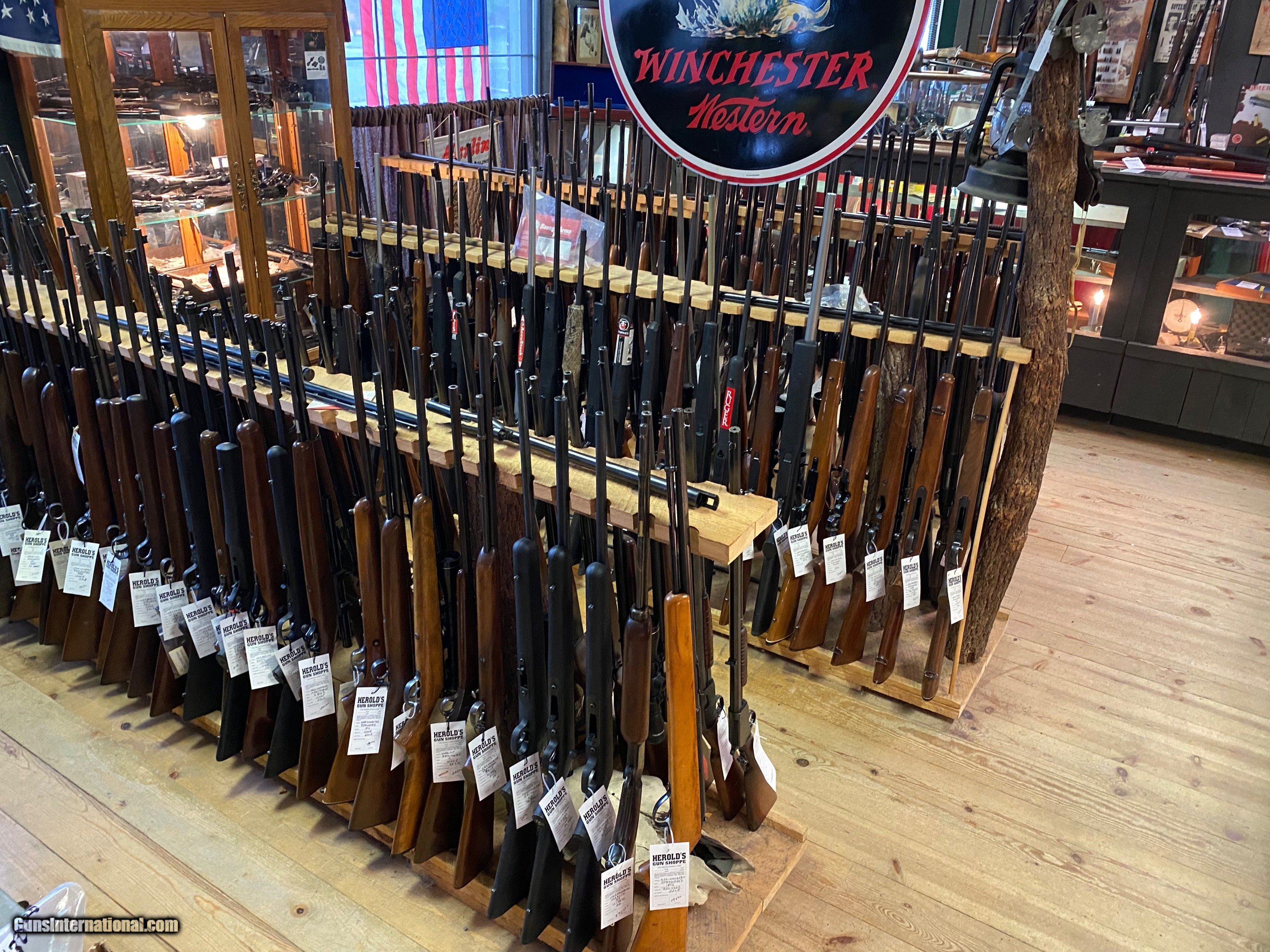 About Us: We are an “Old School” gun store with a vintage Western style. We do carry various modern pistols, revolvers and long guns. However, our specialty is vintage firearms including bolt action, lever action and semi automatic rifles. For example, we usually have at least two or three M-1 Garand rifles at any given moment. Other times we may have one or two Springfield 1903 rifles. Also in stock are a few dozen lever action rifles available in different calibers & barrel lengths. Lastly, we have a wide variety of Colt Single Action Army revolvers in different calibers and barrel lengths. (NOTE: we try & remove items from Guns International ASAP if they are sold through our retail location, but there may be a slight delay in doing so)