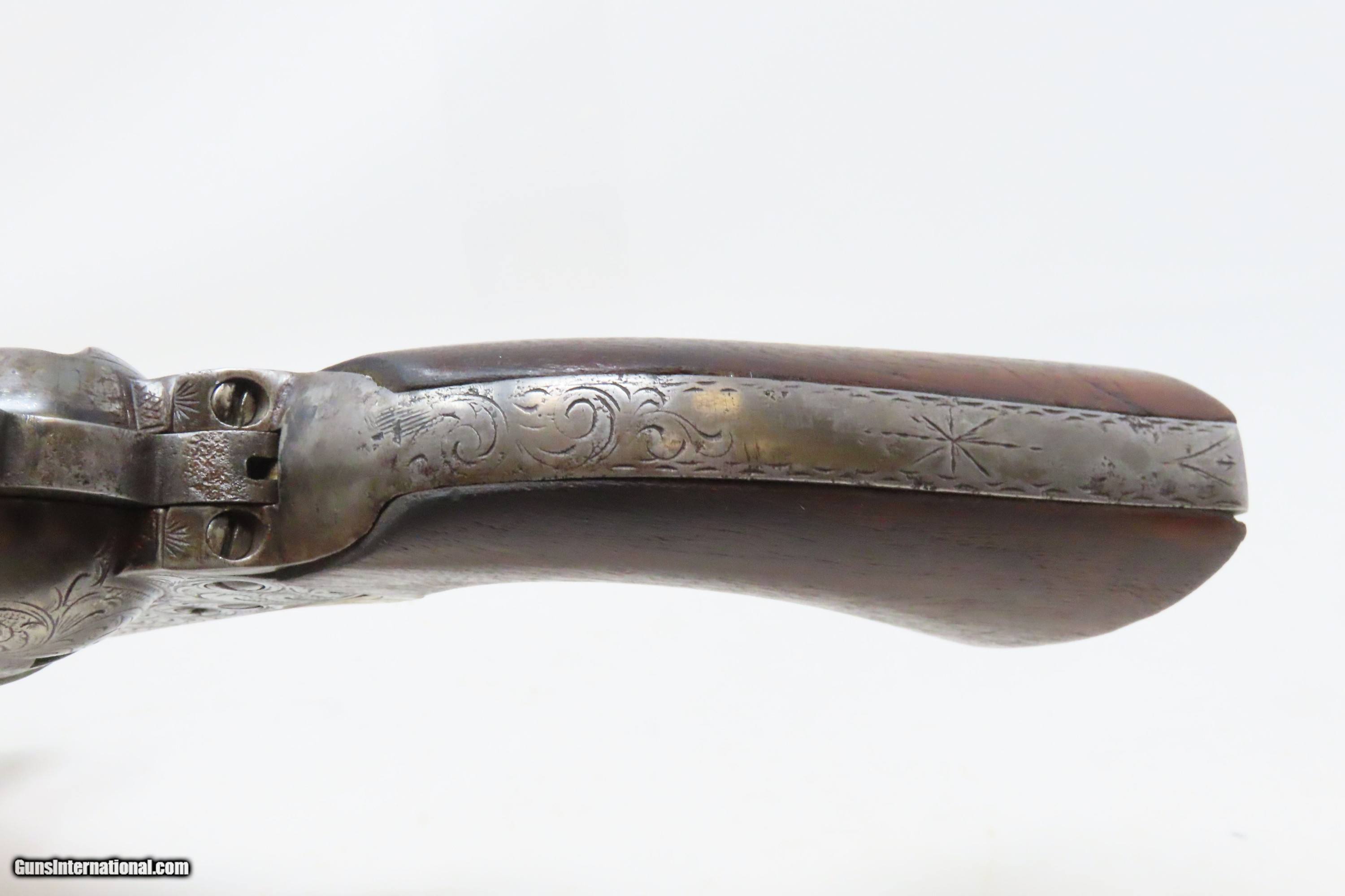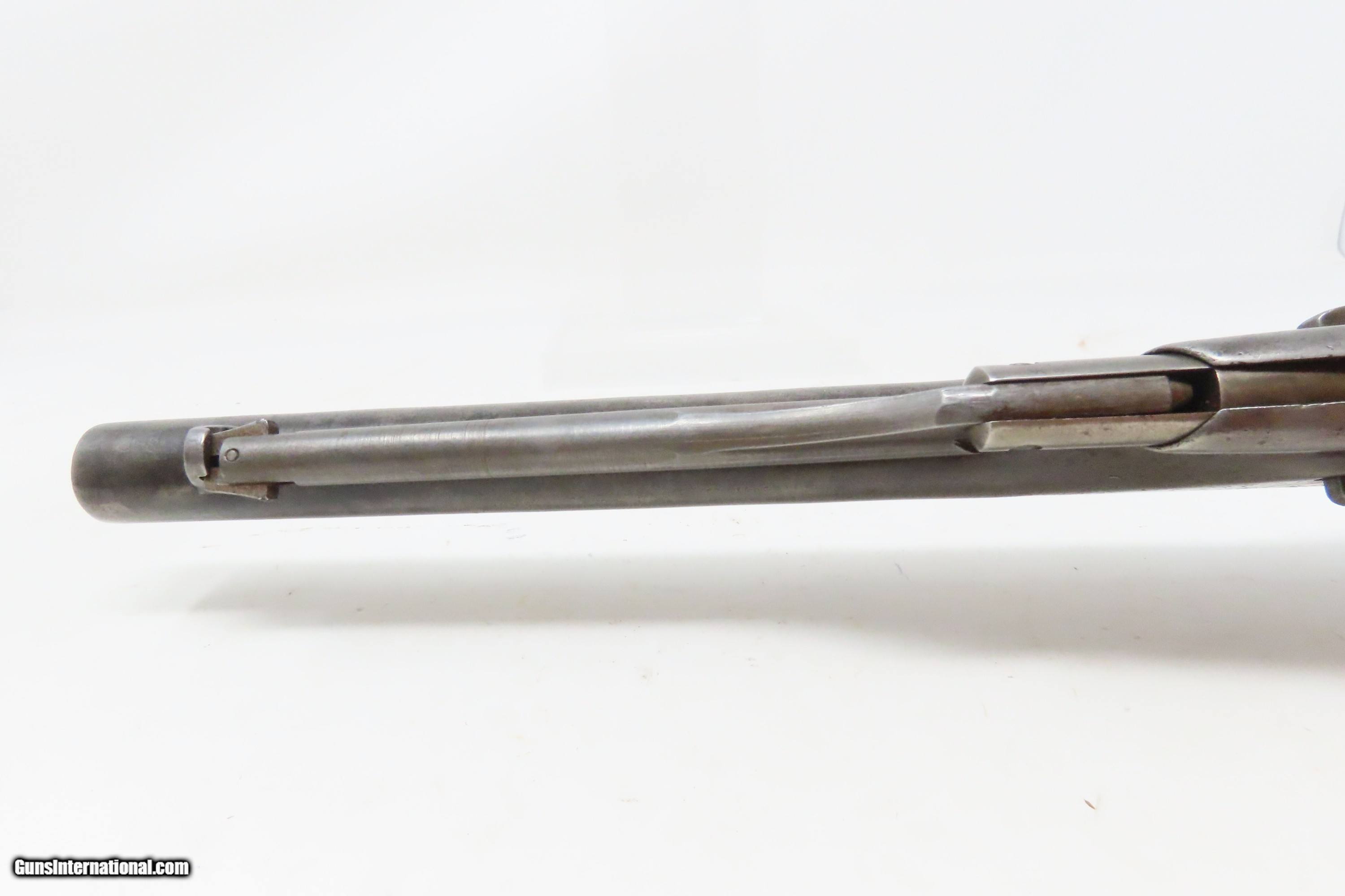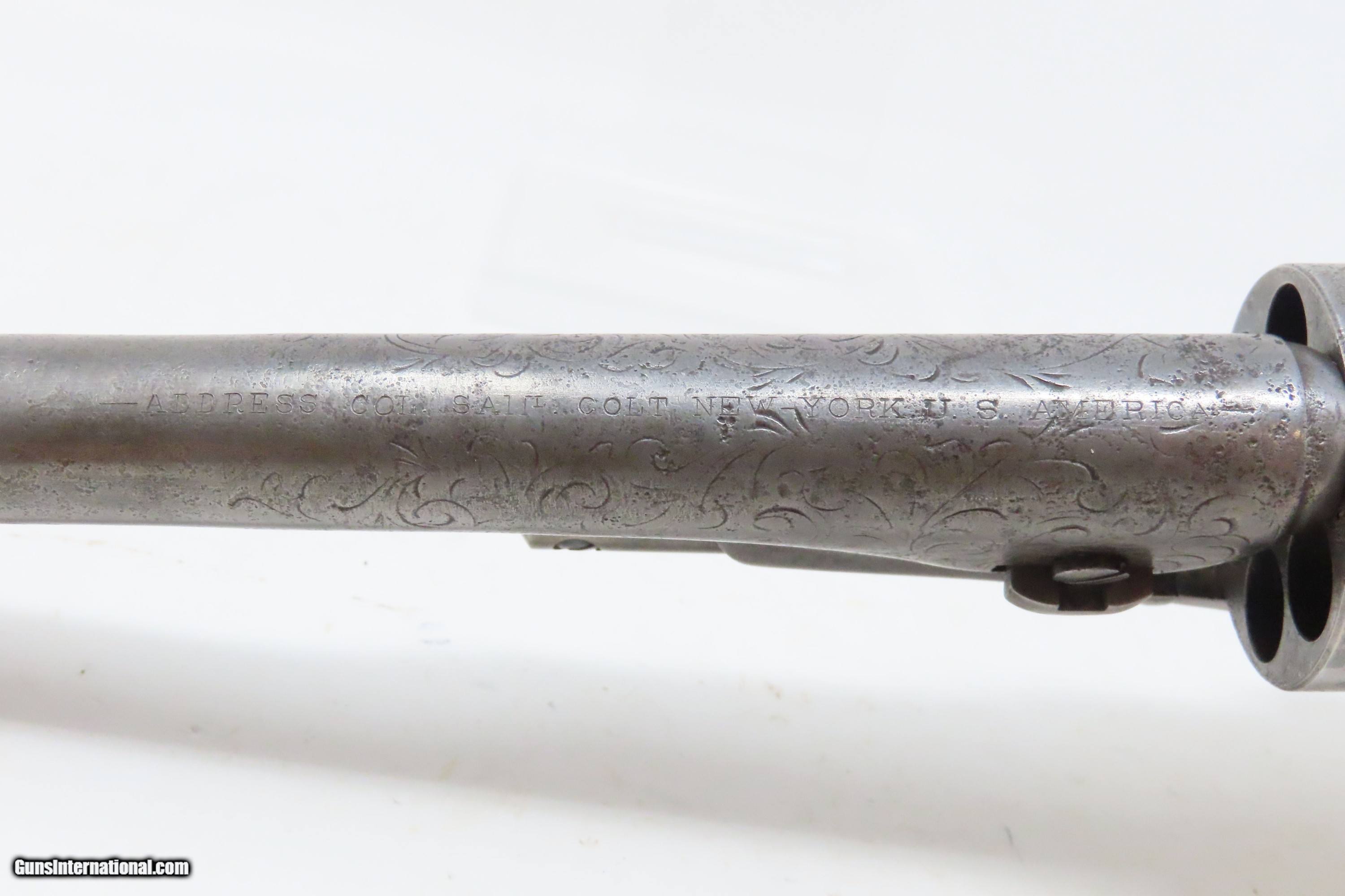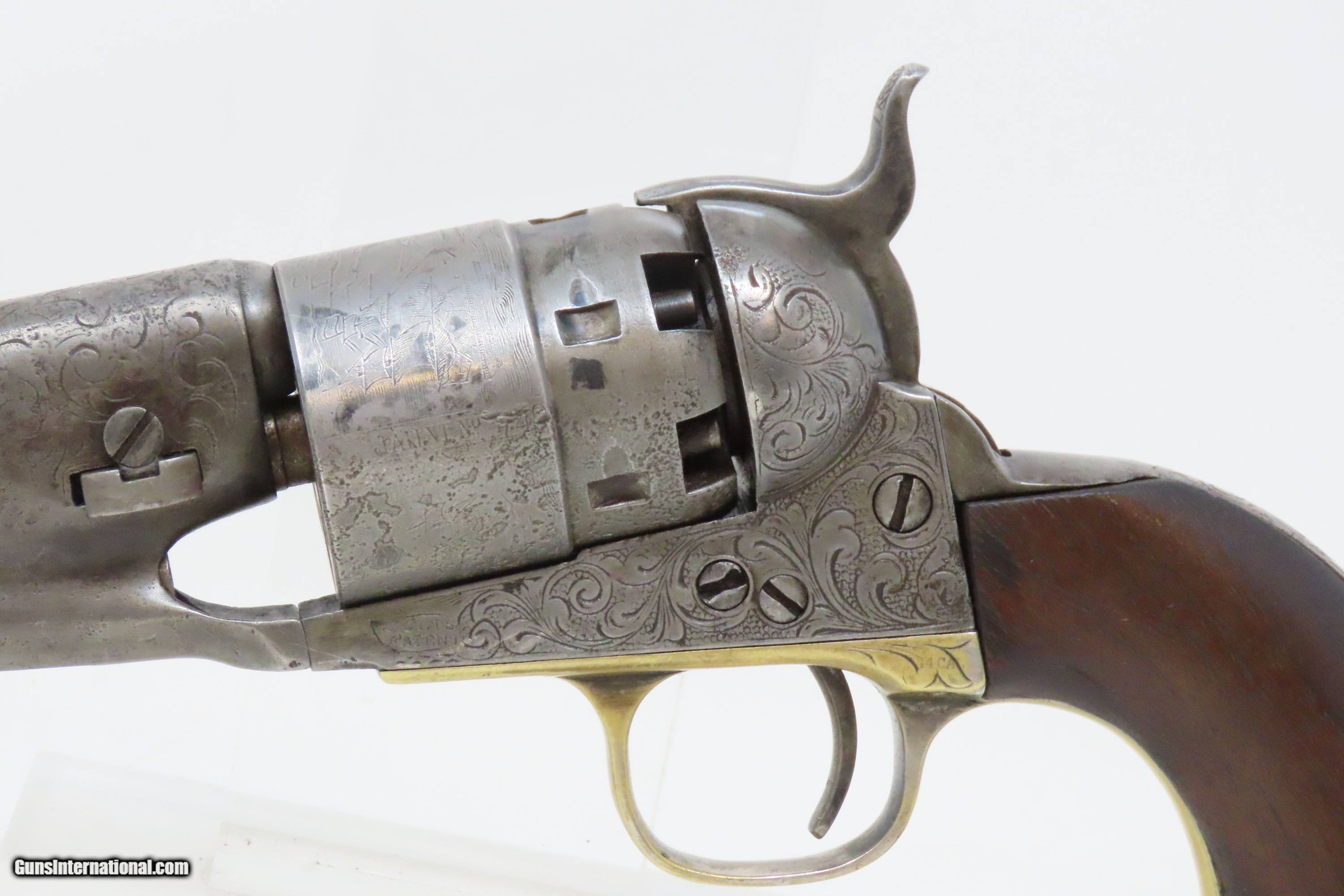 Description: ENGRAVED Antique Model 1860 COLT ARMY .44 Percussion “WILD WEST” Revolver ICONIC Revolver Used in WESTWARD EXPANSION Here we present an antique Engraved Colt Model 1860 Army Percussion Revolver, made in 1870 in Hartford, Connecticut. The 1860 Army was the single most used pistol of the American Civil War. Over 200,000 were made from 1860 to 1873, and 156,000 of those were made by the end of the war in 1865. These were excellent sidearms for officers, cavalry, infantry, and artillery troops. The 1860 Army was Samuel Colt’s finest achievement to that point, having finally developed a large caliber revolver that weighed about 2 lbs. 10 oz. to the famous Dragoon’s 4 lbs. 4 oz., and was adopted en masse by the U.S. government with huge contracts. The revolver was well balanced in hand and had a long enough barrel to be effective when utilized as a carbine with the attachable shoulder stock. This revolver represented unprecedented firepower from a handgun in the field at the time and was especially suited to Cavalry. The Confederacy, lacking in manufacturing capabilities though they were, managed to produce limited numbers of copies, and battlefield pickups of the 1860 Army were highly coveted. The 1860 Army went on to serve the U.S. military even after the Civil War and into the Indian Wars, until production of Colt’s 1873 Single Action Army created new waves in the revolver market, and again achieved great success in the military and commercial markets. The overall condition is good. This one has some old engraving and a partial refinish. The numbers match with the exception of the unnumbered barrel wedge. The cylinder is a replacement that has been renumbered. The action (hammer/trigger) is strong, though the muzzle must be pointed down for the cylinder to index due to a weak handspring. The bore is in very good condition with strong rifling. The grip is solid. Own the original! This is a legitimate antique and not a reproduction. Barrel is 8 inches. Caliber: .44 Percussion Overall condition as seen in photos. Very Fast. Very Safe. FREE SHIPPING WORLDWIDE. Delivered directly to your door by express mail! Guaranteed AUTHENTIC & Includes CERTIFICATE OF AUTHENTICITY. ancestryguns $3500 #233067 SOLD Antique: Yes |
