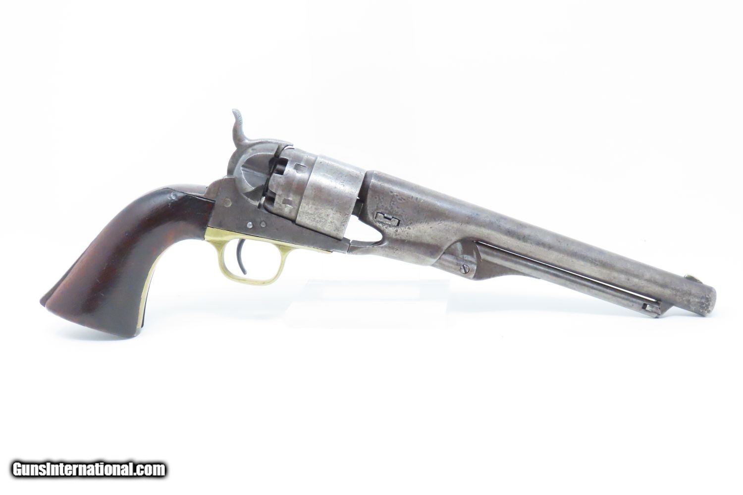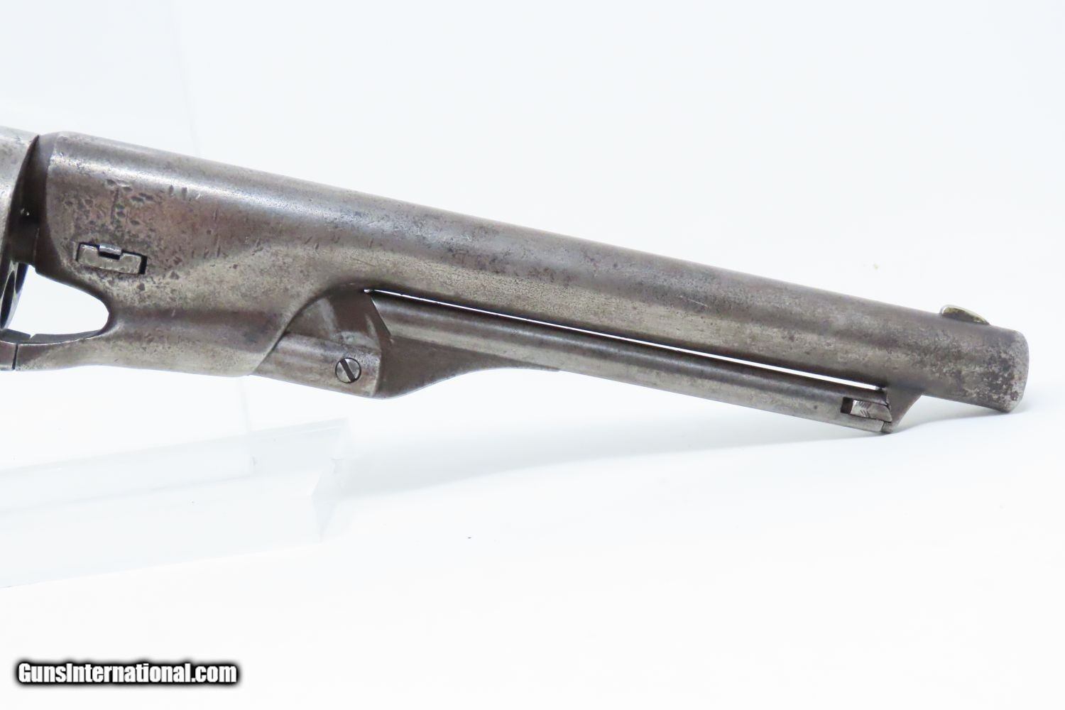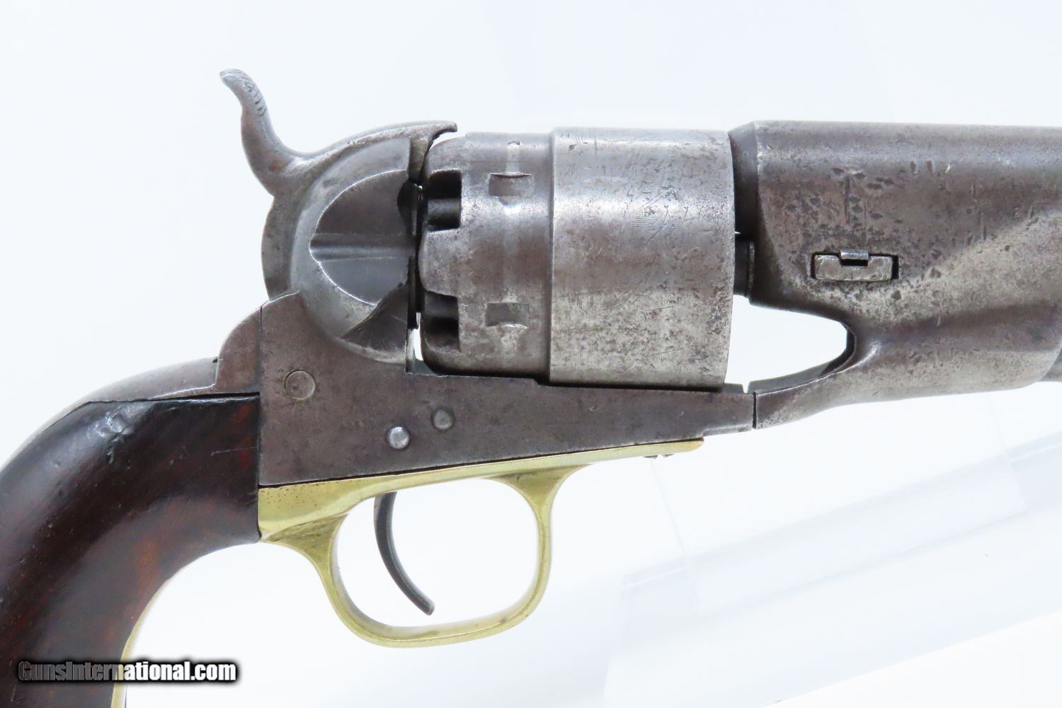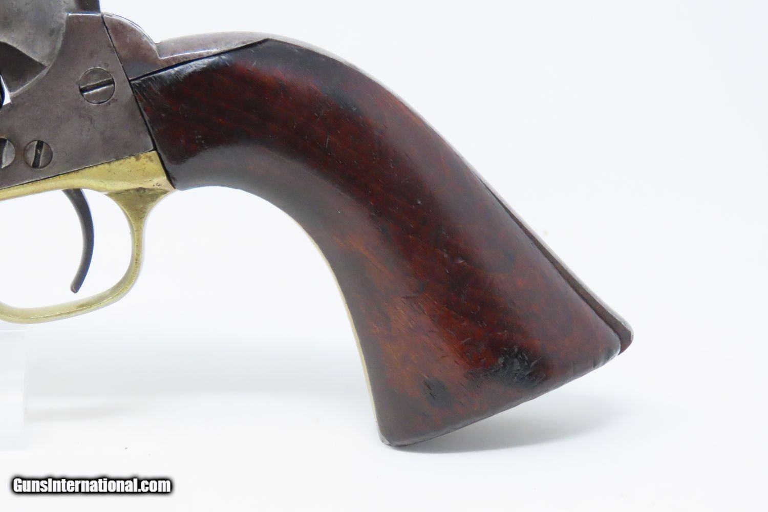 Description: Mid-CIVIL WAR COLT U.S. Model 1860 ARMY .44 Caliber Percussion REVOLVER Iconic Revolver Used Beyond the Civil War into the WILD WEST! Here we present an antique Colt US Model 1860 Army Percussion Revolver, made in 1863 in Hartford, Connecticut. The 1860 Army was the single most used pistol of the American Civil War. Over 200,000 were made from 1860 to 1873, and 156,000 of those were made by the end of the war in 1865. These were excellent sidearms for officers, cavalry, infantry, and artillery troops. The 1860 Army was Samuel Colt’s finest achievement to that point, having finally developed a large caliber revolver that weighed about 2 lbs. 10 oz. to the famous Dragoon’s 4 lbs. 4 oz., and was adopted en masse by the U.S. government with huge contracts. The revolver was well balanced in hand and had a long enough barrel to be effective when utilized as a carbine with the attachable shoulder stock. This revolver represented unprecedented firepower from a handgun in the field at the time and was especially suited to Cavalry. The Confederacy, lacking in manufacturing capabilities though they were, managed to produce limited numbers of copies, and battlefield pickups of the 1860 Army were highly coveted. The 1860 Army went on to serve the U.S. military even after the Civil War and into the Indian Wars, until production of Colt’s 1873 Single Action Army created new waves in the revolver market, and again achieved great success in the military and commercial markets. The action is strong. The cylinder indexes properly and the scene it still visible. The grip is solid but a bit shy to the frame. The bore is dark with nice rifling. The muzzle is slightly deformed: the right side shows plenty of holster wear, while the bottom looks like it is bent down ever so slightly. A good representative of the Civil War’s most issued handgun! Own the original! This is a legitimate antique and not a reproduction. Barrel is 8 inches. Caliber: .44 Percussion Overall condition as seen in photos. Very Fast. Very Safe. FREE SHIPPING WORLDWIDE. Delivered directly to your door by express mail! Guaranteed AUTHENTIC & Includes CERTIFICATE OF AUTHENTICITY. ancestryguns $2485 #201319 SOLD Antique: Yes |