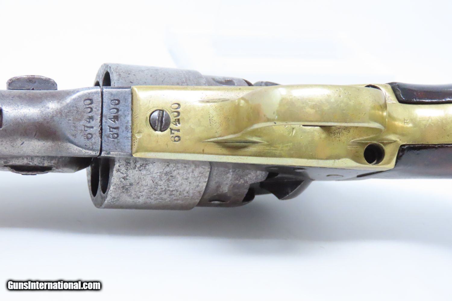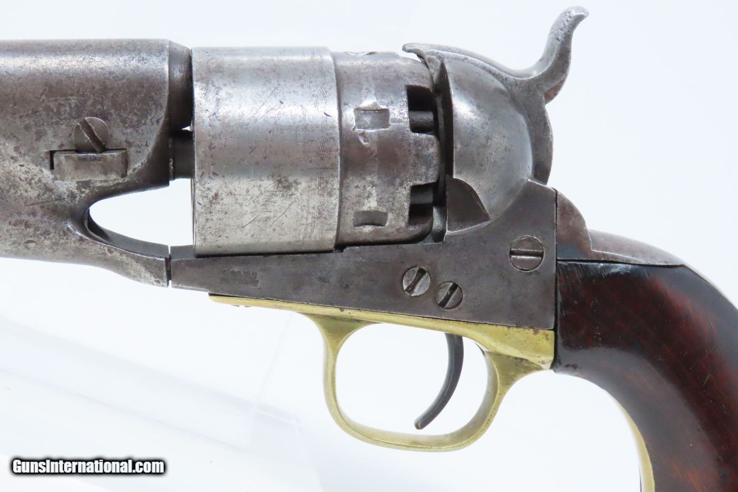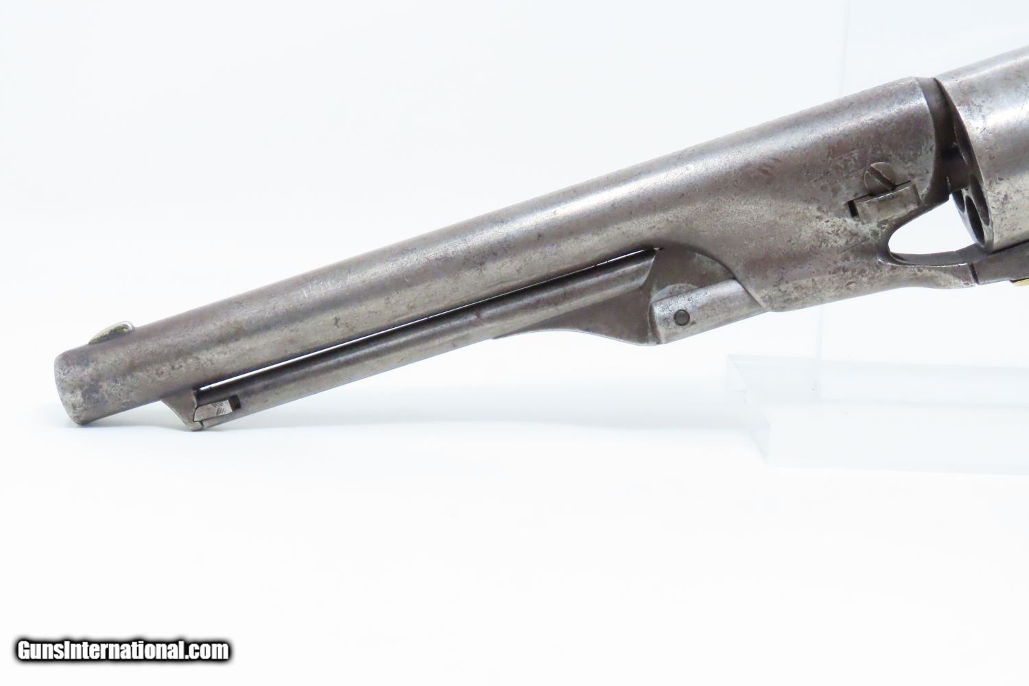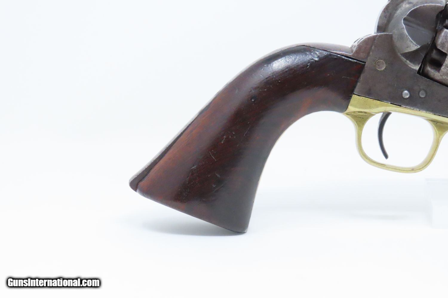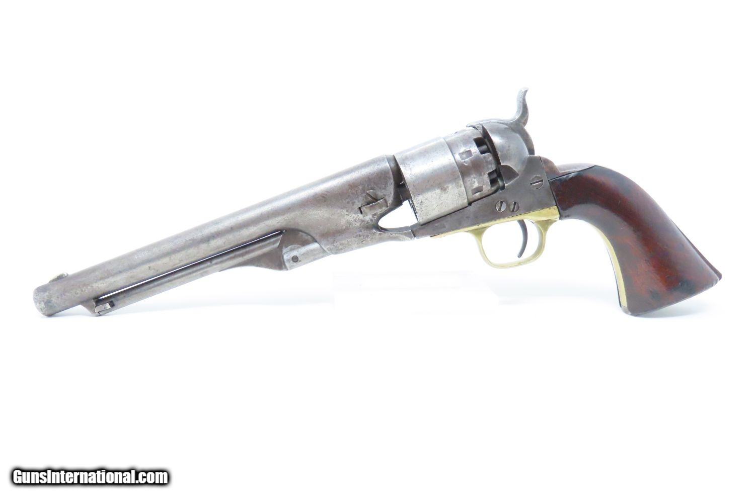 Description: Mid-CIVIL WAR COLT U.S. Model 1860 ARMY .44 Caliber Percussion REVOLVER Iconic Revolver Used Beyond the Civil War into the WILD WEST! Here we present an antique Colt US Model 1860 Army Percussion Revolver, made in 1863 in Hartford, Connecticut. The 1860 Army was the single most used pistol of the American Civil War. Over 200,000 were made from 1860 to 1873, and 156,000 of those were made by the end of the war in 1865. These were excellent sidearms for officers, cavalry, infantry, and artillery troops. The 1860 Army was Samuel Colt’s finest achievement to that point, having finally developed a large caliber revolver that weighed about 2 lbs. 10 oz. to the famous Dragoon’s 4 lbs. 4 oz., and was adopted en masse by the U.S. government with huge contracts. The revolver was well balanced in hand and had a long enough barrel to be effective when utilized as a carbine with the attachable shoulder stock. This revolver represented unprecedented firepower from a handgun in the field at the time and was especially suited to Cavalry. The Confederacy, lacking in manufacturing capabilities though they were, managed to produce limited numbers of copies, and battlefield pickups of the 1860 Army were highly coveted. The 1860 Army went on to serve the U.S. military even after the Civil War and into the Indian Wars, until production of Colt’s 1873 Single Action Army created new waves in the revolver market, and again achieved great success in the military and commercial markets. The action is strong. The cylinder indexes properly and the scene it still visible. The grip is solid but a bit shy to the frame. The bore is dark with nice rifling. The muzzle is slightly deformed: the right side shows plenty of holster wear, while the bottom looks like it is bent down ever so slightly. A good representative of the Civil War’s most issued handgun! Own the original! This is a legitimate antique and not a reproduction. Barrel is 8 inches. Caliber: .44 Percussion Overall condition as seen in photos. Very Fast. Very Safe. FREE SHIPPING WORLDWIDE. Delivered directly to your door by express mail! Guaranteed AUTHENTIC & Includes CERTIFICATE OF AUTHENTICITY. ancestryguns $2485 #201319 SOLD Antique: Yes |