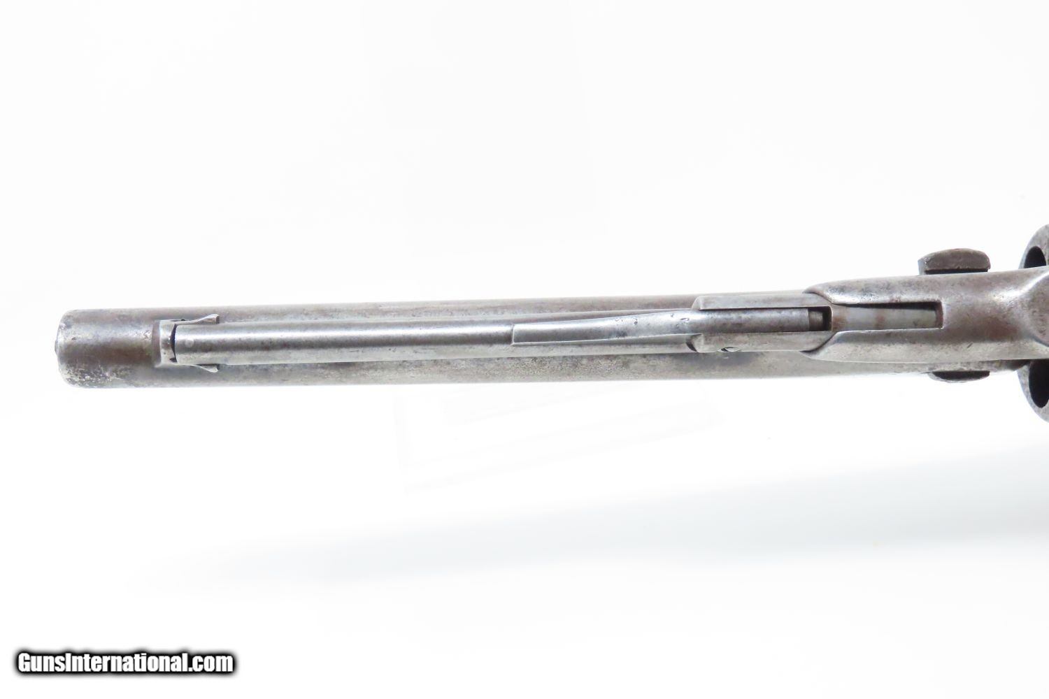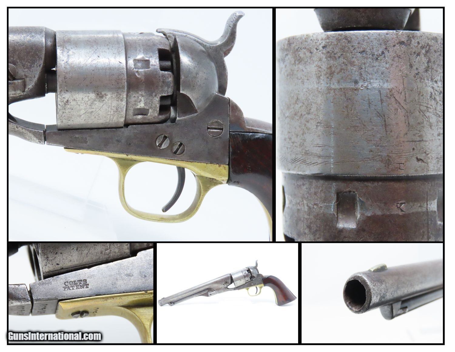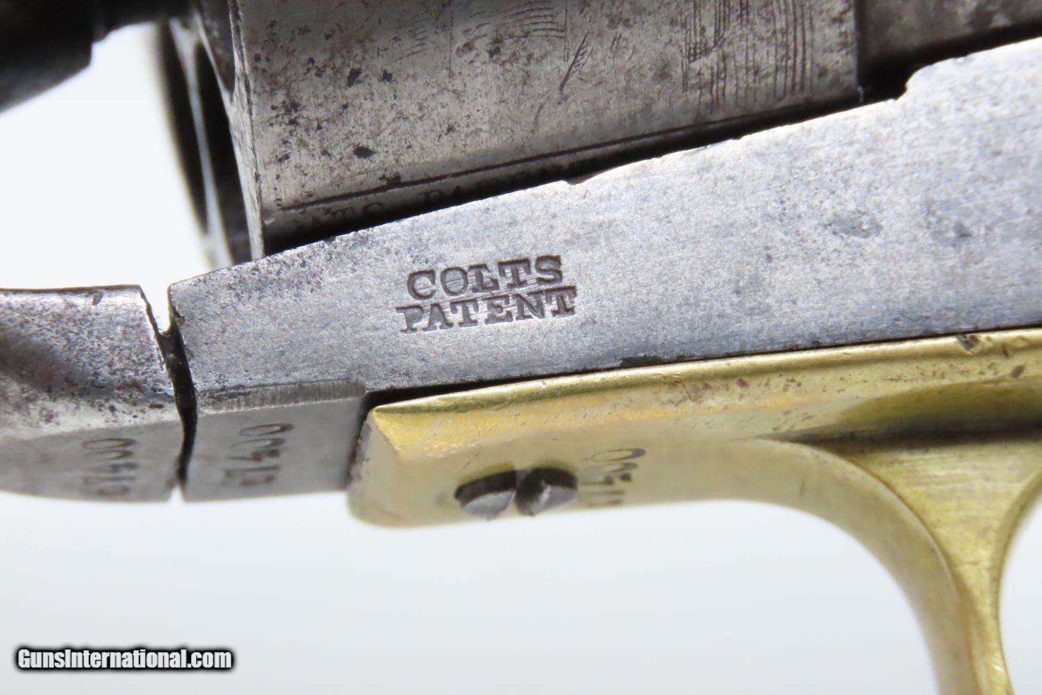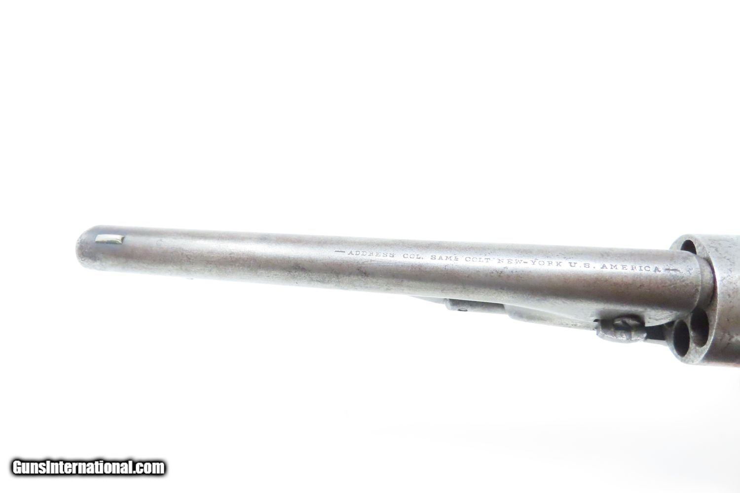 Description: Mid-CIVIL WAR COLT U.S. Model 1860 ARMY .44 Caliber Percussion REVOLVER Iconic Revolver Used Beyond the Civil War into the WILD WEST! Here we present an antique Colt US Model 1860 Army Percussion Revolver, made in 1863 in Hartford, Connecticut. The 1860 Army was the single most used pistol of the American Civil War. Over 200,000 were made from 1860 to 1873, and 156,000 of those were made by the end of the war in 1865. These were excellent sidearms for officers, cavalry, infantry, and artillery troops. The 1860 Army was Samuel Colt’s finest achievement to that point, having finally developed a large caliber revolver that weighed about 2 lbs. 10 oz. to the famous Dragoon’s 4 lbs. 4 oz., and was adopted en masse by the U.S. government with huge contracts. The revolver was well balanced in hand and had a long enough barrel to be effective when utilized as a carbine with the attachable shoulder stock. This revolver represented unprecedented firepower from a handgun in the field at the time and was especially suited to Cavalry. The Confederacy, lacking in manufacturing capabilities though they were, managed to produce limited numbers of copies, and battlefield pickups of the 1860 Army were highly coveted. The 1860 Army went on to serve the U.S. military even after the Civil War and into the Indian Wars, until production of Colt’s 1873 Single Action Army created new waves in the revolver market, and again achieved great success in the military and commercial markets. The action is strong. The cylinder indexes properly and the scene it still visible. The grip is solid but a bit shy to the frame. The bore is dark with nice rifling. The muzzle is slightly deformed: the right side shows plenty of holster wear, while the bottom looks like it is bent down ever so slightly. A good representative of the Civil War’s most issued handgun! Own the original! This is a legitimate antique and not a reproduction. Barrel is 8 inches. Caliber: .44 Percussion Overall condition as seen in photos. Very Fast. Very Safe. FREE SHIPPING WORLDWIDE. Delivered directly to your door by express mail! Guaranteed AUTHENTIC & Includes CERTIFICATE OF AUTHENTICITY. ancestryguns $2485 #201319 SOLD Antique: Yes |