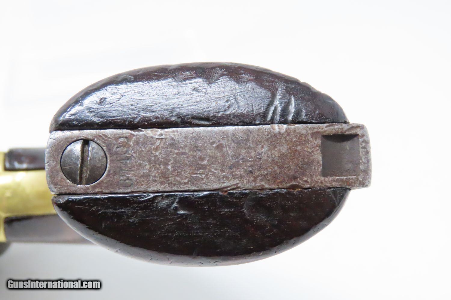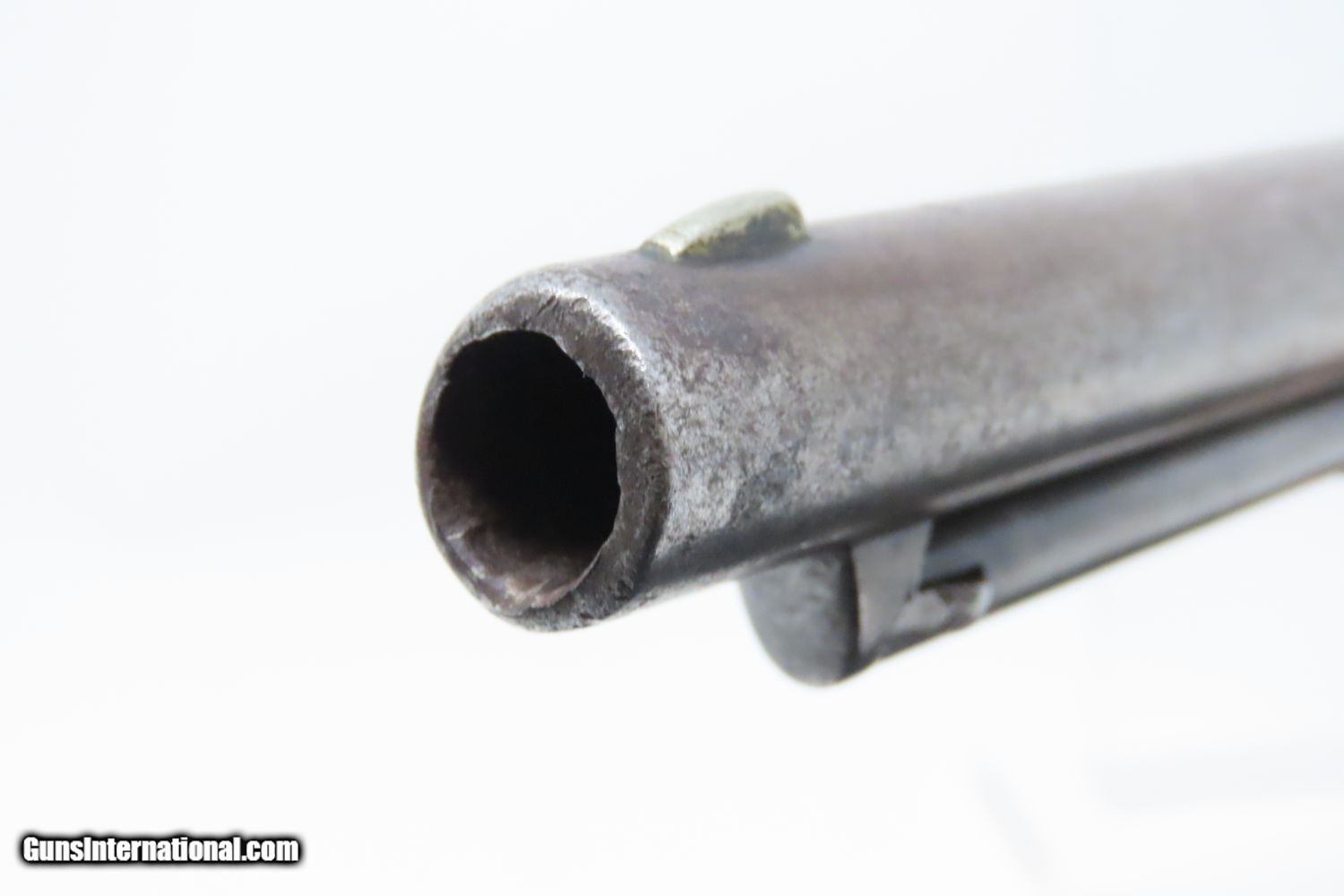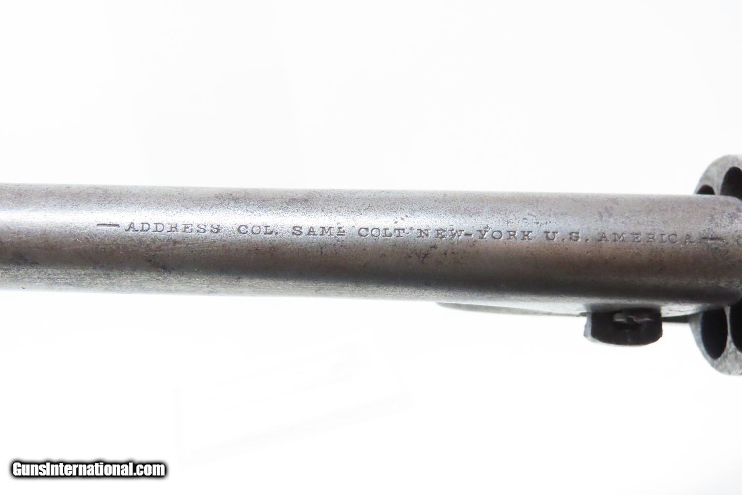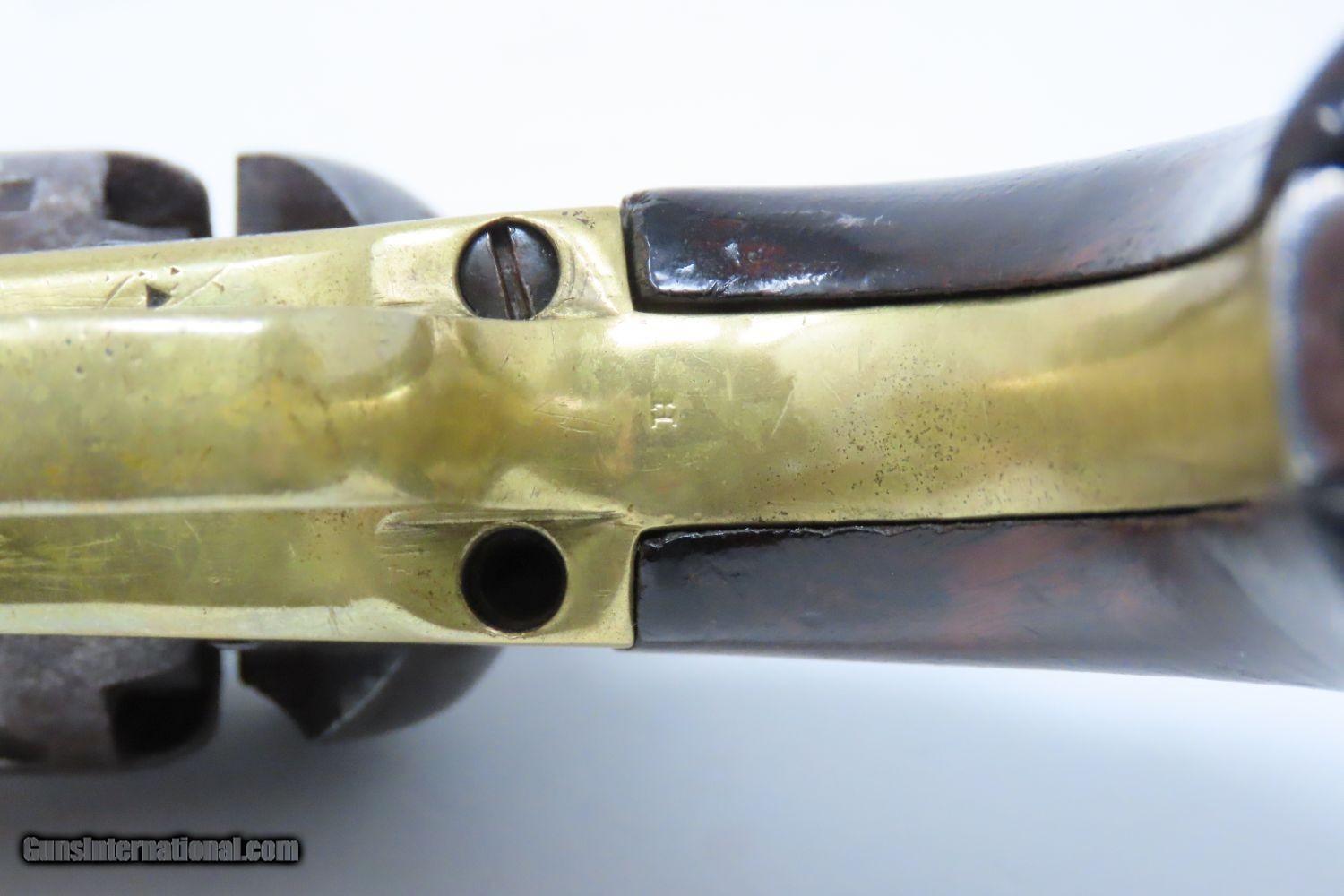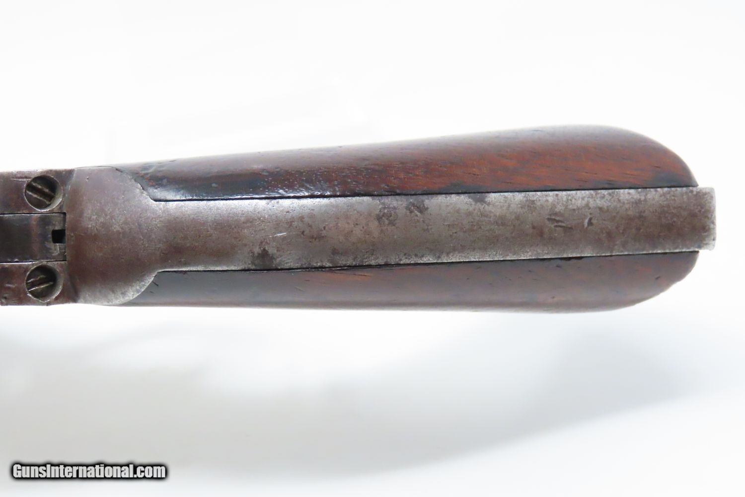 Description: Mid-CIVIL WAR COLT U.S. Model 1860 ARMY .44 Caliber Percussion REVOLVER Iconic Revolver Used Beyond the Civil War into the WILD WEST! Here we present an antique Colt US Model 1860 Army Percussion Revolver, made in 1863 in Hartford, Connecticut. The 1860 Army was the single most used pistol of the American Civil War. Over 200,000 were made from 1860 to 1873, and 156,000 of those were made by the end of the war in 1865. These were excellent sidearms for officers, cavalry, infantry, and artillery troops. The 1860 Army was Samuel Colt’s finest achievement to that point, having finally developed a large caliber revolver that weighed about 2 lbs. 10 oz. to the famous Dragoon’s 4 lbs. 4 oz., and was adopted en masse by the U.S. government with huge contracts. The revolver was well balanced in hand and had a long enough barrel to be effective when utilized as a carbine with the attachable shoulder stock. This revolver represented unprecedented firepower from a handgun in the field at the time and was especially suited to Cavalry. The Confederacy, lacking in manufacturing capabilities though they were, managed to produce limited numbers of copies, and battlefield pickups of the 1860 Army were highly coveted. The 1860 Army went on to serve the U.S. military even after the Civil War and into the Indian Wars, until production of Colt’s 1873 Single Action Army created new waves in the revolver market, and again achieved great success in the military and commercial markets. The action is strong. The cylinder indexes properly and the scene it still visible. The grip is solid but a bit shy to the frame. The bore is dark with nice rifling. The muzzle is slightly deformed: the right side shows plenty of holster wear, while the bottom looks like it is bent down ever so slightly. A good representative of the Civil War’s most issued handgun! Own the original! This is a legitimate antique and not a reproduction. Barrel is 8 inches. Caliber: .44 Percussion Overall condition as seen in photos. Very Fast. Very Safe. FREE SHIPPING WORLDWIDE. Delivered directly to your door by express mail! Guaranteed AUTHENTIC & Includes CERTIFICATE OF AUTHENTICITY. ancestryguns $2485 #201319 SOLD Antique: Yes |