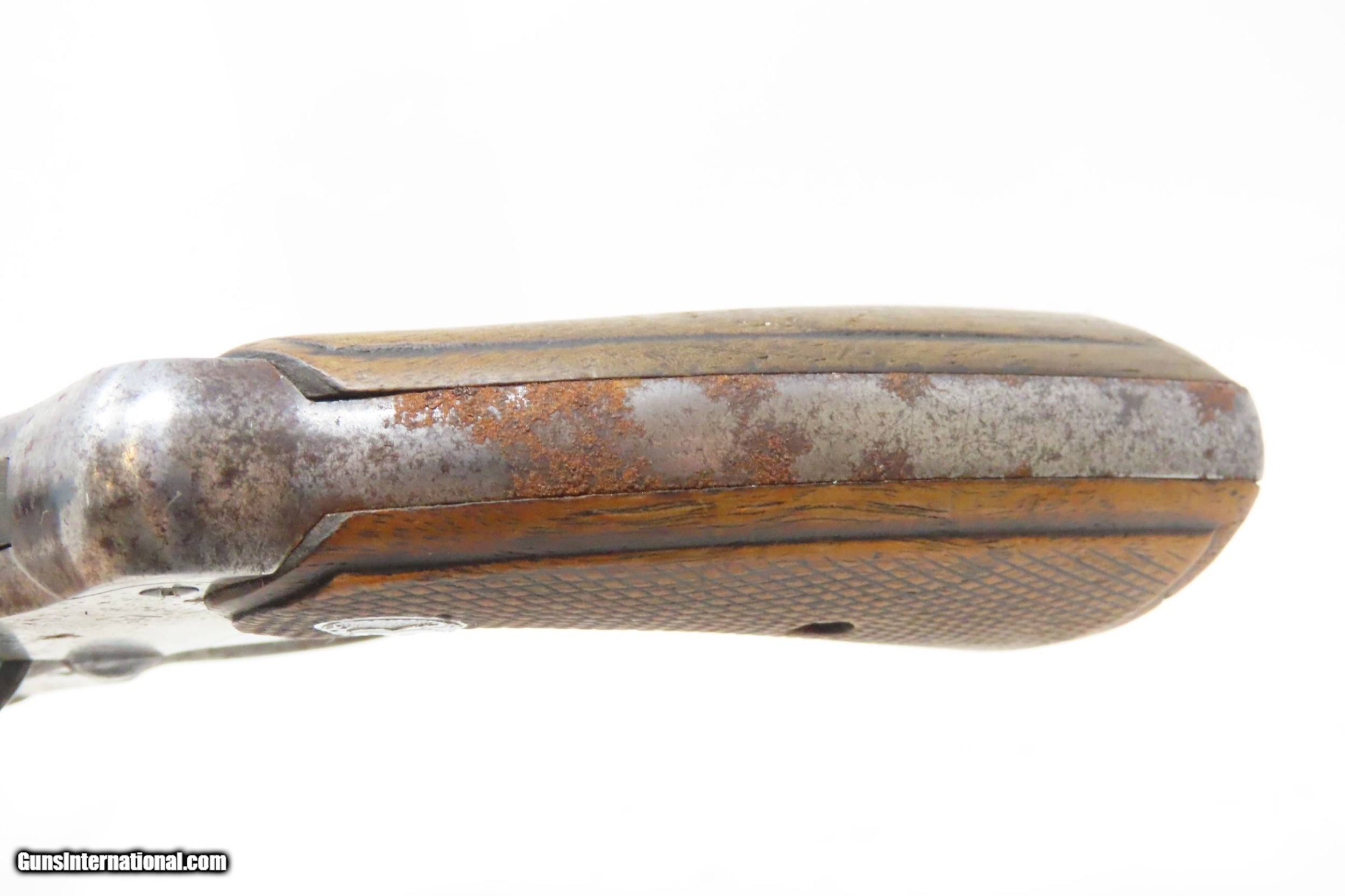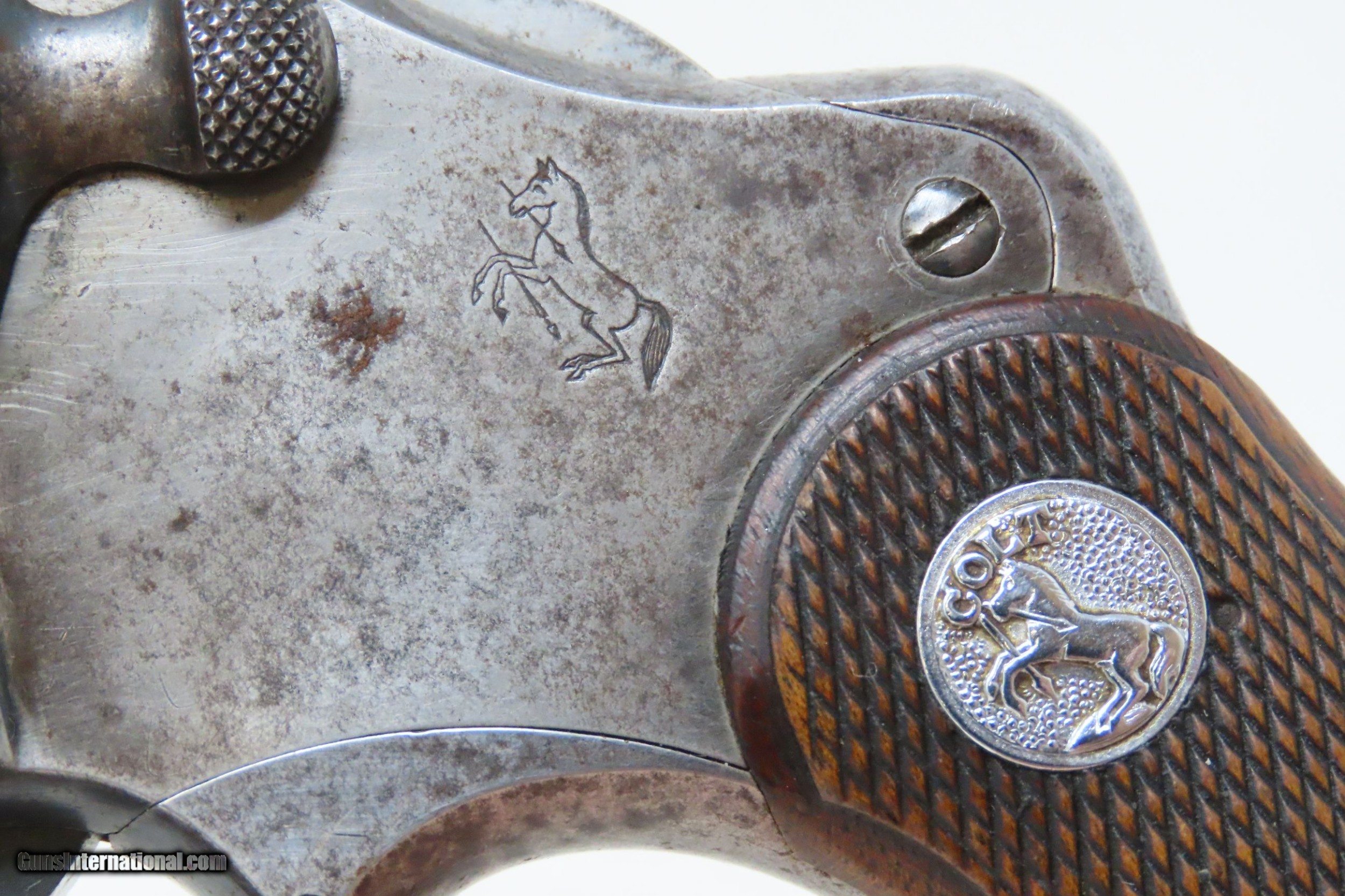 Description: Nice 1914 COLT ARMY SPECIAL .32-20 WCF Caliber Double Action C&R REVOLVER HANDY 6-shot Revolver Here we present a C&R Colt Army Special Double Action Revolver, made in 1914 by the Colt Manufacturing Company with a production run from 1908 through 1927 in Hartford, Connecticut. The Colt Army Special was a pistol designed by Colt to replace the various over-complicated models of Colt New Army and New Navy revolvers. It was in production from 1908 to 1927 in hopes of securing a military contract. The United States Army instead adopted the Colt M1909 New Service revolver in .45 Long Colt and later the Colt M1911 Self-Loading pistol in the .45 ACP cartridge after extensive trials. As the 20th Century began, the older .32 caliber revolvers which had been standard-issue for most of America’s police departments began to be phased out in favor of the larger-bore .38 and .41 calibers. The overall condition is good. Strong action. The bore is in good shape with visible rifling. Both grips are in good shape with an expected amount of handling. The Colt medallions are seated firmly. Clear, legible markings. This firearm is classified as a Curio & Relic. Barrel is 5 inches. Caliber: .32-20 Winchester Center Fire Overall condition as seen in photos. Very Fast. Very Safe. FREE SHIPPING. Will need to be sent to your local FFL or C&R licensee. This firearm is classified as a Curio & Relic. Guaranteed AUTHENTIC & Includes CERTIFICATE OF AUTHENTICITY. ancestryguns $1250 #226341 SOLD Antique: Yes |