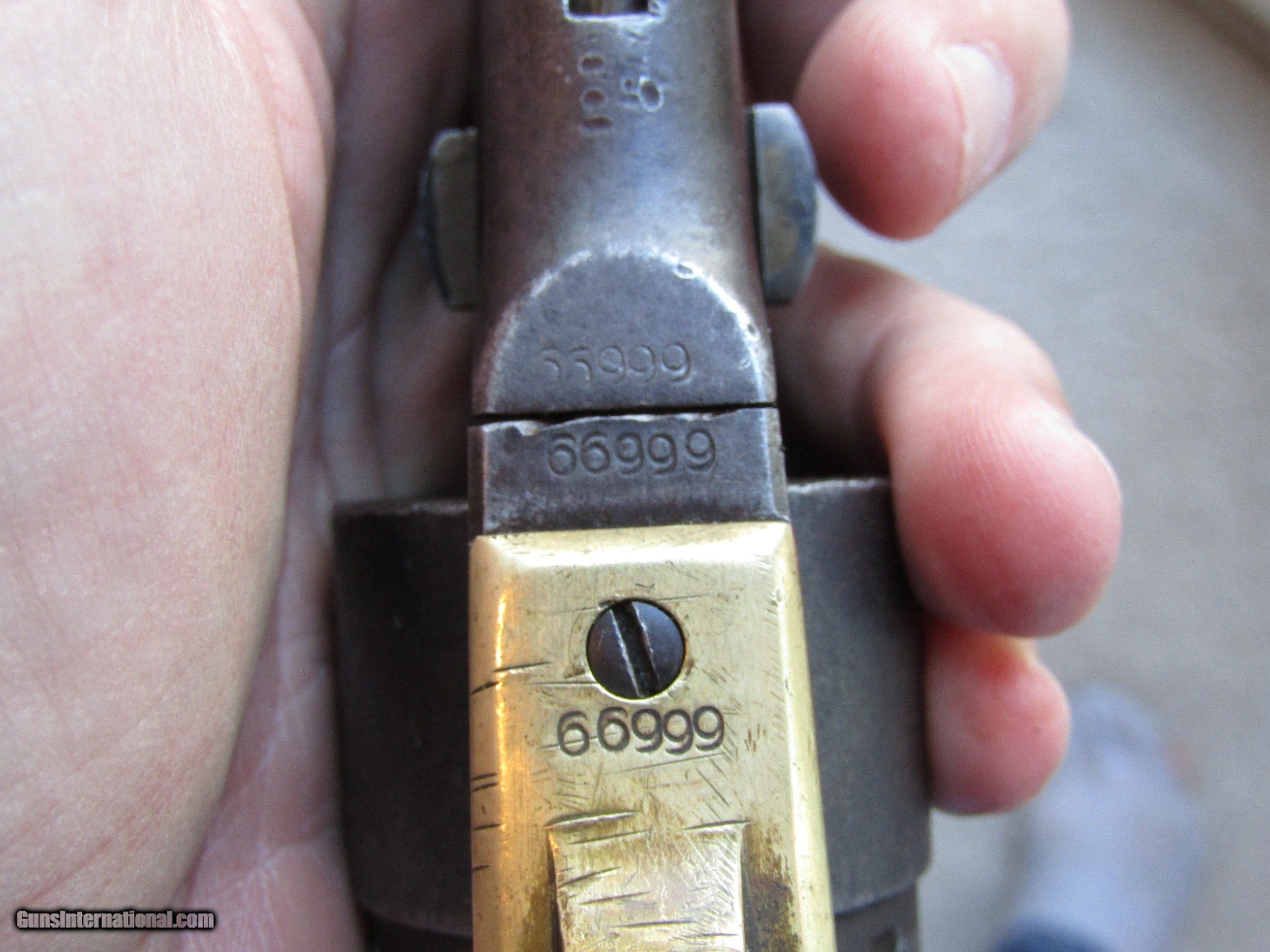 ORIGINAL COLT MODEL 1860 , ALL MATCHING NUMBERS 66999,TRIGGER ,FRAME ,CYLINDER,NAVY SCEAN ON CYLINDER,COLT NEW YORK