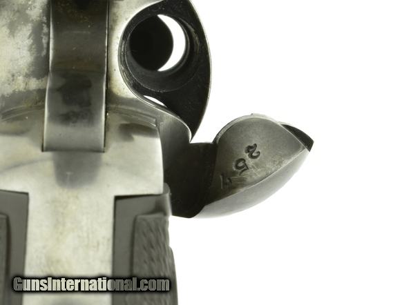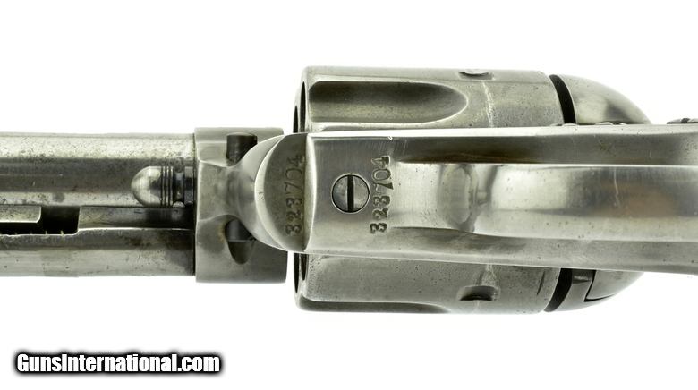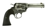 Description: Colt Bisley .38 WCF caliber revolver. Colt Single Action Army Bisley model made in 1912. .38-40 caliber with a 4 ¾” barrel. Metal is a gray patina. Gun is sharp and has good clear markings. Grips are excellent. Bore has strong rifling with some pitting.
