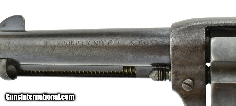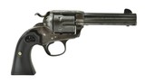 Colt Bisley .45 Colt caliber revolver. Manufactured in 1912. Bore is good plus to very good with strong rifling. Action works, indexes and locks up perfectly. Gun has clear markings. Numbers match except grips which are Bisley grips that have been fitted to this revolver and fit well. Overall this is a nice Bisley with approximately 30-35% blue.