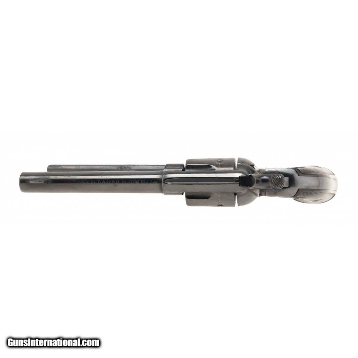 Manufactured in 1896. Metal has an old refinish with some light pitting. Barrel is 5.5"". Bore has strong rifling with pitting. Action works properly. Grips are very good, no chips or cracks. Serial numbers are matching. Good overall condition.