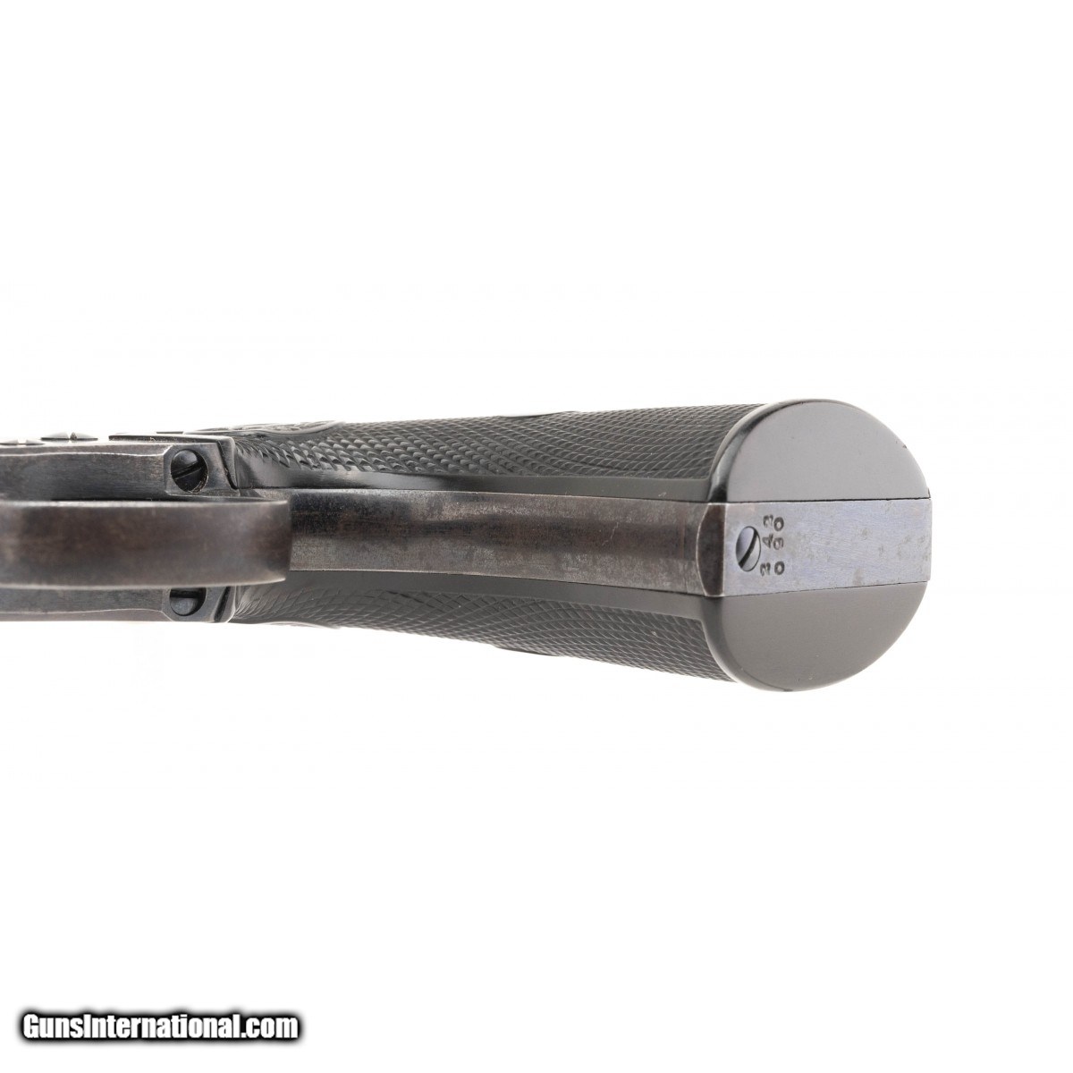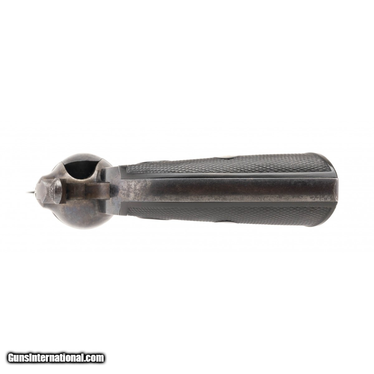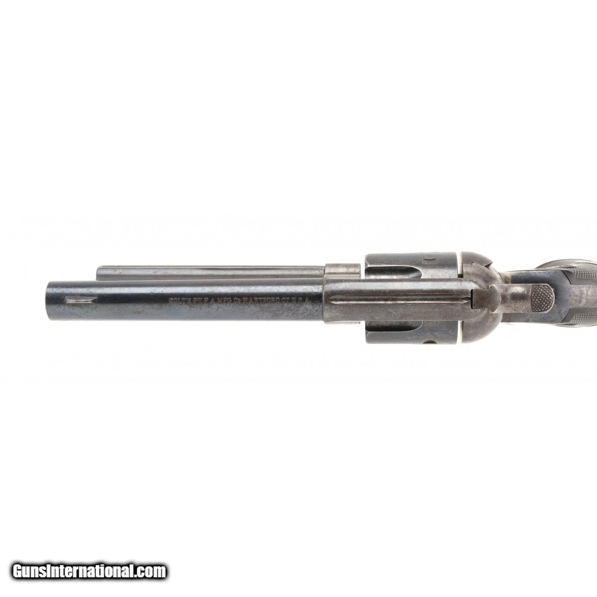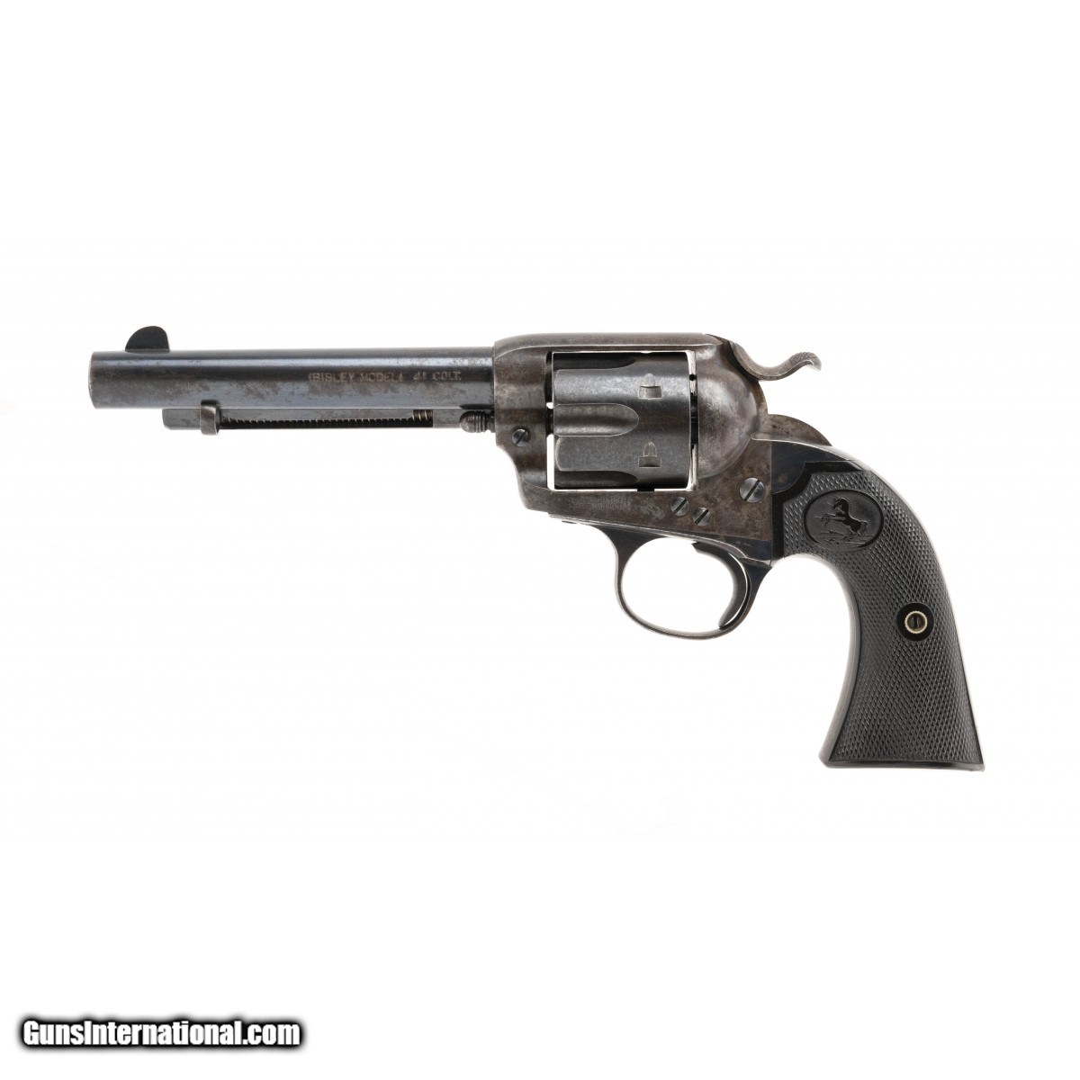 Description: " Manufactured in 1903. Barrel is 5.5"". Bore has strong rifling and is bright and shiny. Action works perfectly. Metal has a thinning blue turning to patina on barrel. Cylinder has some light pitting and is the same patina color as the frame. Grips are very good, no chips or cracks. Good overall condition. A reasonably priced Bisley model. SOLD Curio/Relic: Yes |