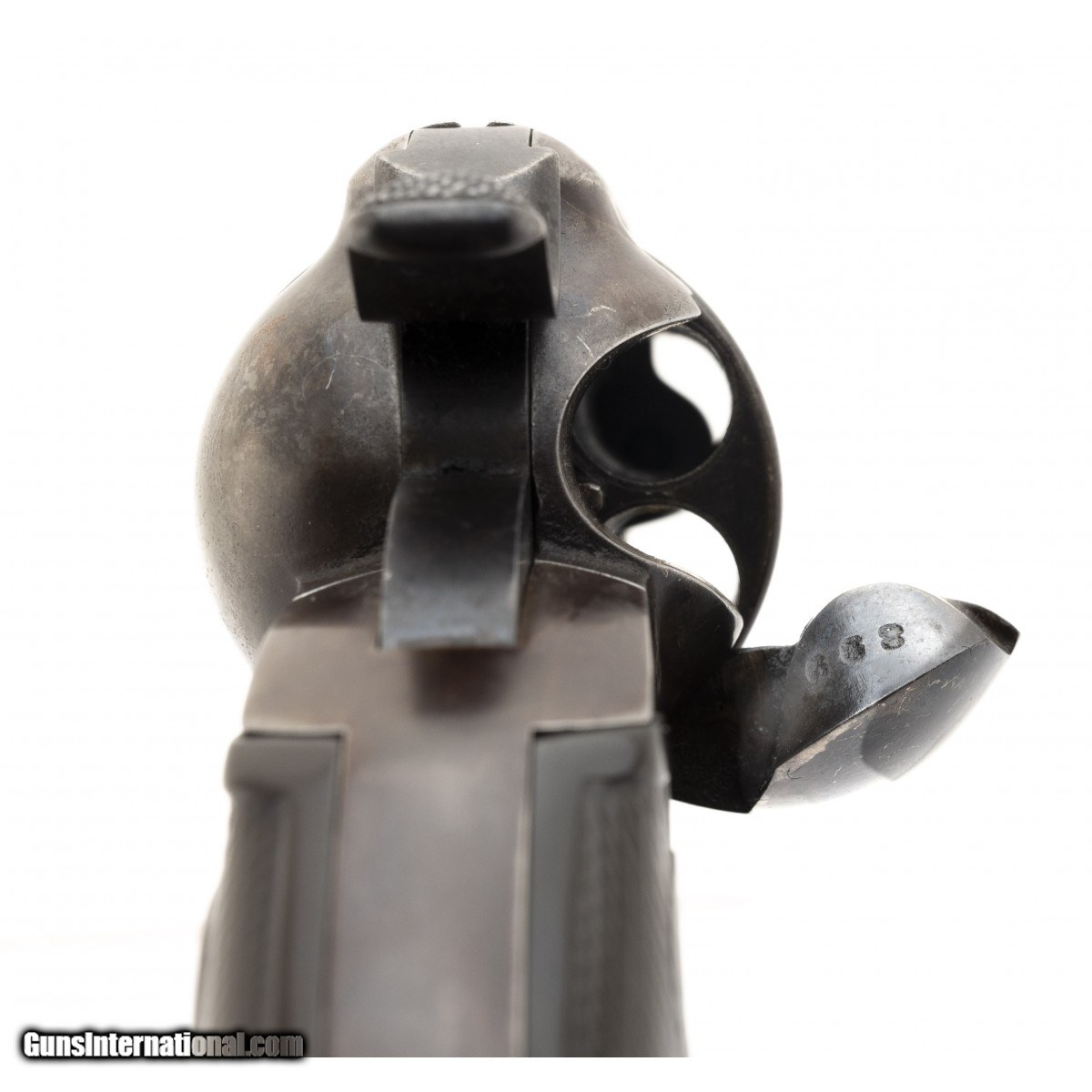 Description: "Serial number 166090. Made in 1897. 44 S&W Russian caliber with a 7 ½" barrel. Nice sharp gun with original blue finish that is toning to a even brown patina. Grips are very good and show normal handling wear. This gun comes with a factory letter. The letter confirms the caliber (but omits the Russian) and the barrel length. The letter states this is a flattop, but this gun is clearly a standard frame. Obviously the person recording this gun was distracted. Very interesting gun in an extremely rare caliber! SOLD Antique: Yes |