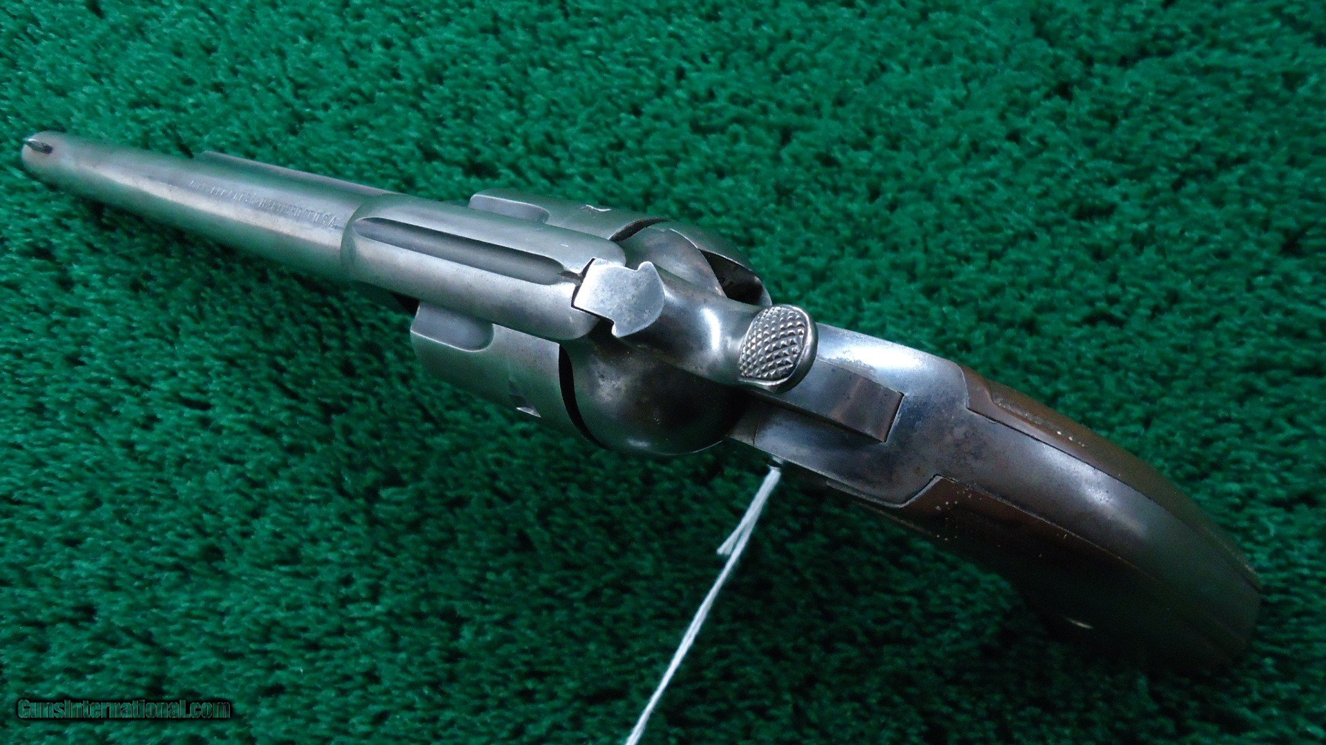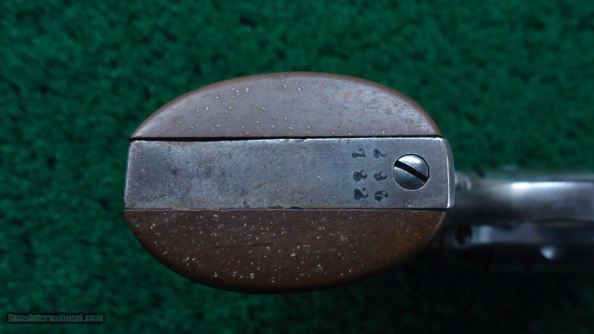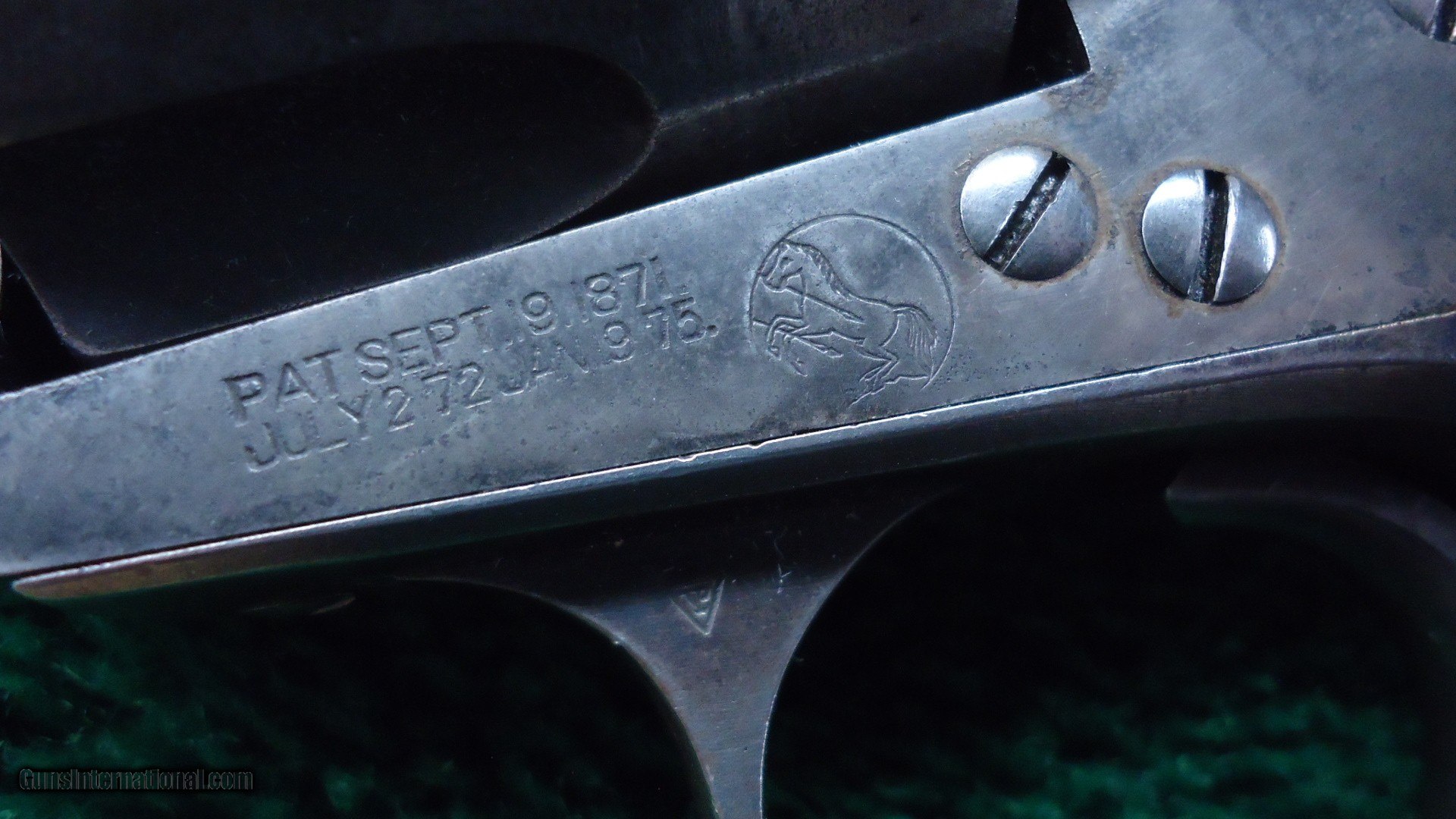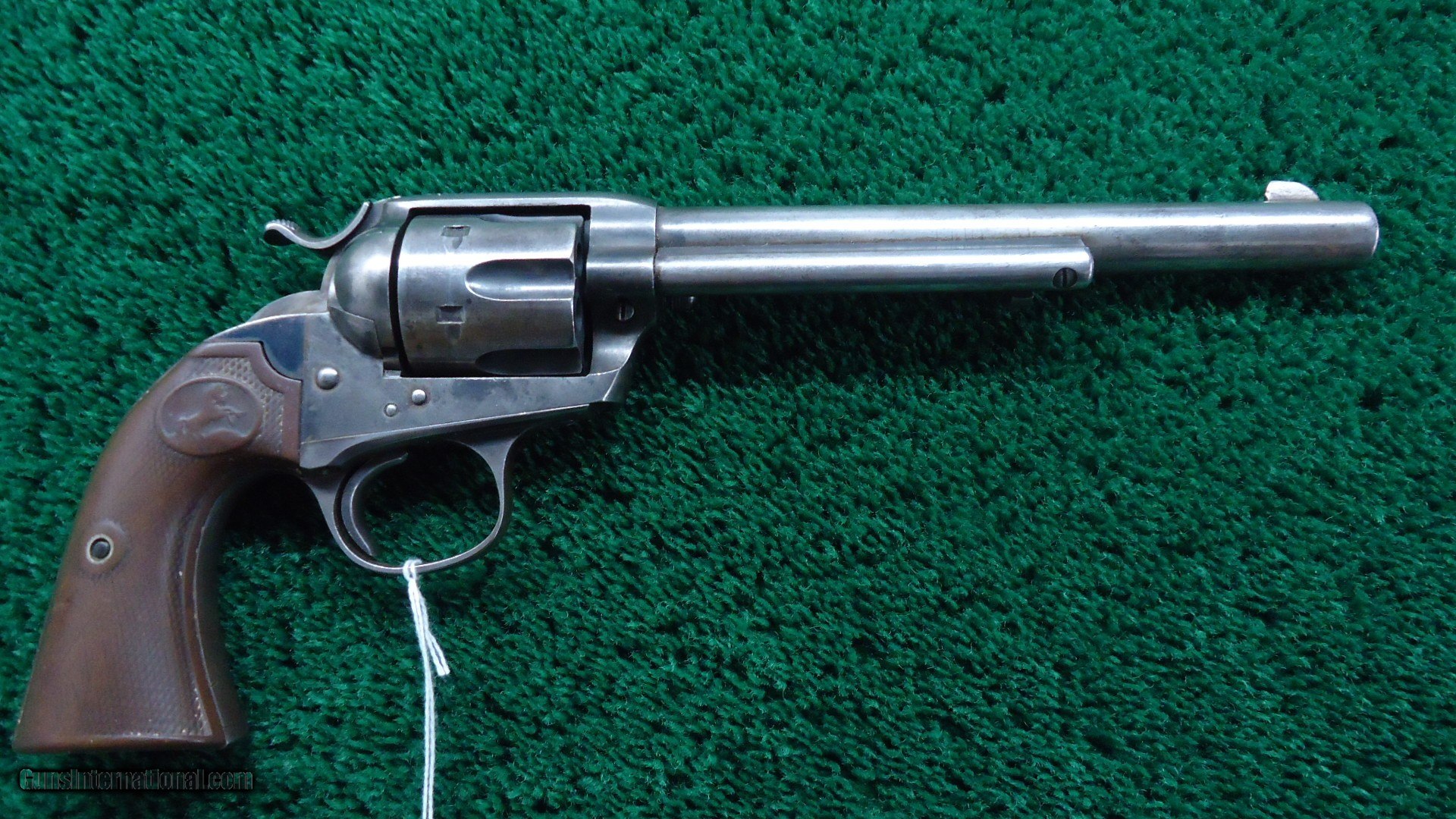 Description: 7-1/2 inch round barrel chambered in 32 WCF caliber with a very good bright shiny bore with strong rifling. Barrel has turned a gray patina with slight traces of original blue in the protected areas. Traces of blue on the cylinder flutes remain. The left side of the barrel is stamped "(BISLEY MODEL) 32 WCF". Case colored frame and hammer are mostly a grey color with traces of color. Left side of the frame shows the Rampant Colt logo. Matching numbers on the frame, trigger guard and rear grip strap. Hard rubber checkered grips have turned brown and show heavy smoothing and wear but fit good. Nice action. Nice old Bisley made in 1907. There were only 13,291 Colt Standard Frame Bisley Models were made in 32 WCF caliber. Leroy Merz Antique Firearms specializes in antique and vintage Winchesters and other fine American firearms. Since 1965 Mr. Merz has taken part in the world of firearms and has been a contributor to many well known reference books. We have hundreds of additional guns in every price range at our home online. Search for Merz Antiques in google. SOLD Handgun Caliber: .32-20 Winchester (.32 WCF, .32-20 Marlin, .32 Colt Lightning ) |