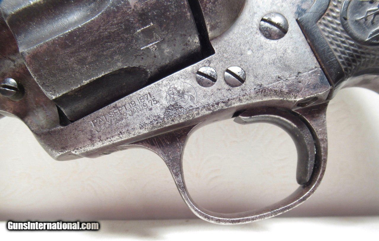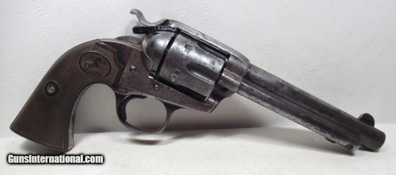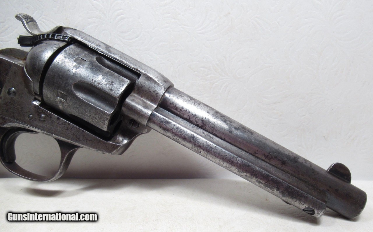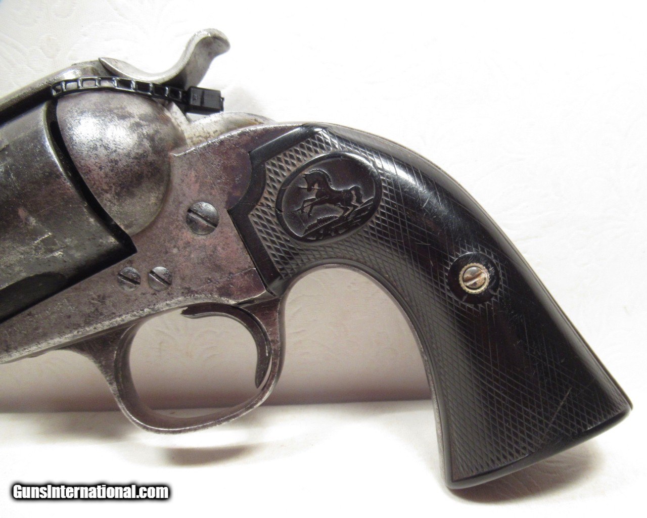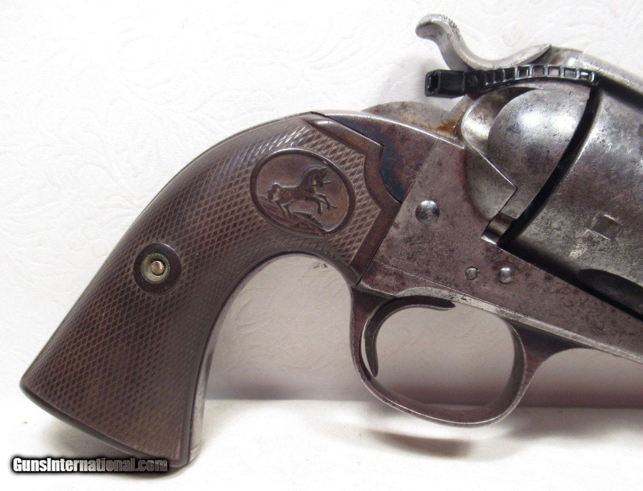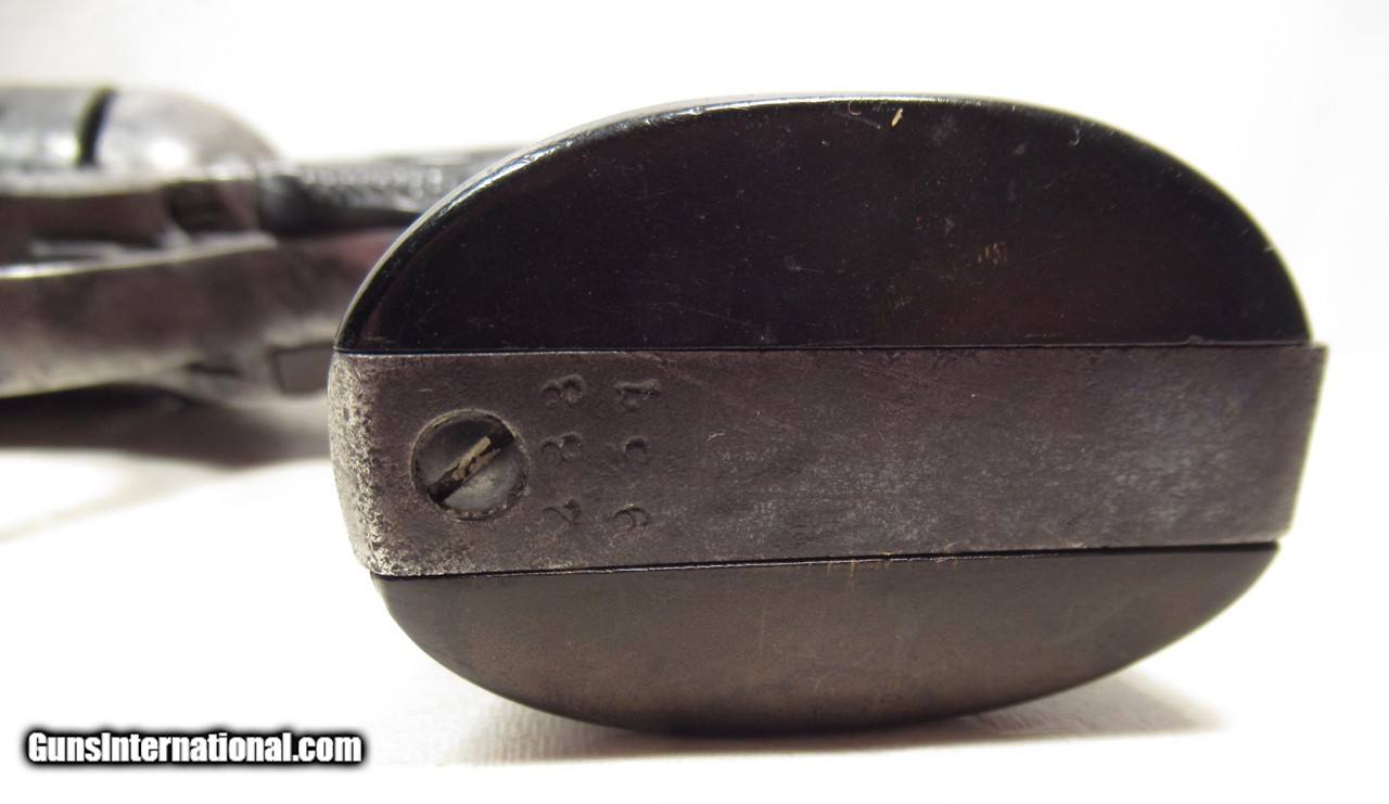 Description: Colt Bisley Model Single Action Army Revolver; Serial No. 283957; .38 W.C.F. (38/40) Caliber with 5 ½” Barrel; Made 1906; All Numbers Match; All Marking Sharp; Decent Amount of Original Metal Finish remains; Well Fitting Colt Hard Rubber Grips which are not original to Revolver; Perfect Tight Crisp Action and Lockup; Very Strong Bore with some flaws; Should be a Great 119 Year-Old Shooter; Perfect Screws and Full Front Sight; See All Photos for Condition; No Texts; Call (254)541-5765 or Email Only; PERSONAL PROPERTY of Harold Wieser; NOTICE: We Do Not Do Any Consignments - All Items Listed are Owned by Us - NO SALES to New Jersey or New York City - Antiques Only to Massachusetts and California; NOTE: All Modern Firearms Must Go to FFL Dealer who will Accept From Individual with Texas Driver License; Price: $1,375 Shipped; Payment Address: Harold Wieser - 1466 U.S. Hwy 77 - Rosebud, TX 76570; SEND PAYMENTS VIA USPS PRIORITY MAIL; BEWARE of SCAMS!!! - DO NOT SEND MONEY or CORRESPONDENTS ELECTRONICALLY UNLESS YOU HAVE SPOKEN to HAROLD WIESER FIRST! (254)541-5765 SOLD Manufacturer: Colt Model: Bisley Serial Number: 283957 |