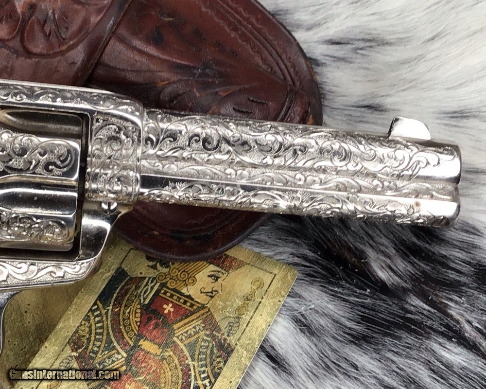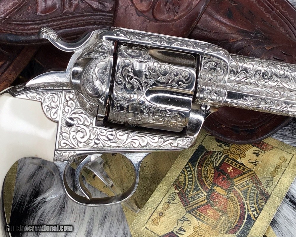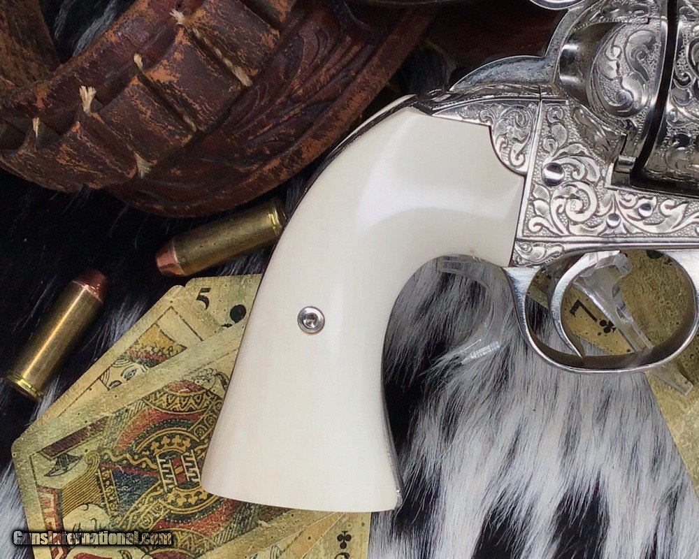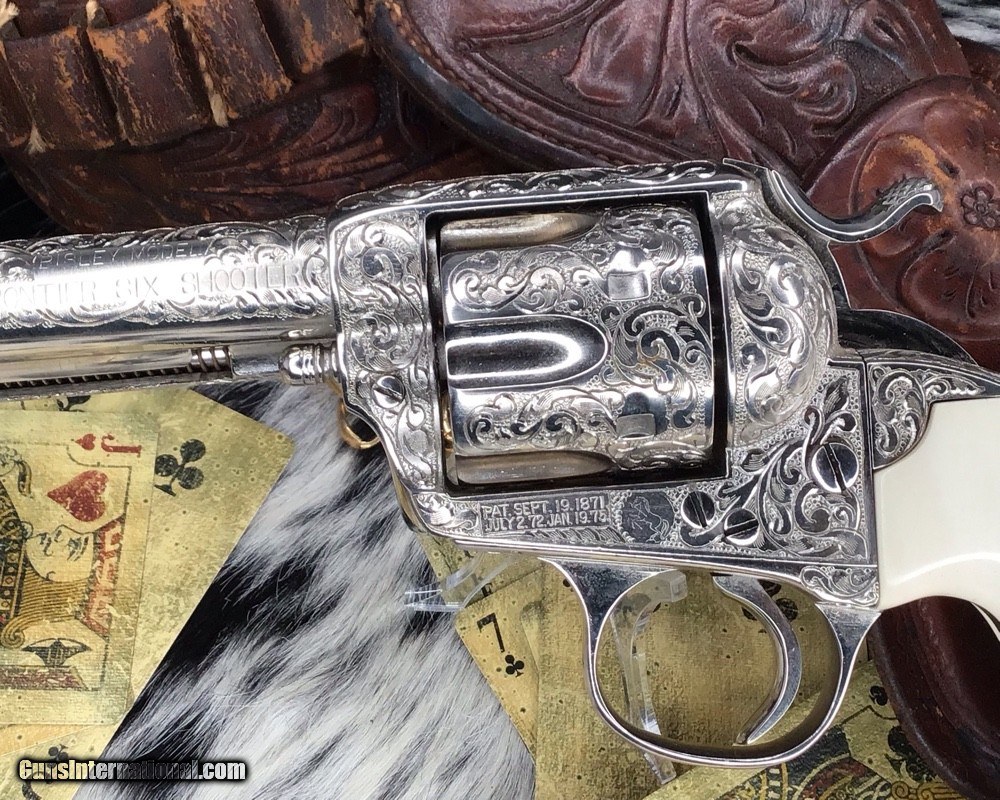 1900 Colt Bisley Frontier Six Shooter, Weldon Bledsoe Master Engraved and signed, Nickel, Ivory, factory letter.