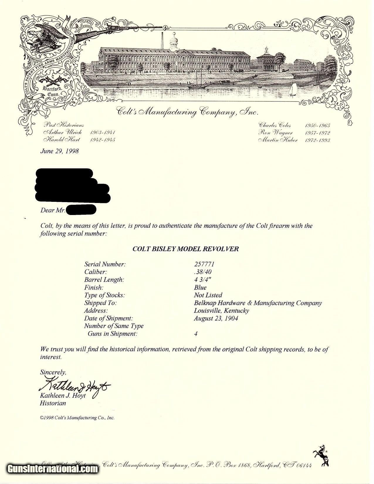 1904 LETTERED 1st Gen COLT BISLEY Single Action Army .38-40 WCF C&R Revolver KENTUCKY SHIPPED SAA in .38-40 WCF Made in 1904