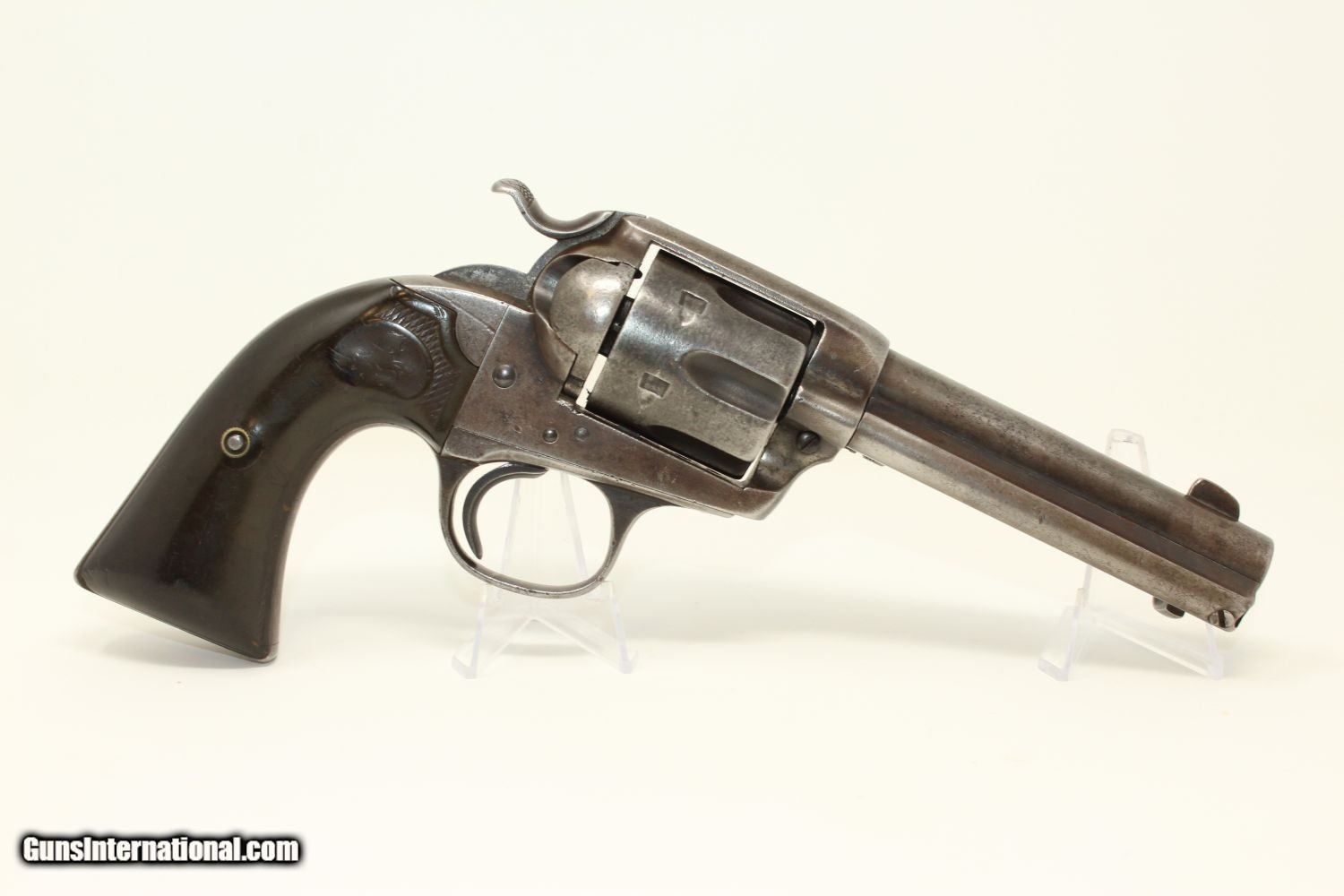 Description: 1906 COLT Bisley FRONTIER Six Shooter SAA REVOLVER 44-40 Single Action Army SAA in .44-40 Caliber Manufactured in 1906 C&R Here we present a Colt Bisley Model Frontier Six Shooter Single Action Army Revolver, manufactured in Hartford, Connecticut in 1906. This Bisley revolver is in the desirable .44-40 WCF chambered Frontier Six Shooter variant. Only 6, 803 Bisley revolvers were produced in this caliber compared to 13,291 in .32-20. The top of the barrel has the one-line address, and the left side has "(BISLEY MODEL)/ COLT FRONTIER SIX SHOOTER " in two lines. The standard two-line, three-date patent information is on the left side of the frame followed by the Rampant Colt emblem. The checkered hard rubber grips also have the Rampant Colt emblem. Though Colt enjoyed the largest contracts of any handgun maker during the American Civil War, it had to rely on its array of percussion fired revolvers, namely the 1860 Army until the Smith & Wesson owned Rollin White Patent expired in 1869. This enabled them to begin making revolvers with completely bored through cylinder chambers in order to utilize modern metallic cartridge ammunition in the most effective manner. In 1869, Colt’s began development of a suitable cartridge revolver in earnest, first coming out with a number of conversions for their percussion lines, until 1872 when they debuted what was to become the Colt Model 1873 Single Action Army in the 1872 U.S. Trials. Needless to say, it won, and became the Army’s revolver of choice. It also became the sidearm of choice for many others like cowboys, guards, lawmen, crooks, shopkeepers and all manner of civilians. The overall condition is Good. The action is mighty strong, just what you’d expect from Colt, even of this age. The bore is serviceable, clean with nice rifling. Look at the wear on those grips! This was an everyday sort of gun for the original user. A great example of the optimized version of the classic Colt Single Action Army! This firearm is classified as a Curio & Relic. Barrel is 4-3/4 inches. Caliber: .44-40 WCF Overall condition as seen in photos. Very Fast. Very Safe. FREE SHIPPING. Will need to be sent to your local FFL or C&R licensee. This firearm is classified as a Curio & Relic. Guaranteed AUTHENTIC & Includes CERTIFICATE OF AUTHENTICITY. ancestryguns $2950 #190643 SOLD Curio/Relic: Yes |