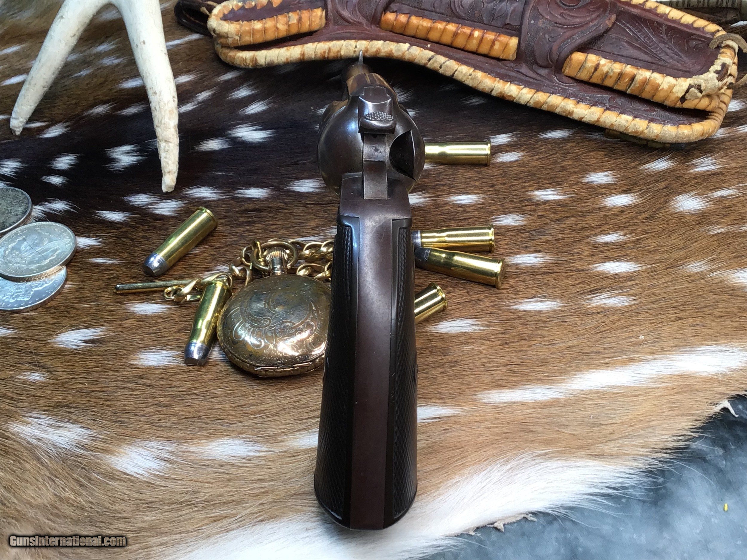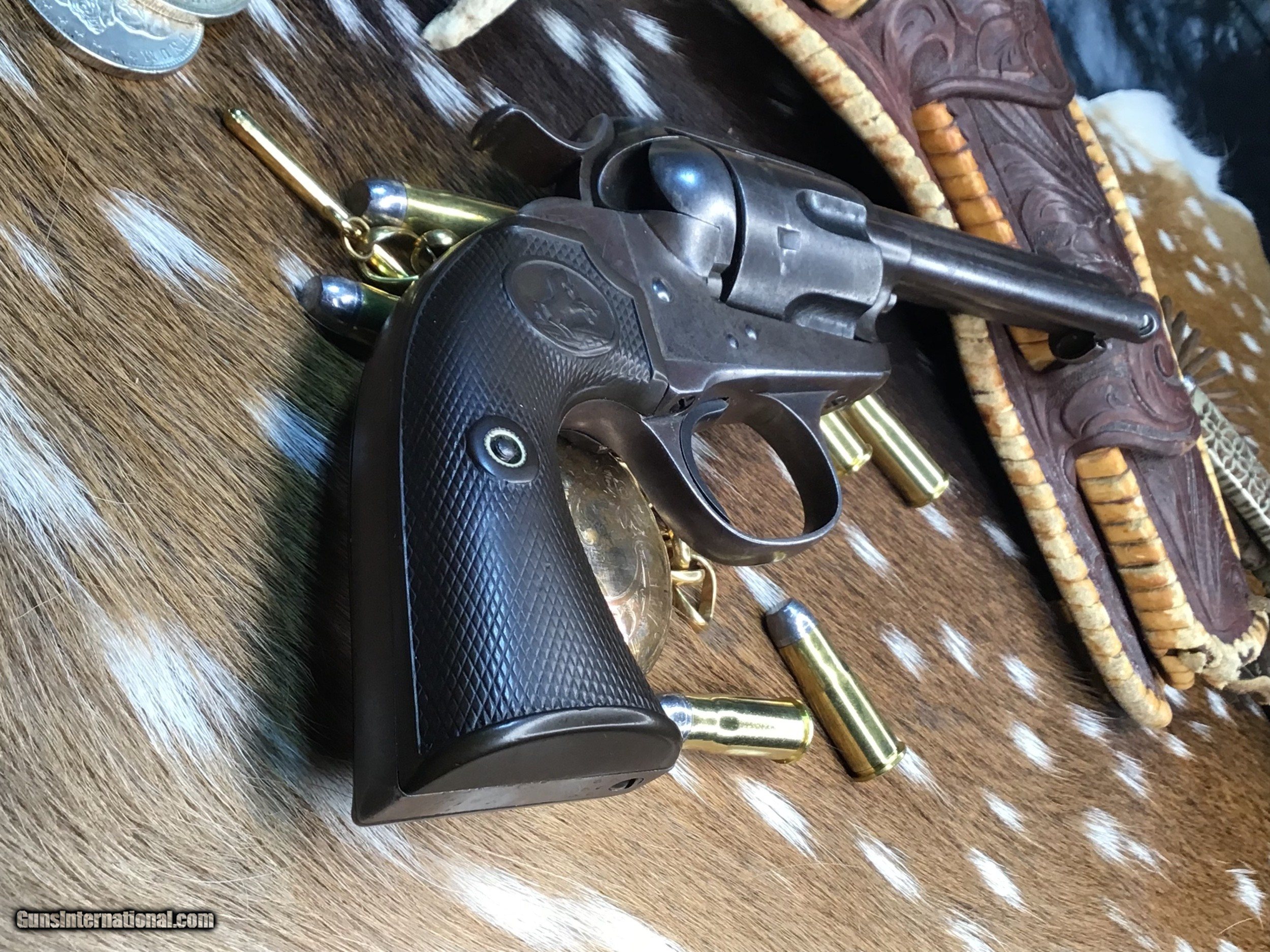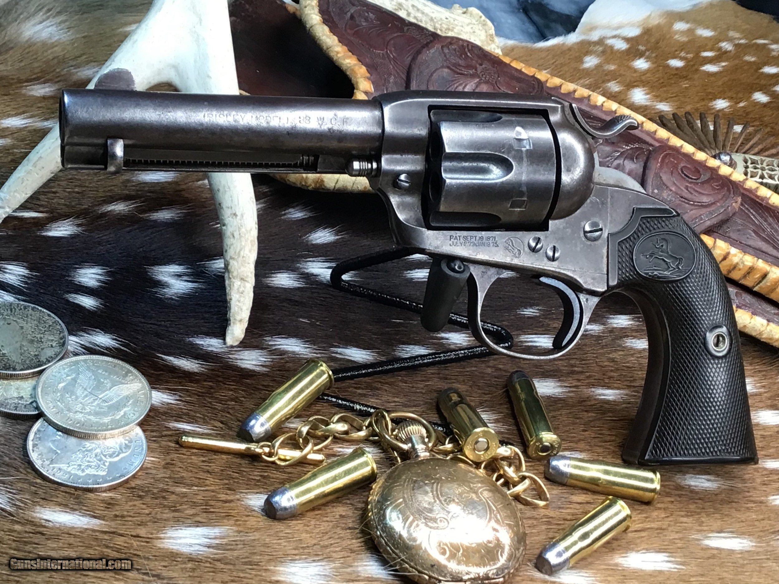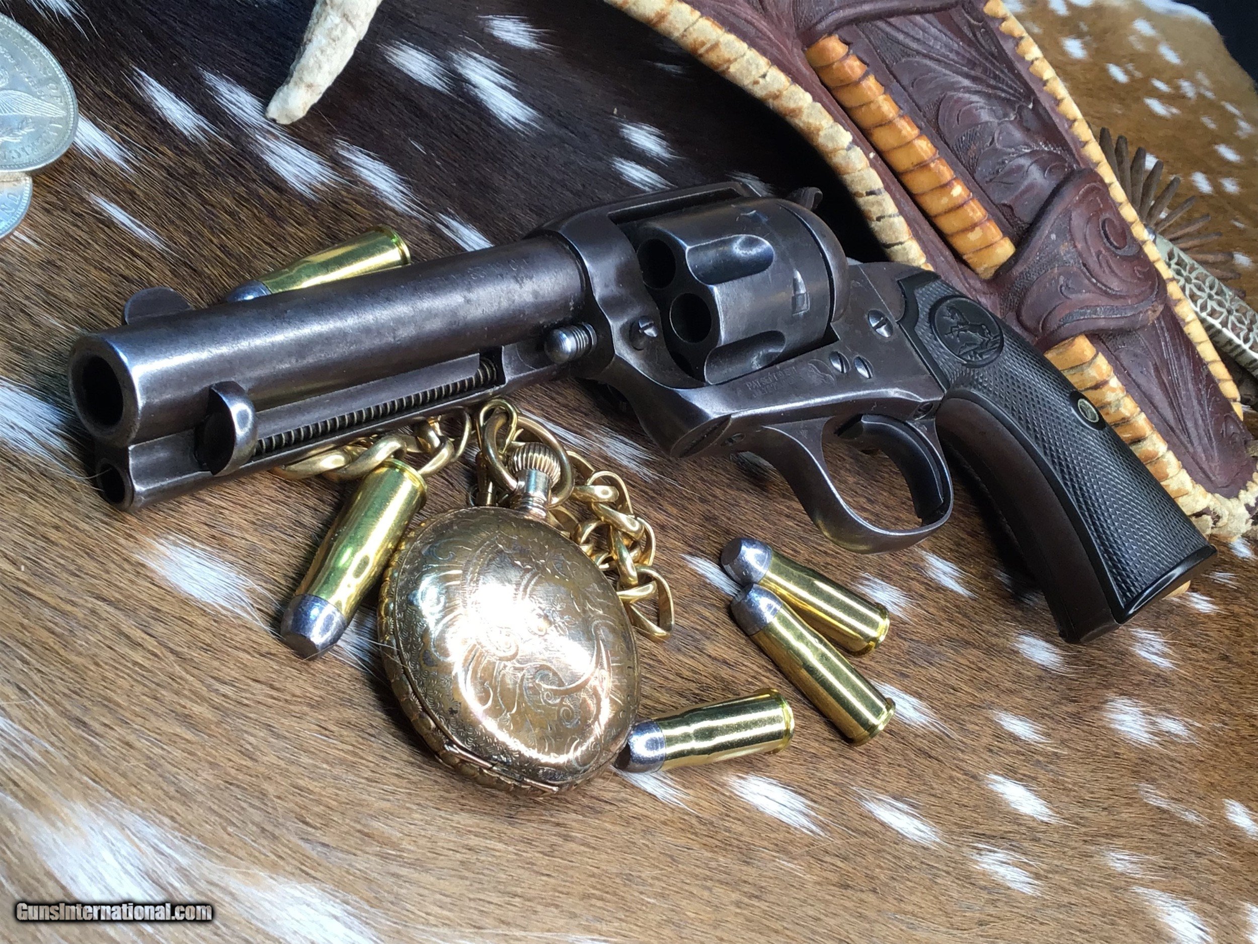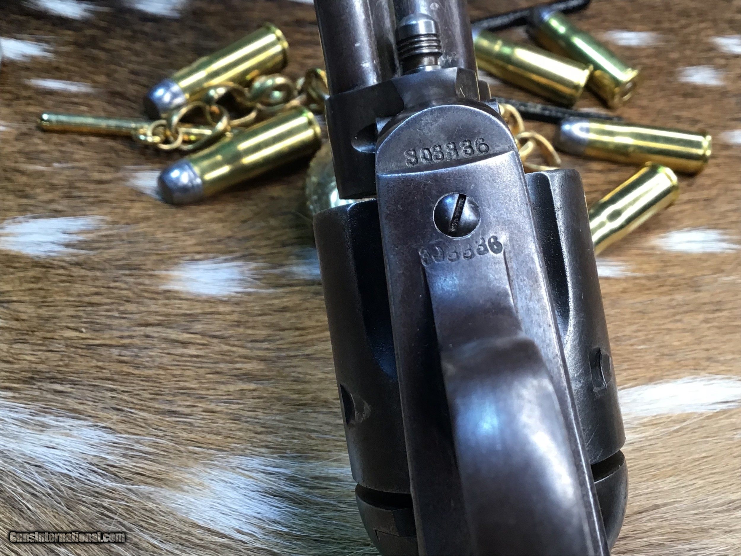 Description: 1907 Mfg. Colt SAA Bisley wearing a 4 3/4 inch Blued barrel and chambered in 38-40 caliber. The old Colt is very tight with all four distinct clicks and a shiney bore with strong rifling. It's a great shooting gun, it may never win the prettiest girl in the safe award but it's a very cool and honest old gun. Original finish remaining in protected areas, original Bisley grips in great undamged condition. Numbers match on frame,trigger guard and butt. Originally designed as a target model of the Single Action Army, whose grip and hammer position were years ahead of the old Colt. Those who used it thought it to be faster shooting. Over 44,000 were built from 1895 to 1912. The main advantage is keeping the gun from rolling up under heavy recoil, and the hammer allows easy recocking without changing your grip as needed on the old SAA grip. Fun gun to shoot, no need to fear of scratching or dinging it. Made in the USA 116 years ago. ADD 3% if paying with credit card. Free shipping for all US Veterans. God Bless America from a proud American, and a Viet Nam Vet , thankful for our freedoms.. paid for by the Blood ,Sweat and Tears of our brave men and women in uniform. Ten Below Firearms is a Veteran owned and operated business. We specialize in out of production models of high quality firearms. We love to ship! We ship to all states where legal, just give us a call! Handguns normally ship for $35 and Long guns for $50 and up for extra length long guns. That's 2-3 day USPS Priority shipping, Delivery conformation and with tracking number. Optional Postal insurance is additional $1.75 per $100 and highly recommended. We are OPEN BY APPOINTMENT ONLY FOR IN PERSON VISITS, We trade, sometimes. All payments sent via mail must be received within five days of date of purchase or item will be relisted for sale. Layaway:If needed we offer a 60 day layaway program. Terms, 1/3 of purchase price down, 1/3 due in 30 days, and the final third to include card fees and shipping due at 60 days. Funds are non transferable and non refundable .Layaway is not available on negotiated prices. SOLD Curio/Relic: Yes Handgun Caliber: .38-40 Winchester (.38 WCF) Manufacturer: Colt Model: Bisley model SAA Serial Number: 303336 Barrel Length: 4.75 inch Condition: Very good Metal Condition: Good Bore Condition: Good Action: SA Triggers: Bisley Finish: Blued Sights: Fixed Manufacture Date: 1907 Item Location: Mn |