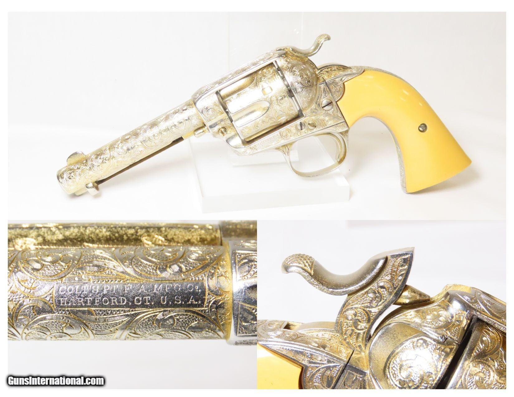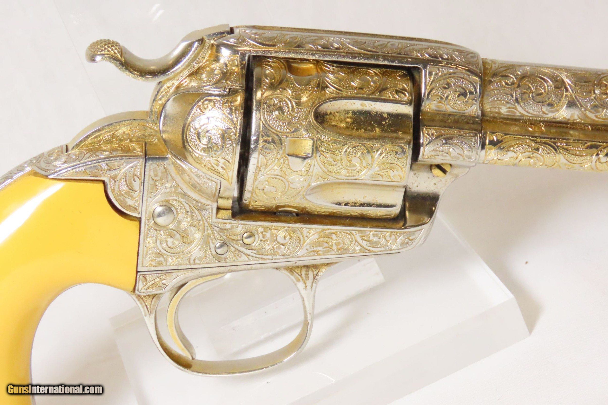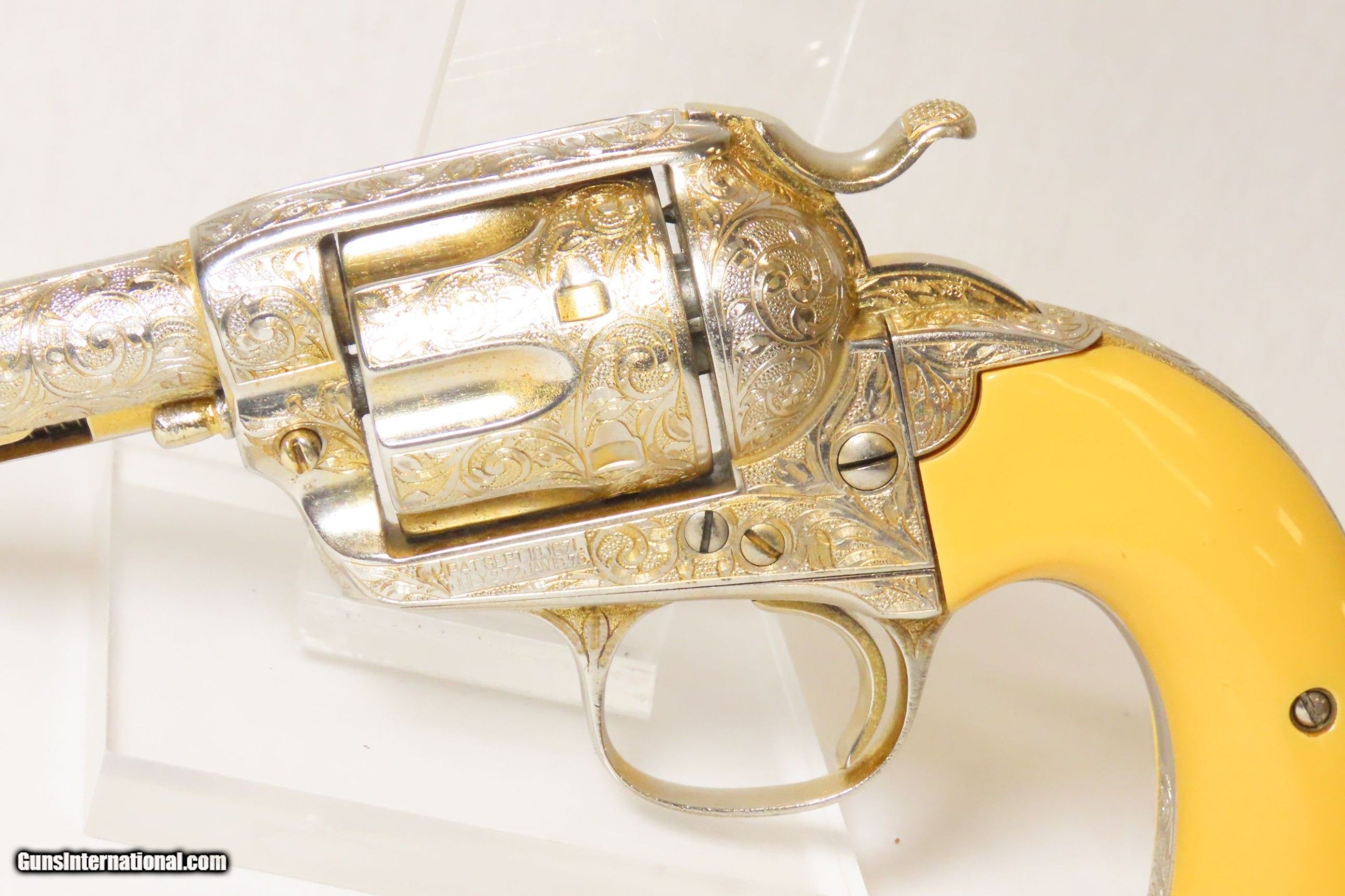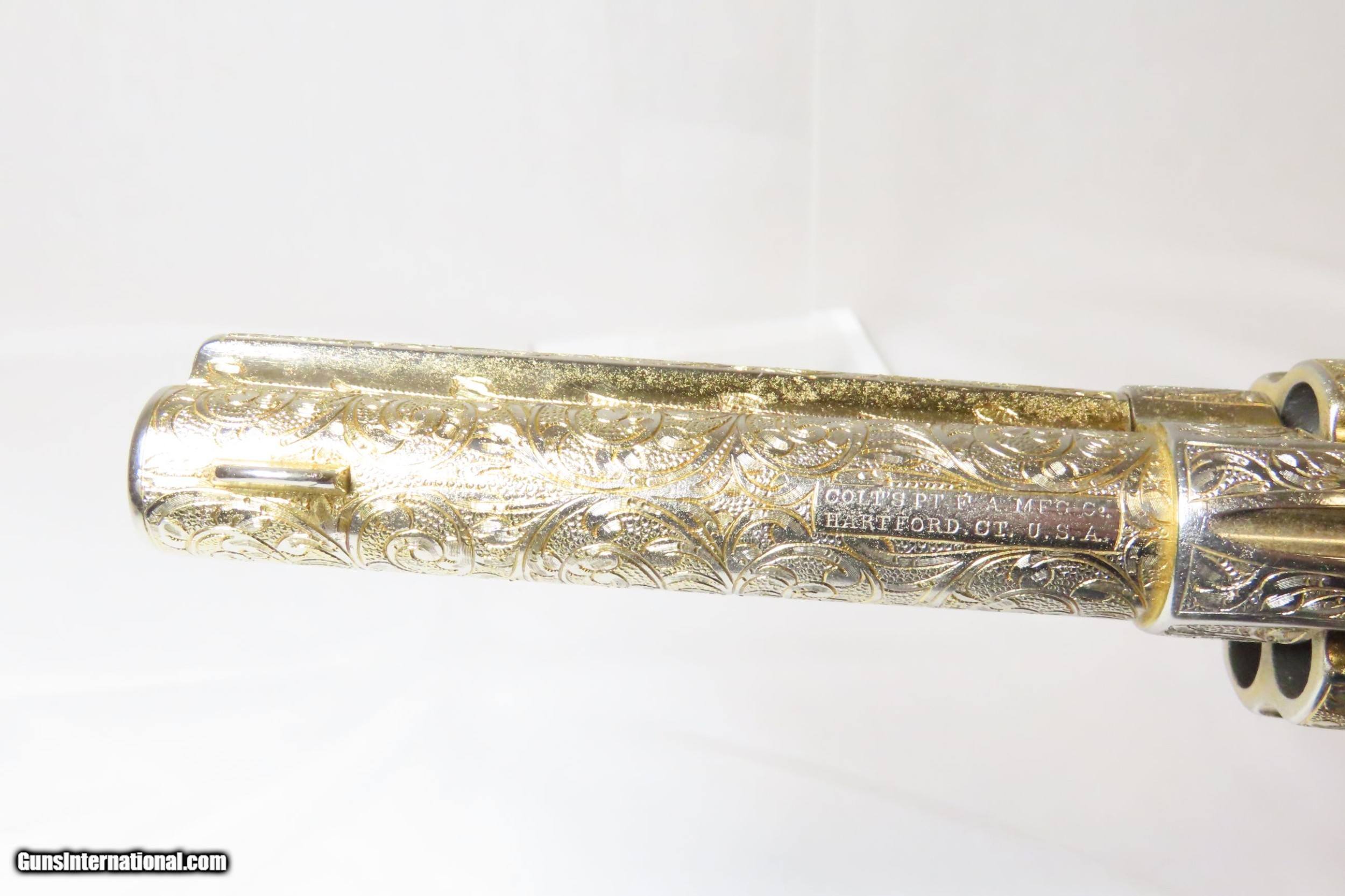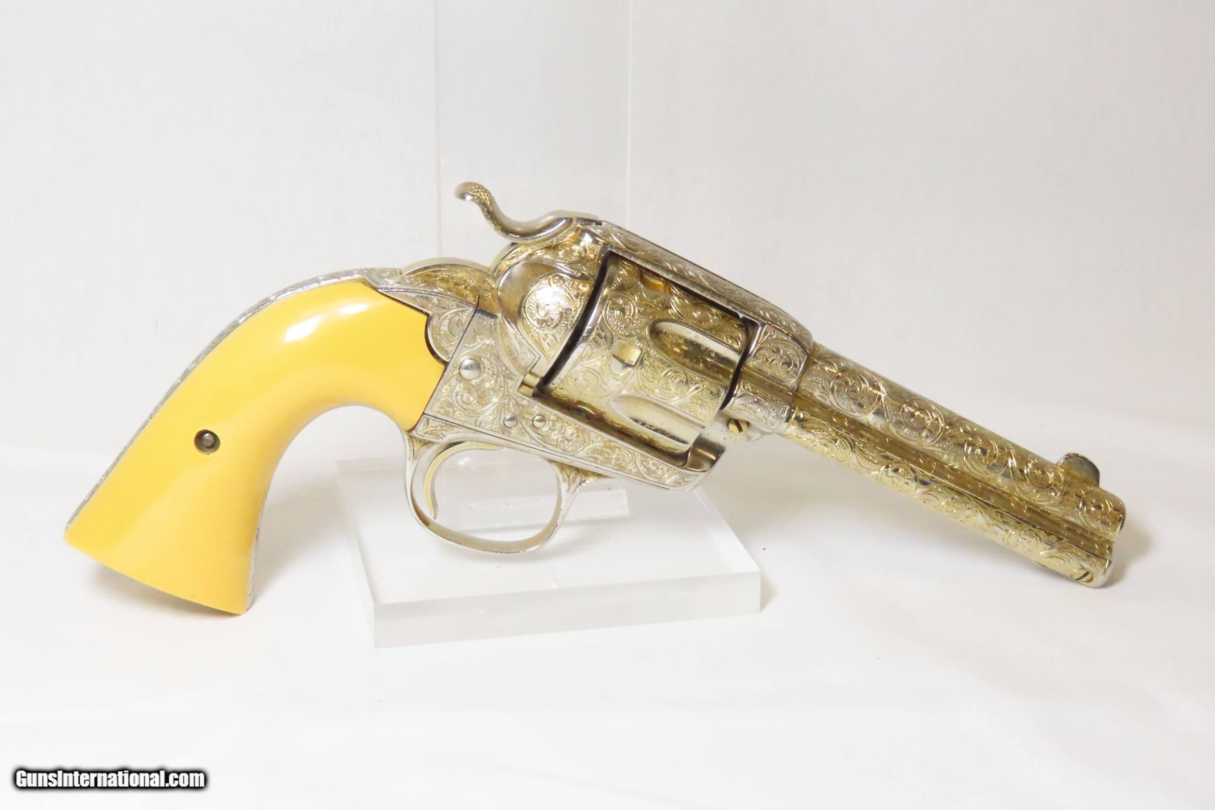 c1906 mfrd. COLT BISLEY Model SINGLE ACTION ARMY .41 Colt Revolver SAA Gold Engraved with Gilt Finish