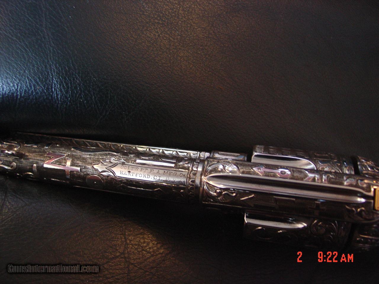 Description: SALE PENDING AWAITING FUNDS.Here is a 112 year old Colt Bisley in 32WCF caliber with a 4.75" barrel, real Ivory grips,& fully master engraved by Clint Finley & signed. words cant explain how beautiful this gun is, & my photos don't do it justice !! way nicer in person made around 1906, & is polished steel with 24k gold accents,& very deep hand engraved & all the cattle brands are like in 3D & are polished to a high gloss, & the real Ivory grips have a nice grain & color. feels great in the hand, & comes with a soft zippered case. serial #277879 a real steal at only $5195.firm + $40.shipping to your FFL dealer only.I am an FFL dealer,located in the Clearwater,Florida area. I accept bank wire transfers, direct deposits to Wells Fargo Bank, cashiers checks,postal & bank money orders,or personal & business checks,but those take time to clear. no credit cards or PayPal-sorry. I now offer 60 day layaway with 1/3rd down & 1/3rd per month. be sure to check out all my other unique listings. SOLD Curio/Relic: Yes |