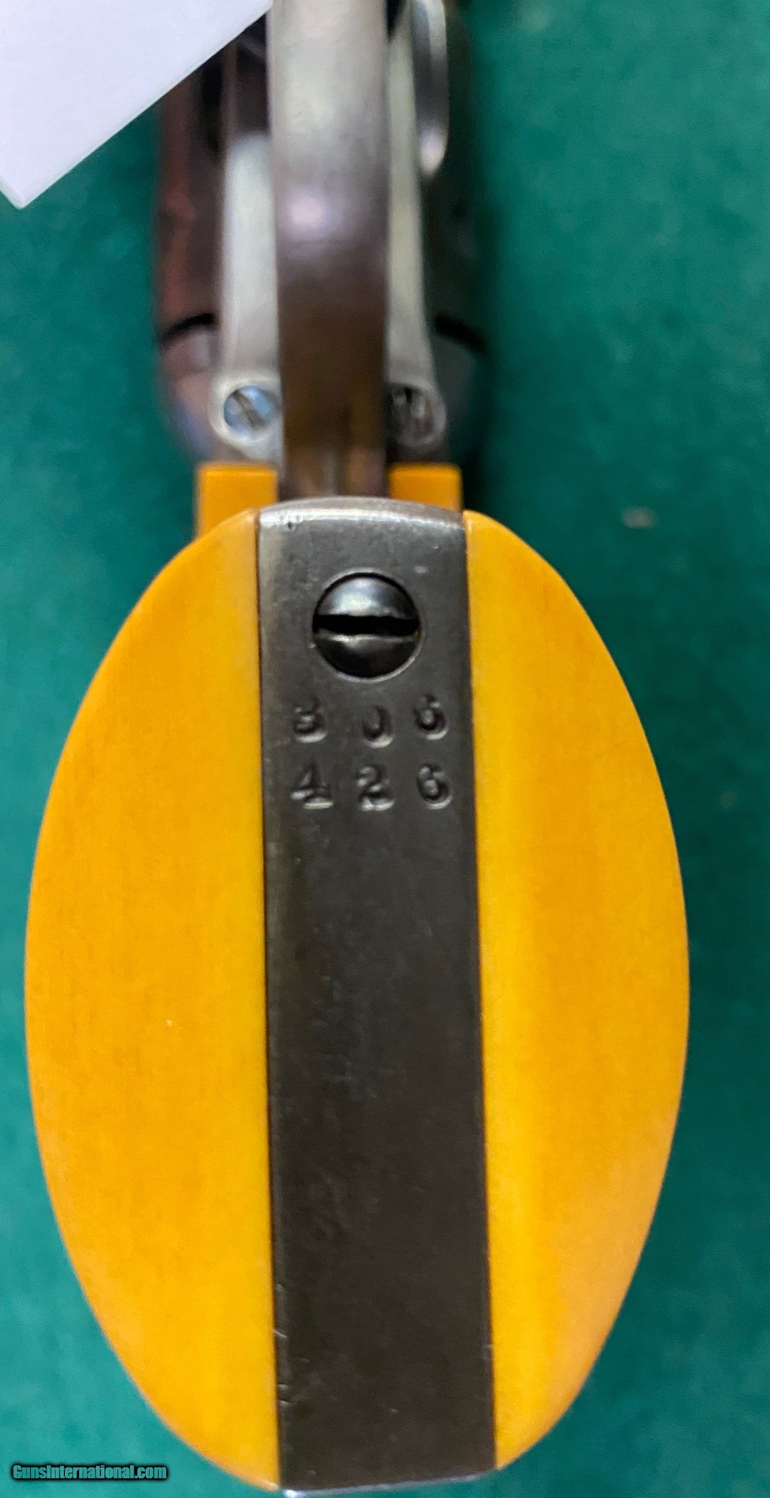 Description: Here we have a consignment item which is a Colt Bisley (First generation) in .45 Long Colt with a 4 3/4" barrel and imitation ivory grips. Overall good condition, barrel has some pitting but still useable. The serial number dates the manufacture back to 1908, Curio and Relic license is acceptable for purchase. Please see pictures for more details. We reserve the right to sell this item at our retail location until an offer is placed on Guns International. We accept major credit cards with a 4% surcharge. We will also take personal checks, however, we do not ship the item until your check clears our bank. This may result in a slight delay in shipment. Please allow up to three business days for us to answer emails. We have been exceedingly busy with ammunition and gun sales lately. Thank you for your understanding and patience in this matter. We are open Tuesday through Saturday, 9 AM to 5 PM. Closed on Sunday and Monday. We are located 9 miles off of Interstate 81, Exit 5, PA Route 16 East, in Waynesboro Pennsylvania. Thank you for your continuing patronage and support during these trying and troubled times! SOLD Curio/Relic: Yes Handgun Caliber: .45 Colt Manufacturer: Colt Model: Bisley Serial Number: 3064xx Barrel Length: 4 3/4β Condition: Good Manufacture Date: 1908 |