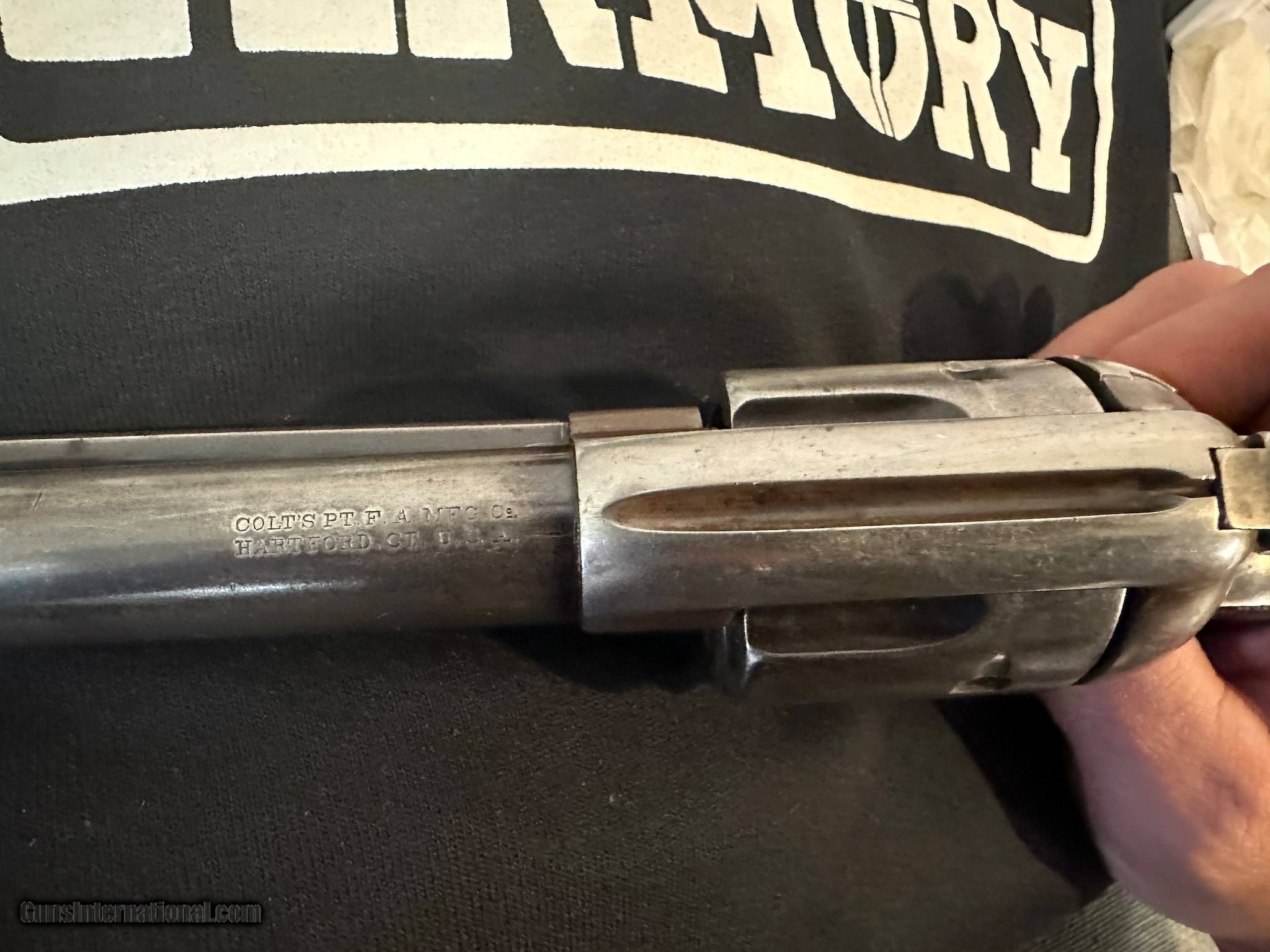 Description: Guns Listing ID: 316954 Named for target range in Great Britain where their National Target Matches were held, since the nineteenth century. Designed as a target revolver, with an humped-back grip that was supposed to better fill the hand while target shooting. Easily identified by wide low profile hammer spur, wide trigger and name \"Bisley\" stamped on barrel. Bisley production fell within serial number range #165000-#331916. Frame and hammer are case colored; remainder blued. Smokeless-powder models produced after 1899, (MANUFACTURED IN 1902), utilized push-button cylinder pin retainer. Grips are checkered hard rubber. This model was actually designed with English sales in mind; though it did sell well over there, American sales accounted for most of Bisley production. SOLD Manufacturer: COLT Model: BISLEY Caliber Info: .32-20 WIN Condition: Used - Non-Certified Barrels: 4.75 BARREL Action: REVOLVER Finish: BLUED Weight: not specified |