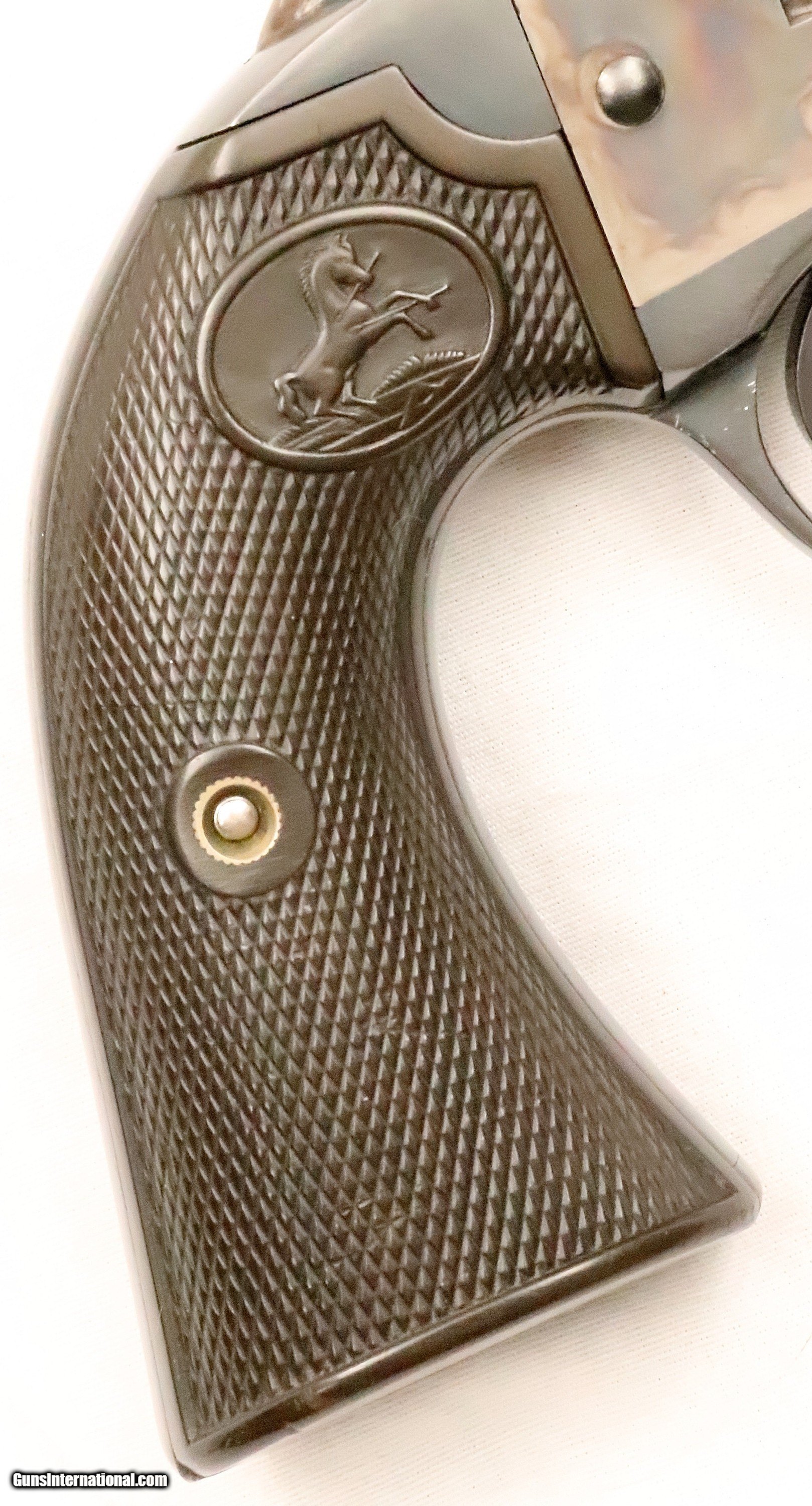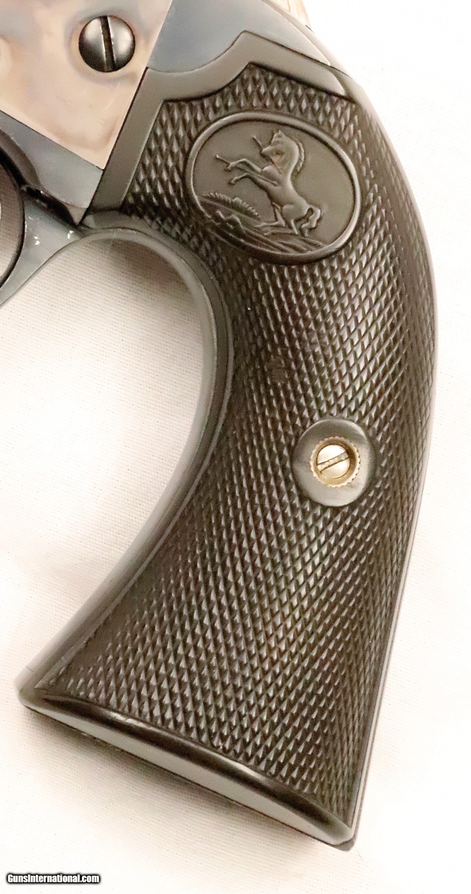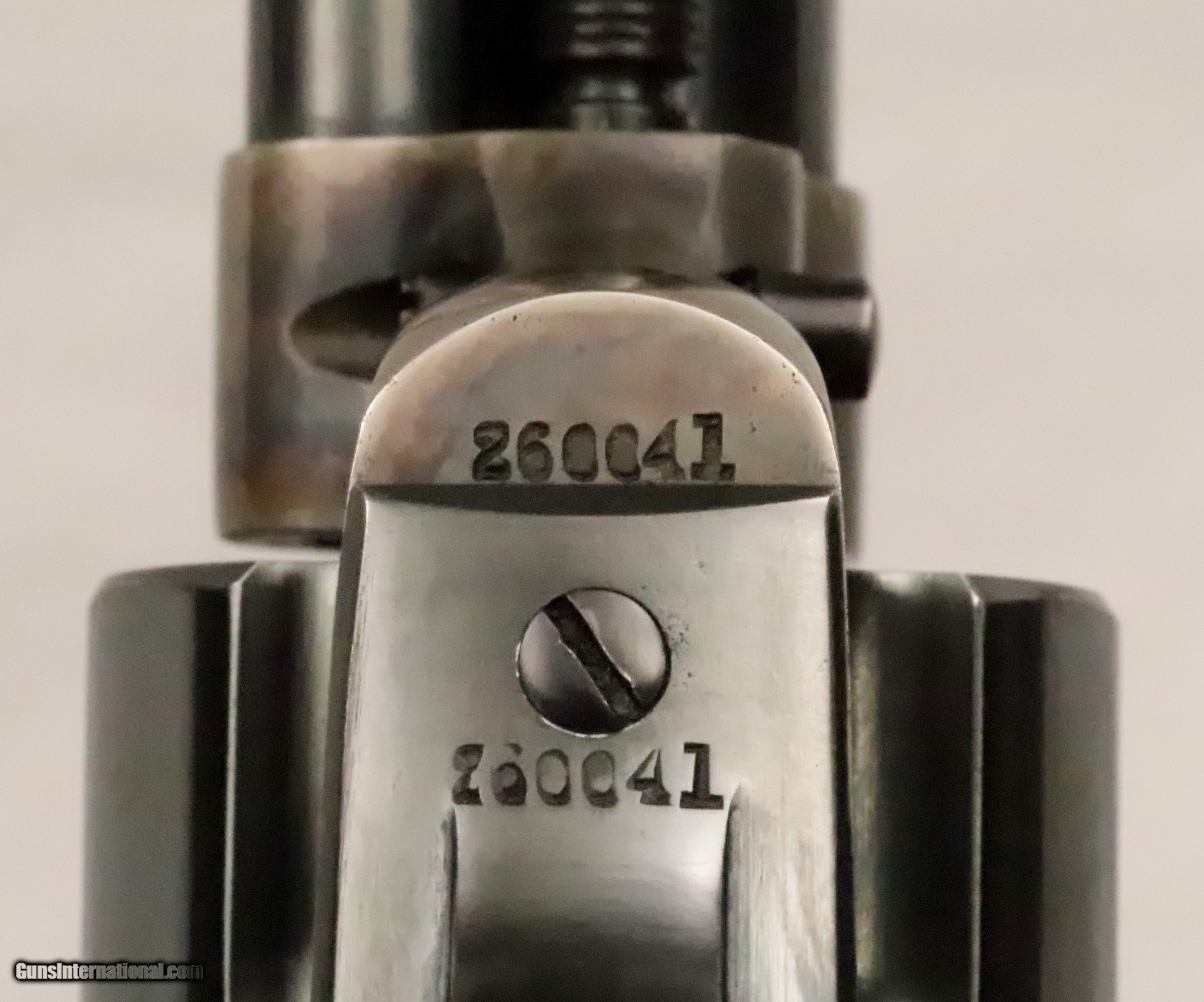 Description: SOLD, PENDING RECEIPT OF FUNDS............The Colt Historical letter stated that this Colt Bisley Revolver was configured as a .45 C. with a 4 ¾” barrel. It was shipped to El Paso TX in 1904. A lot has changed since then, with the most recent work done by Colt, Feb 1970. Evidence of this is the “7 0 2” stamped on the Left Grip frame and “&” stamped above “VP” mark on the Left front trigger guard. The “7 0 2” indicated rework in Feb. of 1970. The “&” mark indicates factory rework. The barrel is marked “BISLEY MODEL” / “COLT SINGLE ACTION ARMY .357”. It is not marked Magnum, indicating a 1st Gen. barrel marking (Graham Kopec p169). The Cylinder is a 1st Gen. as the 2nd Gen had a raring pony mark (Wilkerson p16). The 5-pointed star on the cylinder front indicated heat treating for 1st. Gen. 357 cylinders (Graham Kopec p169). The block of Bisleys made in 1904 had hard rubber grips. Unfortunately, Colt has no repair records to substantiate these observations but the collector community has many published records as cited. Since its’ restoration over 50 years ago this Bisley has been extremely well cared for. There is a very slight cylinder line and few scattered handling marks overall, it’s easy to argue a 98% + condition. The bore and chambers look like new and the action is crisp and locks tight. This Colt SAA Bisley revolver would enhance any collection. Caliber .357 Mag. with a 5 ½” barrel. Serial Number 260041. FFL or C&R Required. Note: The Colt Letter is not available, I passed it on to a previous purchaser, his widow sold the Colt back to me, but the documentation was lost. I had made notes of the letters’ content at the previous sale. Beaver Creek Arms TERMS & CONDITIONS Objective: As a collector of 35 years and Licensed Firearms Dealer since 1989 I have a clear definition of a satisfactory transaction. I will be paid as we agreed to, and you will be satisfied with your purchase. My goal is to establish a client list of satisfied repeat customers who will recommend me to other collectors. It’s just that simple. Exiled Saudi princes with secret funds needing change from an over paid purchase need not apply. Notice: ALL Federal, State, & Local firearms laws will be followed. I will take NO shortcuts in the process of a legal sale or transfer, so please don’t ask. SHIPPING: Shipments are made via U.S.P.S. Priority Mail, Insured, with Signature required. Packing, Shipping and Insurance cost for this handgun is $35.00. Checks to be made out to: Steve Clark Mailed to: 380 Beaver Creek Rd. Dillsburg PA 17019 FIREARMS: Modern firearms, post 1898, can only be shipped to a Type 01 Federal Firearms License address. Curio-Relic firearms, as defined by the BATF list, can usually be shipped to a Type 03 Collectors License address. Some states have additional restrictions such as CA, CT, DC, IL, NJ and NY. A signed valid FFL license copy either mailed or emailed will be required for shipment to only the license address. Antique firearms, pre 1898 do not require a Federal License. For purchase, a copy of a Government Issued Identification (Drivers License, Etc), showing date of birth and current address will be required. GUARANTEE: Your complete satisfaction is assured, see objective above. If you are not satisfied, please contact me within 3 days of receipt. Please don’t fire the weapon, safety, function and accuracy are NOT Guaranteed. Any weapon offered by Beaver Creek Arms is never test fired nor is there any representation the gun is functional and safe to fire. These guns are sold for collectors and only represented as used firearms that must be checked by a competent person, observe all the necessary safety precautions prior to attempting to load and fire one of these weapons RETURNS: Returns must be made within 3 days of receipt. They must be received in exactly the same condition with no parts exchanged. If it has been altered, damaged, or fired, a refund will not be made. Packing, shipping and insurance cost will not be refunded. All layaway purchases are returnable for merchandise credit only. PAYMENT: Bank check, Personal check, and Money Orders are preferred. Visa and MasterCard are accepted with a 3% processing fee. For Visa and MasterCard orders please provide the account number, code number, expiration date, name on card, phone number and card billing address. This information can be phoned in, or E-Mailed. All orders must be paid in advance, C.O.D. orders are not accepted. Checks, both Bank and Personal must clear before the order will be shipped, usually a 2 week delay. SALES TAX: Pennsylvania state sales tax is 6% for in state purchases. The payment of other states sales tax, if applicable, for shipped items is the buyers responsibility. DISCREET: Client information will remain Confidential. Your privacy is protected SOLD Curio/Relic: Yes |