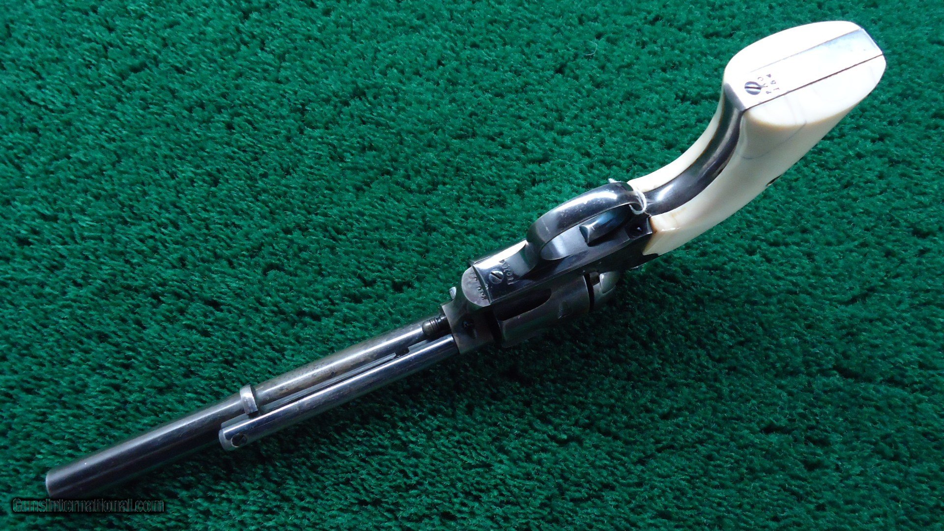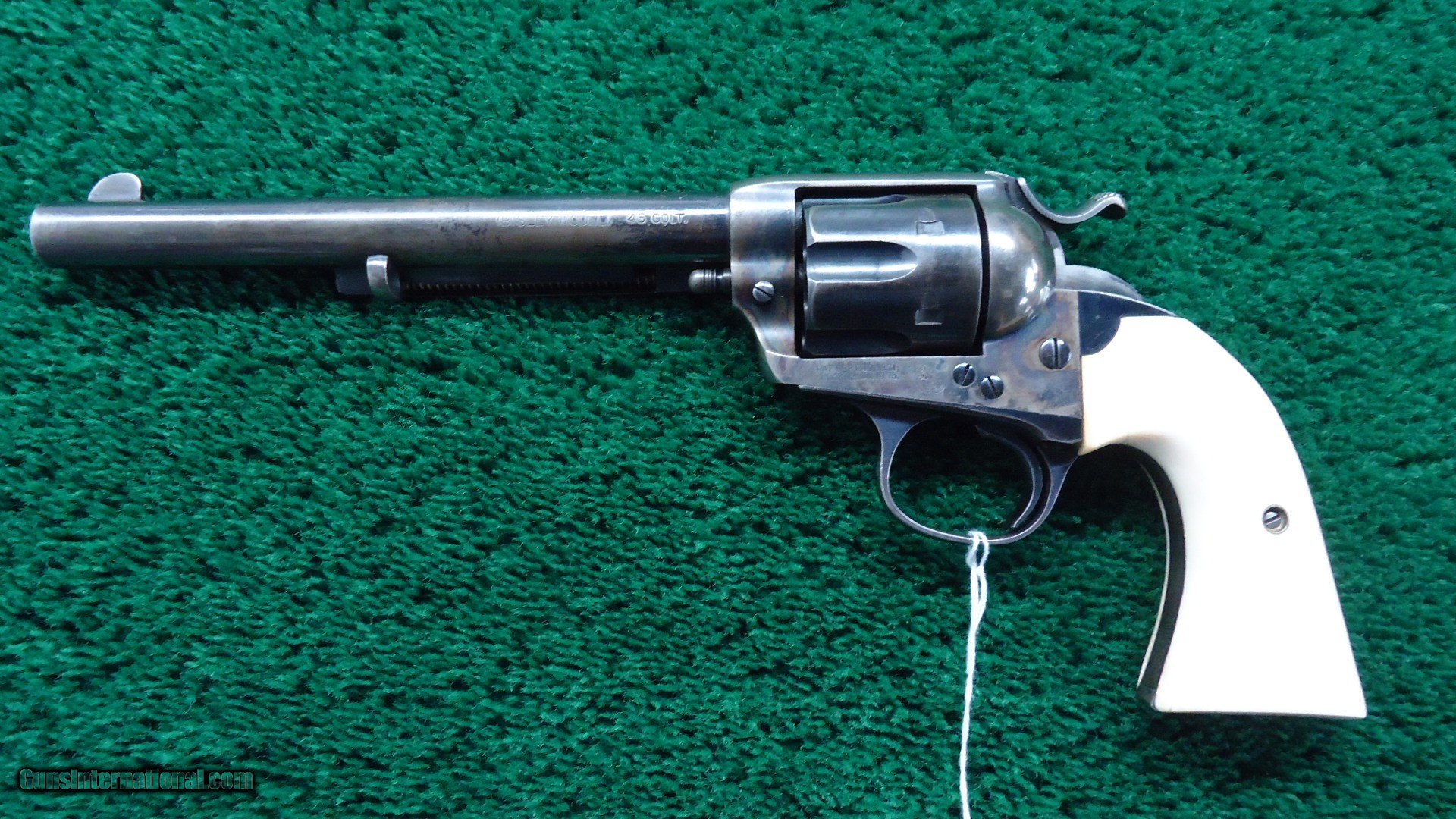 Description: Gun features a 7-1/2 inch barrel, excellent grips and fine bore. Mechanics are very good. Gun retains about 75% bright shiny blue and vivid case colors. Leroy Merz Antique Firearms specializes in antique and vintage Winchesters and other fine American firearms. Since 1965 Mr. Merz has taken part in the world of firearms and has been a contributor to many well known reference books. We have hundreds of additional guns in every price range at our home online. Search for Merz Antiques in google. SOLD Curio/Relic: Yes Handgun Caliber: .45 Colt |