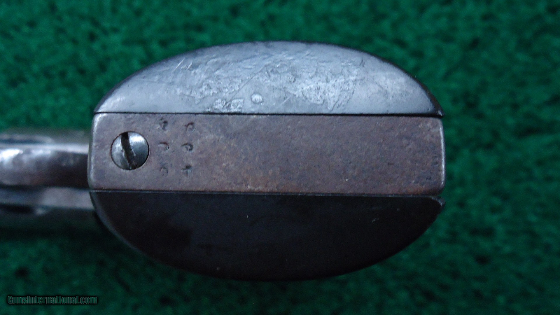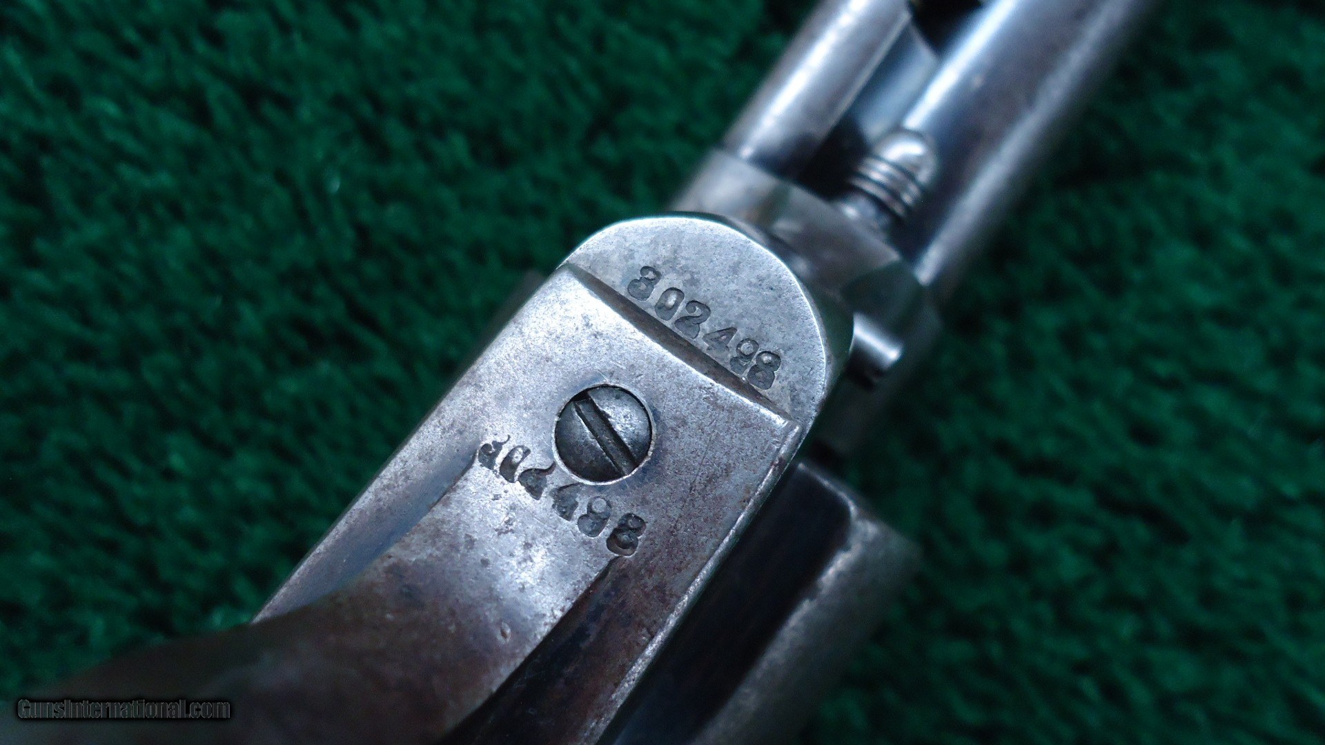 Description: 4-3/4 inch barrel with the correct 2 line barrel address and "Frontier Six shooter" marking on the left side. Overall metal has turned grey with brown freckles and good traces of blue in protected areas. All matching numbers on the frame, trigger guard and backstrap. Hard rubber checkered grips are in good condition and bear the Rampant Colt insignia on each side. Good mechanics but doen't hold on the safety notch. This Bisley certainly has the rugged "Old West" look. Made in 1907. Leroy Merz Antique Firearms specializes in antique and vintage Winchesters and other fine American firearms. Since 1965 Mr. Merz has taken part in the world of firearms and has been a contributor to many well known reference books. We have hundreds of additional guns in every price range at our home online. Search for Merz Antiques in google. SOLD Curio/Relic: Yes Handgun Caliber: .44-40 Winchester (.44 WCF) |