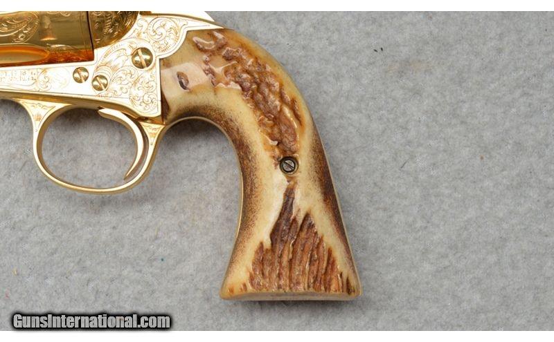 Description: Colt 1902 Bisley upgraded and converted to .22lr by J.G. Bovey of Hollywood CA. Gold with delicate floral scroll and star motifs .22 Long Rifle SOLD Curio/Relic: Yes Metal Condition: Excellent as new Bore Condition: Good Barrels: 4 3/4" Reduced Lined Butt Pad: Stag Grips Weight: 2 Lbs 12 0z Sights: Modified Item Location: Fort Worth, TX |
