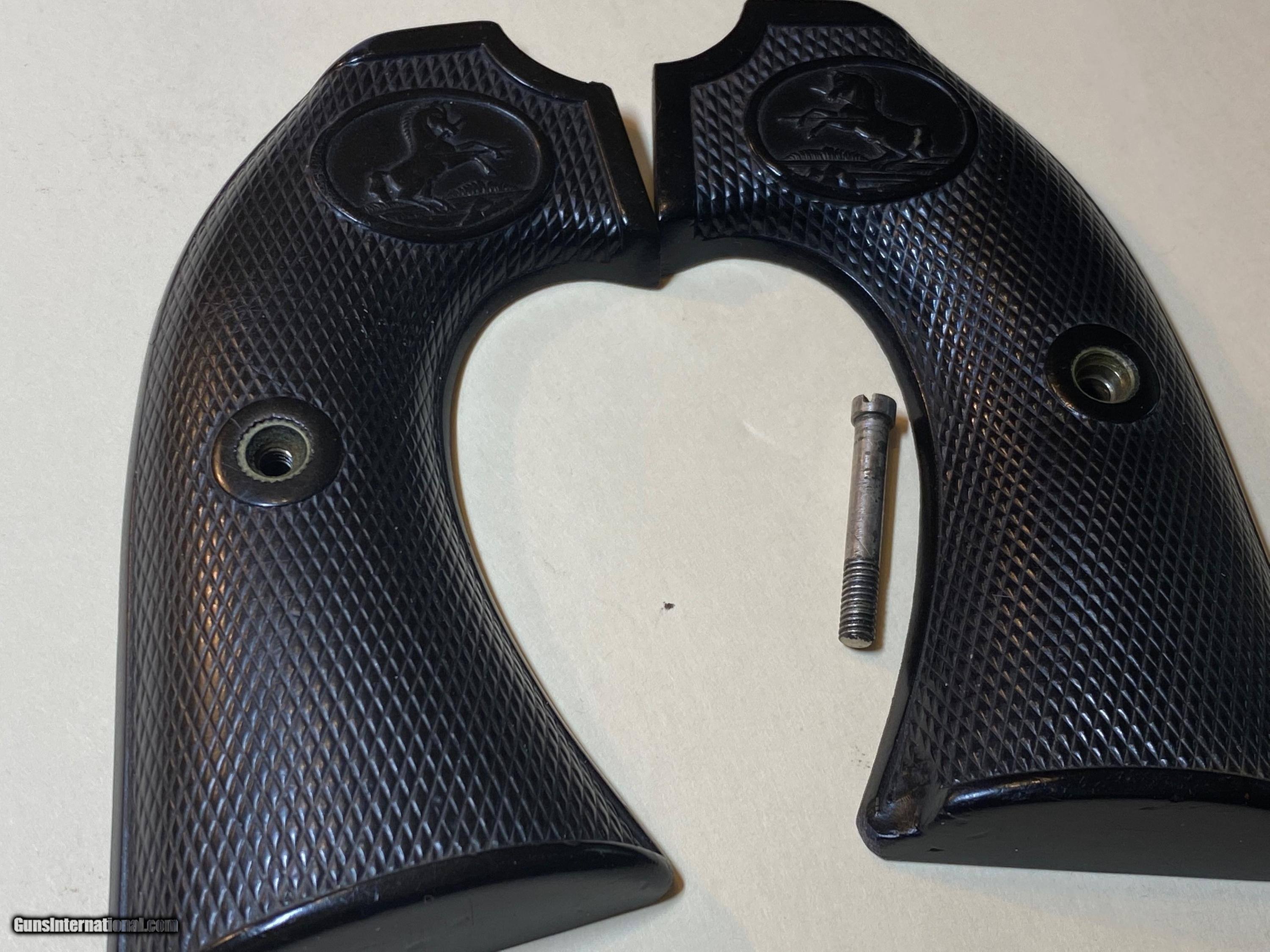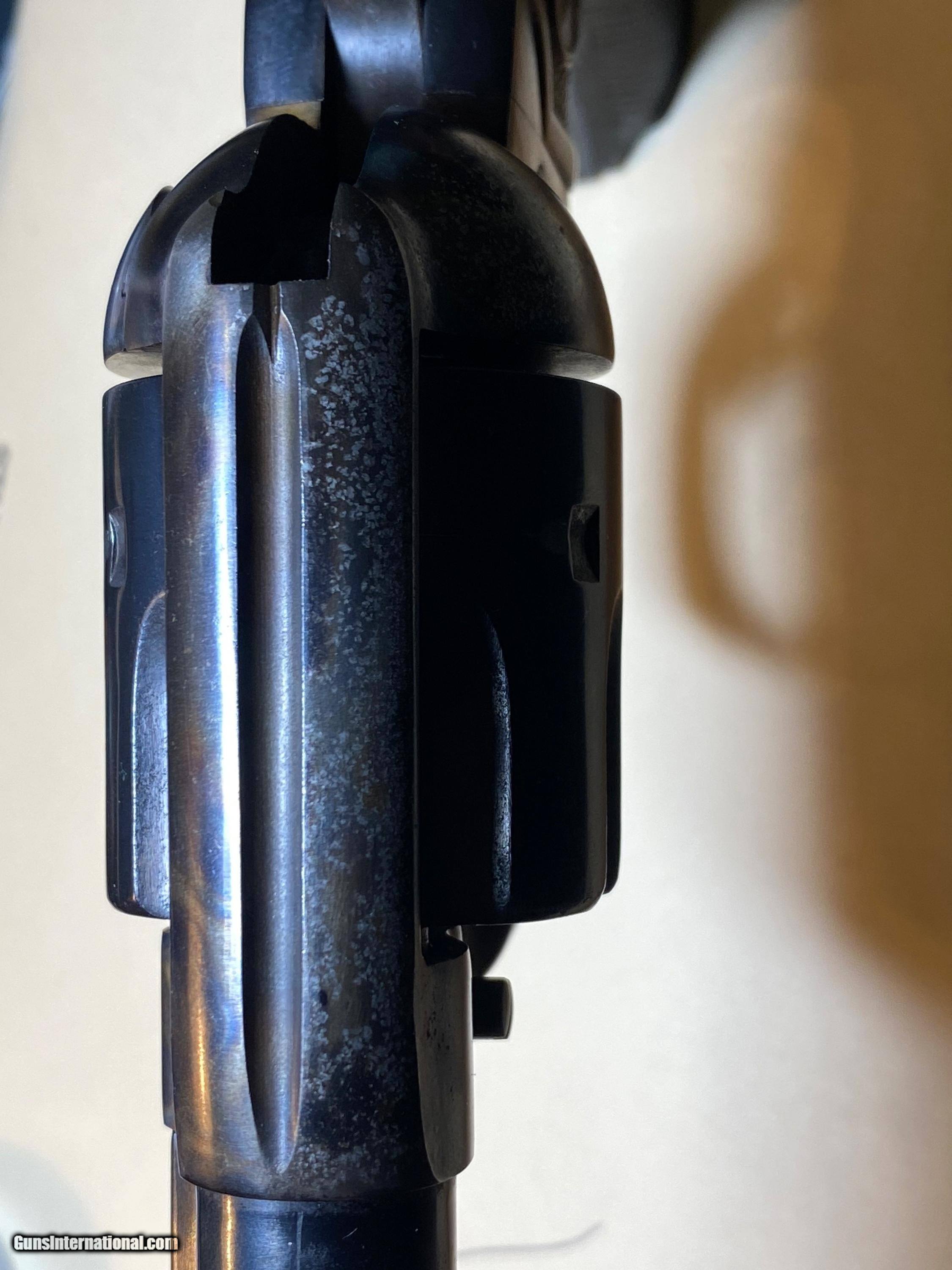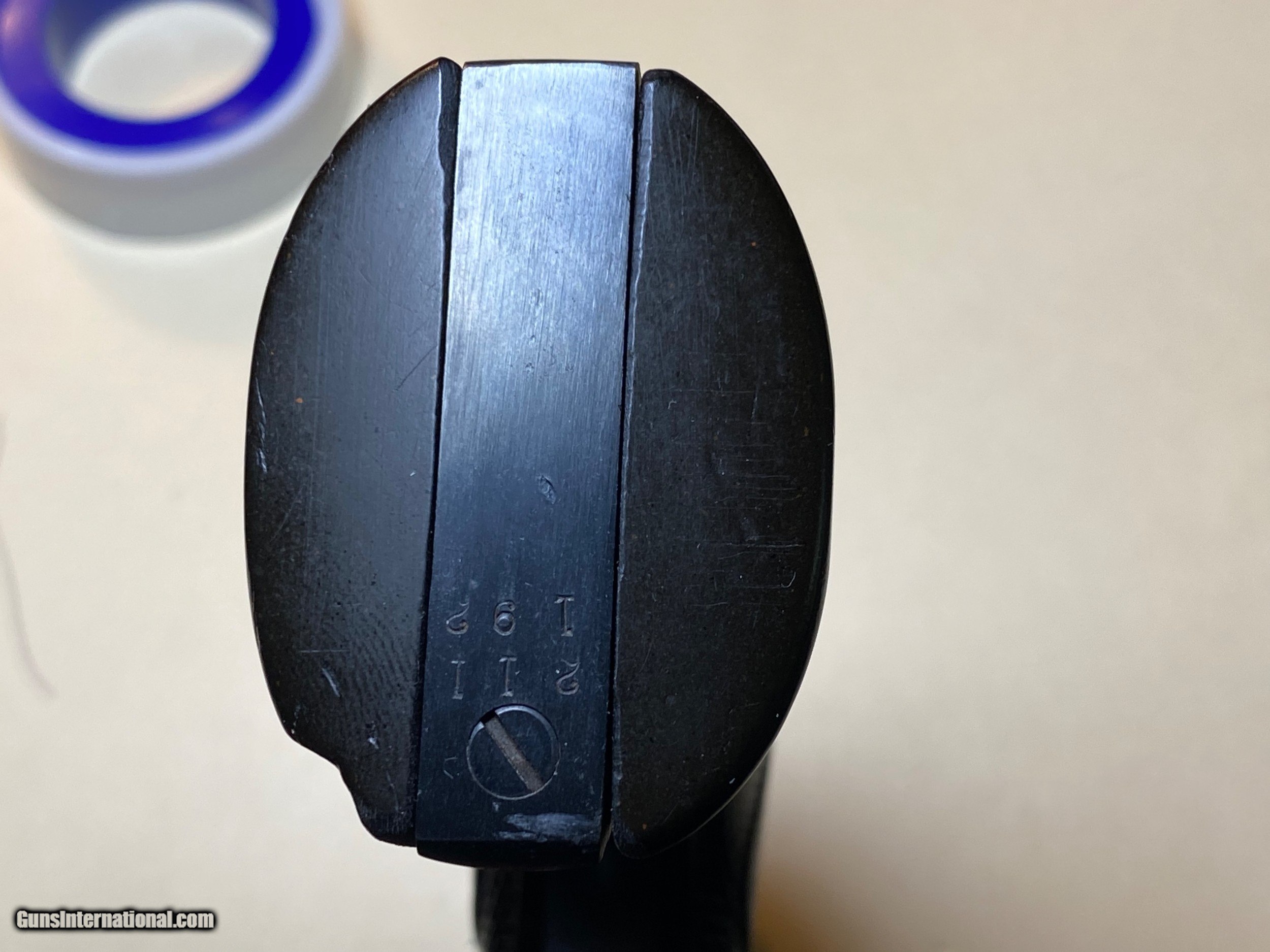 Description: #####SOLD####SOLD##### COLT BISLEY MODEL REVOLVER .41 Colt. SN 211 192. Mfg 1901 4-3/4" BARREL. COMES WITH COLT LETTER SHOWING THIS BISLEY WAS SHIPPED TO KRAKAUER,ZORK & MOYE CO IN ELPASO, TEXAS THIS BISLEY WAS BLUED AT THE FACTORY AND NOW HAS A BEAUTIFUL PROFESSIONAL RESTORATION. THE FRAME AND HAMMER WERE CASE HARDENED AND THE REST OF THE REVOLVER BLUED. PREP AND POLISH FOR RESTORATION WERE DONE RIGHT BEFORE BLUEING AND CASE HARDENING. THE TOP AND BACK LEFT SIDE OF THE FRAME IS TURNING TO A GRAY PATINA. THE BLUE ON THE REST OF THE REVOLVER IS 85%. THE ACTION IS VERY CRISP-STRONG AND ALL CLICKS ARE IN SYNC. THE CYLINDER LOCKS TIGHT ON ALL SIX CHAMBERS. ALL THREE SN's MATCH AND ARE CLEAR. THE BORE IS BRIGHT AND HAS ALOT OF SERVICE LIFE LEFT. THE LANDS ARE PROMINATE AND THE BORE SHOWS SOME LIGHT PITTING. THE VINTAGE RUBBER CHECKERED GRIPS SHOW LITTLE WEAR THE LEFT GRIP HAS A SMALL CHIP IN THE BASE THAT IS HARD TO DETECT. THIS FINE ALL ORIGINAL COLT BISLEY IS 121 YEARS OLD AND QUALIFIES C&R AND NEEDS TO BE SHIPPED TO YOUR FFL DEALER. SHIPPING IS INCLUDED IN THE PRICE. THE INCLUDED PICTURES SHOW THE GREAT CONDION OF THIS WELL MAINTAINED COLT BISLEY. SOLD Curio/Relic: Yes Handgun Caliber: .41 Long Colt (.41 Colt, .41 LC) Manufacturer: COLT Model: BISLEY Serial Number: 211 192 Barrel Length: 4-3/4” Bore: BRIGHT Chambers: VERY GOOD Condition: Very GOOD Metal Condition: VERY GOOD Bore Condition: VERY GOOD |