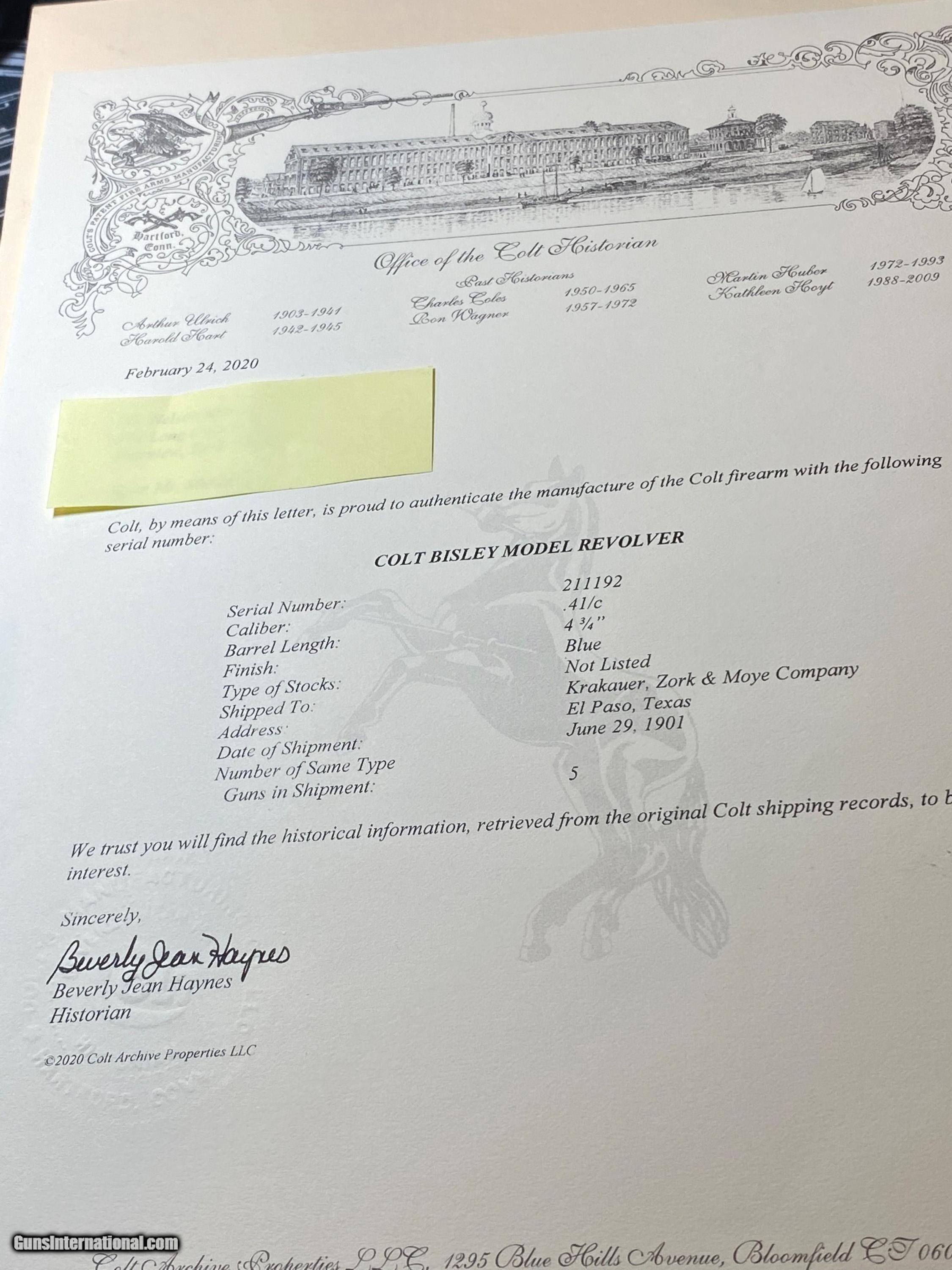 COLT BISLEY MODEL REVOLVER .41 Colt