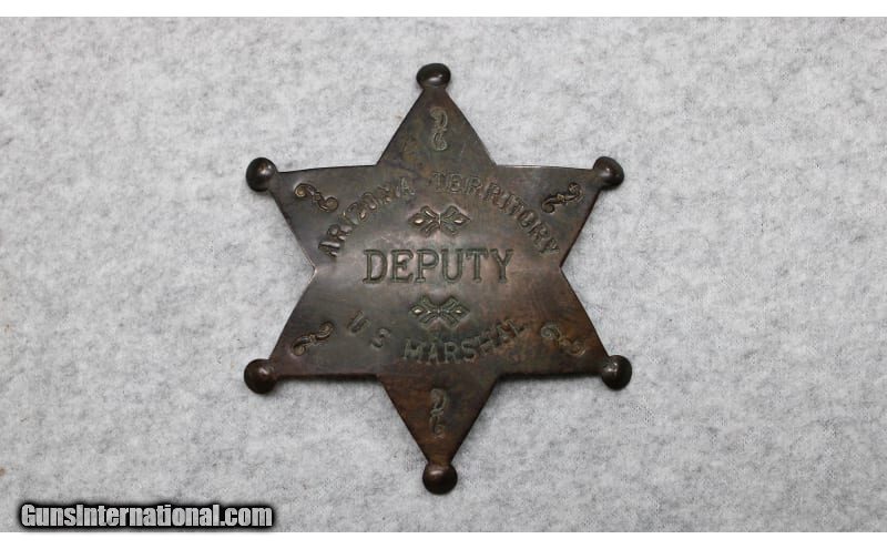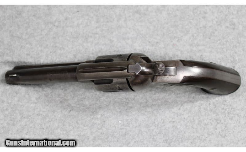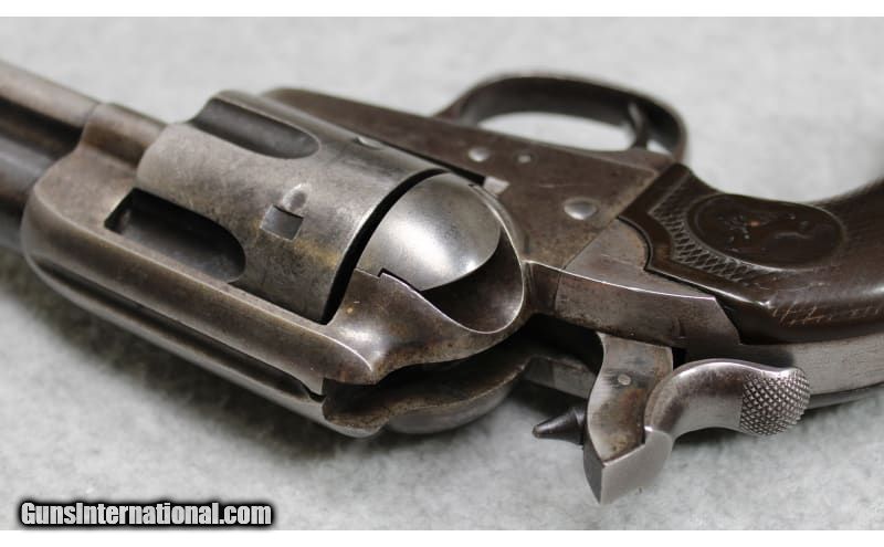 Description: Colt Bisley Model Single Action Army revolver chambered in .38 WCF (.38-40 Winchester). The serial number (223956) indicates that the revolver was manufactured in 1902. Introduced in 1894 as a target pistol, the Bisley can be distinguished from other Colt models by its angled longer grip, wider hammer spur, and wider trigger, Features include a 4-3/4 inch blued barrel and color casehardened frame with hard rubber grips. In overall good condition, the revolver has wear one would expect from a firearm of this age that has not been refinished. Comes with a reproduction Arizona Territory U.S. Marshal Deputy badge. .38 WCF SOLD Curio/Relic: Yes Metal Condition: Good with Handling Marks and Scratches Wood Condition: Fair with Handling Marks and Extensive Wear Bore Condition: Slight Darkening with Some Pitting Barrels: 4.75 inch Butt Pad: Hard Rubber Weight: 2 lbs 3 oz Item Location: Fort Worth, TX |