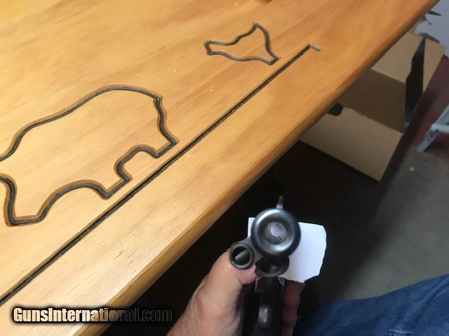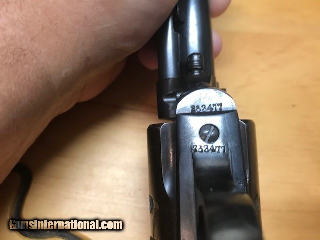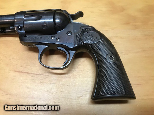 Description: ********** PRICE LOWERED TO $1600.00 TIL AD EXPIRES ON 8-25 *************Colt Bisley 32-20 made in 1905. 4 3/4" bbl,, All matching numbers, completely reblued years ago, all parts appear to be original to gun, grips turned brown in color over years with no cracks or chips. Gun is nice and strong with good springs. 4 clicks spell Colt when cocked. This is a shooter and by no means a safe queen. Some rifling visible in barrel. All markings are clear and legible. Had Colt Archives Letter at one time, but it has been misplaced. Photocopy I made shows gun was shipped with 5 others to Hibbard, Spencer, Bartlett & Company in Chicago, Illinois on February 23, 1905. Thanks for looking. SOLD Curio/Relic: Yes Manufacturer: Colt Model: Bisley Serial Number: 263477 Caliber Info: 32-20 Chambers: 6 Condition: good Metal Condition: good Wood Condition: n/a Bore Condition: fair Action: single |