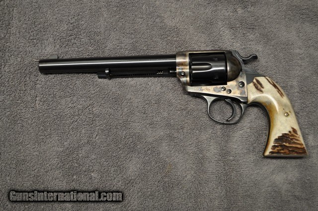 Description: 7 1/2 inch barrel,Stag grips, Made approx 1915. Revolver has been reblued and case hardened. Lock up is tight. All matching serial numbers. Serial number 256xxx. SOLD Handgun Caliber: .32-20 Winchester (.32 WCF, .32-20 Marlin, .32 Colt Lightning ) |