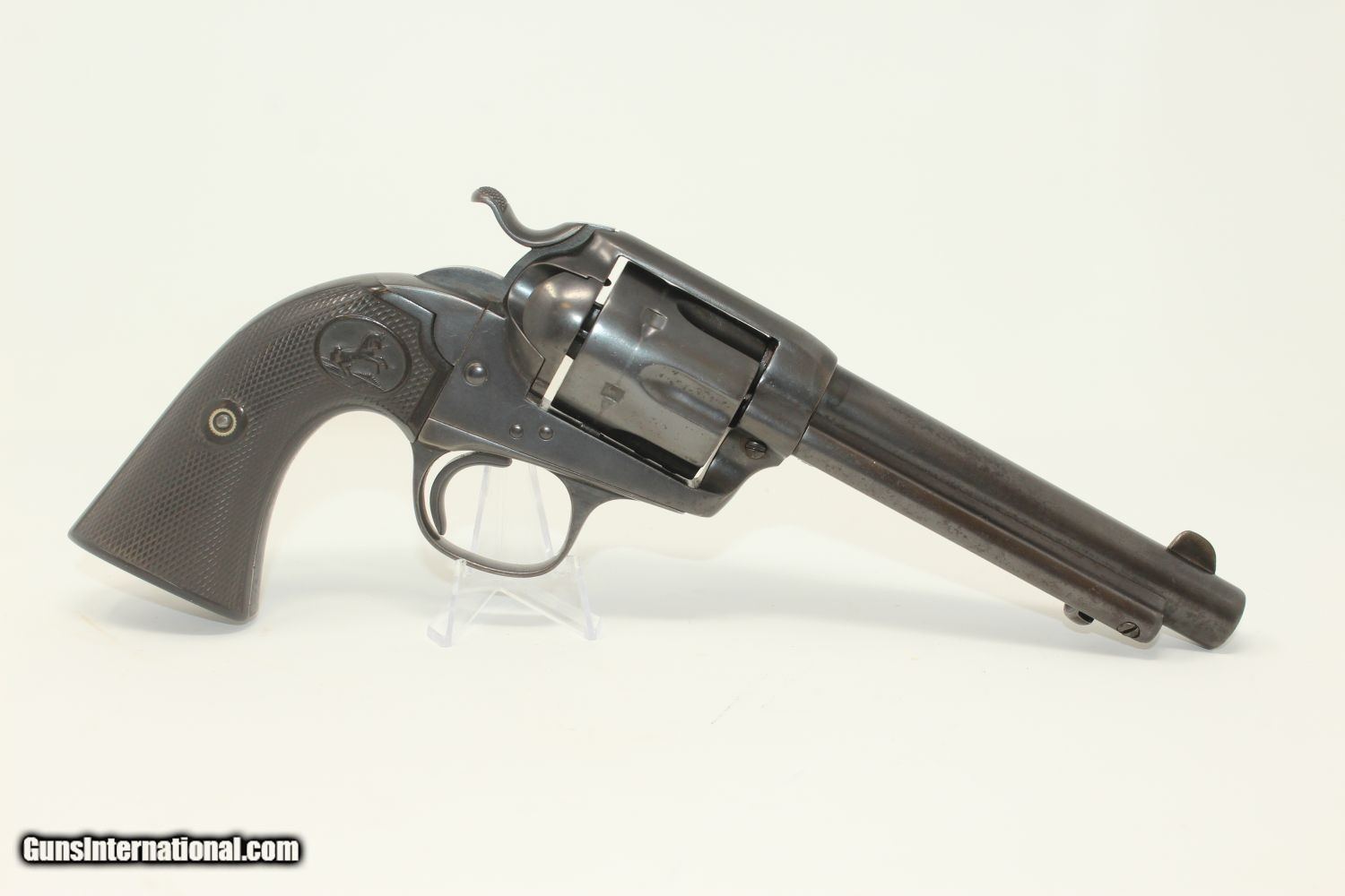 Description: COLT Bisley SINGLE ACTION ARMY .41 Colt Revolver SAA in SCARCE .41 Caliber Long Colt Manufactured in 1907 Here we present a Colt Bisley Model Single Action Army Revolver in .41 Colt, manufactured in Hartford, Connecticut in 1907. Out of 44,350 Bisley revolvers made, only 3,159 were chambered for .41 Colt cartridges. Though Colt enjoyed the largest contracts of any handgun maker during the American Civil War, it had to rely on its array of percussion fired revolvers, namely the 1860 Army until the Smith & Wesson owned Rollin White Patent expired in 1869. This enabled them to begin making revolvers with completely bored through cylinder chambers in order to utilize modern metallic cartridge ammunition in the most effective manner. In 1869, Colt’s began development of a suitable cartridge revolver in earnest, first coming out with a number of conversions for their percussion lines, until 1872 when they debuted what was to become the Colt Model 1873 Single Action Army in the 1872 U.S. Trials. Needless to say, it won, and became the Army’s revolver of choice. It also became the sidearm of choice for many others like cowboys, guards, lawmen, crooks, shopkeepers and all manner of civilians. This is an example of the Bisley variant of the Colt Single Action Army revolver. The primary differences were a lower hammer spur and a more curvaceous grip frame. These were optimized toward target shooting but many general users and shooters who were not simply target shooters preferred them as well. This one comes in a rare .41 Colt chambering, which was a manstopper in its day. The overall condition is very good. This revolver has been re-blued and retains 90%. Some of the markings remain legible. The numbers match. The trademarked Colt grips are in great shape. The bore is in good condition, with a little frosting and good rifling. The action is excellent. This Colt Bisley would make a great addition to your collection, made in 1907 and in a very difficult to find cartridge! This firearm is classified as a Curio & Relic. Barrel is 5-1/2 inches. Caliber: .41 Colt Overall condition as seen in photos. Very Fast. Very Safe. FREE SHIPPING. Will need to be sent to your local FFL or C&R licensee. This firearm is classified as a Curio & Relic. Guaranteed AUTHENTIC & Includes CERTIFICATE OF AUTHENTICITY. ancestryguns $2375 #190056 SOLD Curio/Relic: Yes |