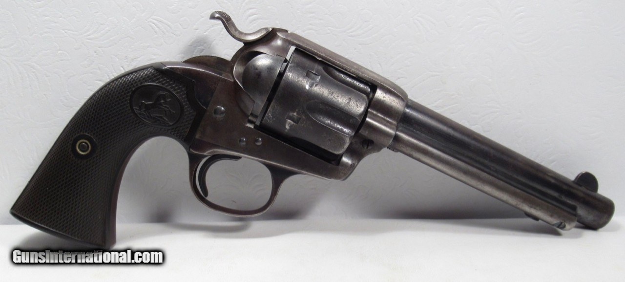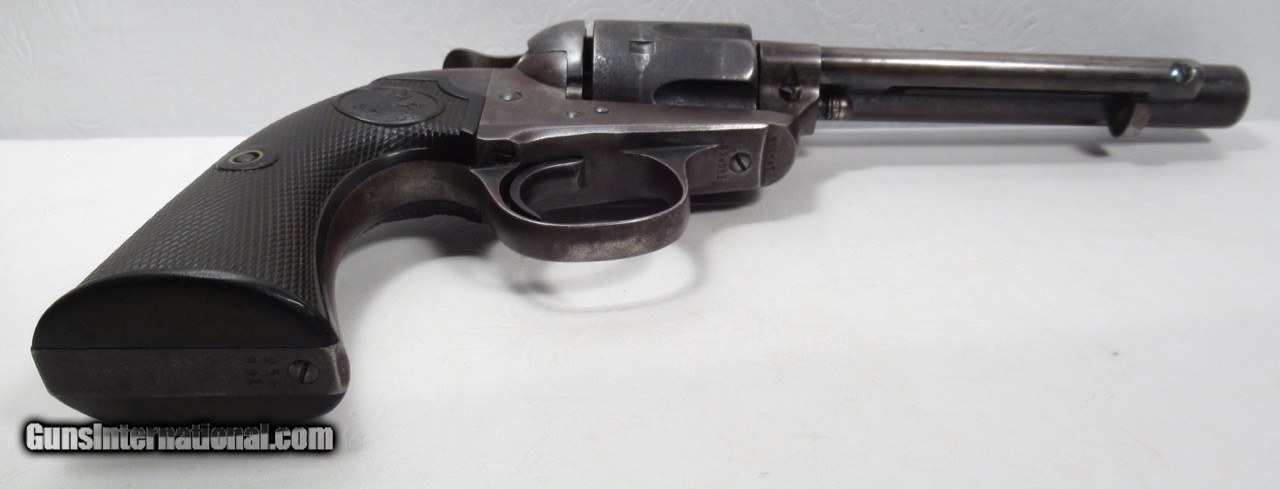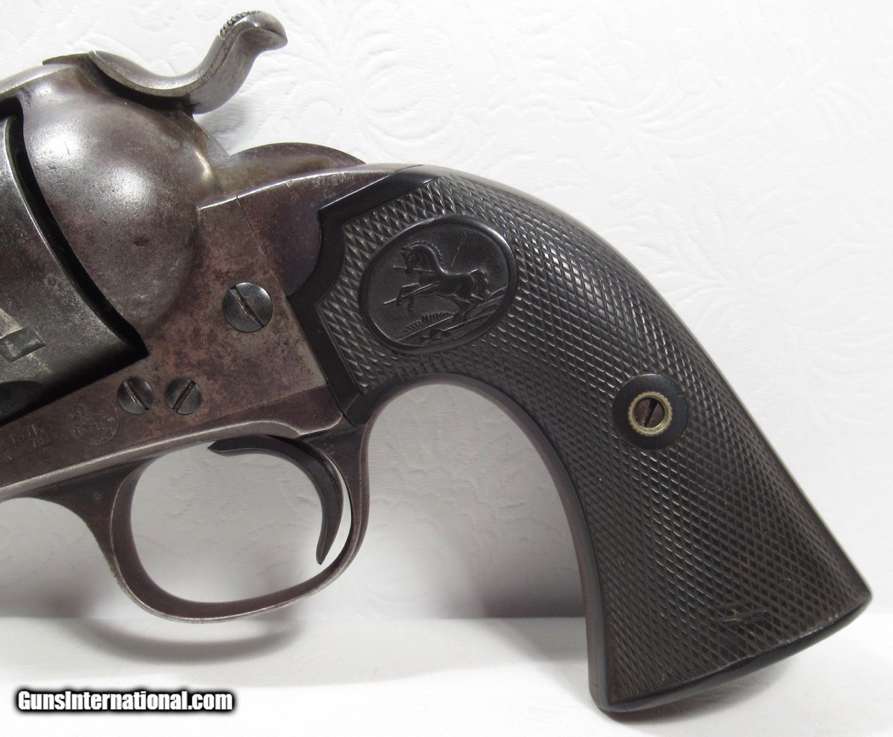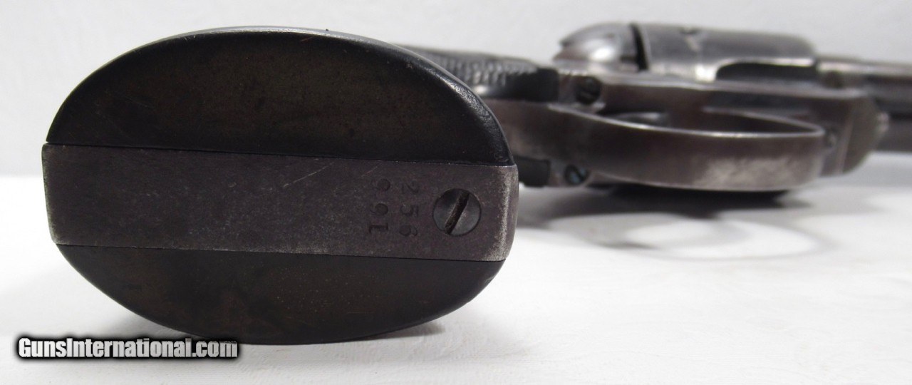 Description: Colt Single Action Army Bisley Model; Serial No. 256991; 38 W.C.F. (38/40) Cal. with 5 ½” Barrel; Factory Letter indicates a 1904 Shipping Date to Lee Hardware Company of Salina, Kansas; Revolver is 100% Matching, Correct, and Original; decent amount of Original Metal Finish Remains; Excellent Original Grips; Full Front Sight; Perfect Screws; Perfect Action; Tight Lockup; Strong Shiny Bore with some minor chattering; Hard to Find a Western Shipped Colt that is 100% Pure and 115 Years Old; LIQUIDATING PERSONAL COLLECTION; Price: $2,800 Shipped; Price includes insured shipping; return policy: three days inspection from the date the item is received; full refund of shipping both ways ONLY IF THE ITEM IS MISREPRESENTED. SOLD Manufacturer: Colt Model: Bisley Serial Number: 256991 |