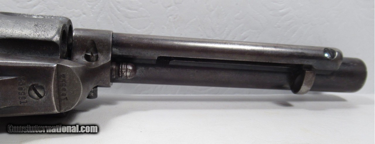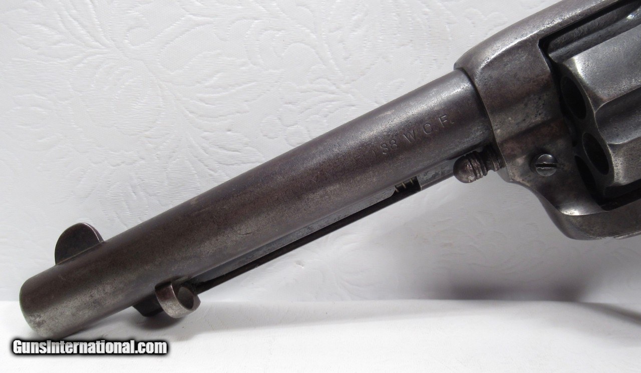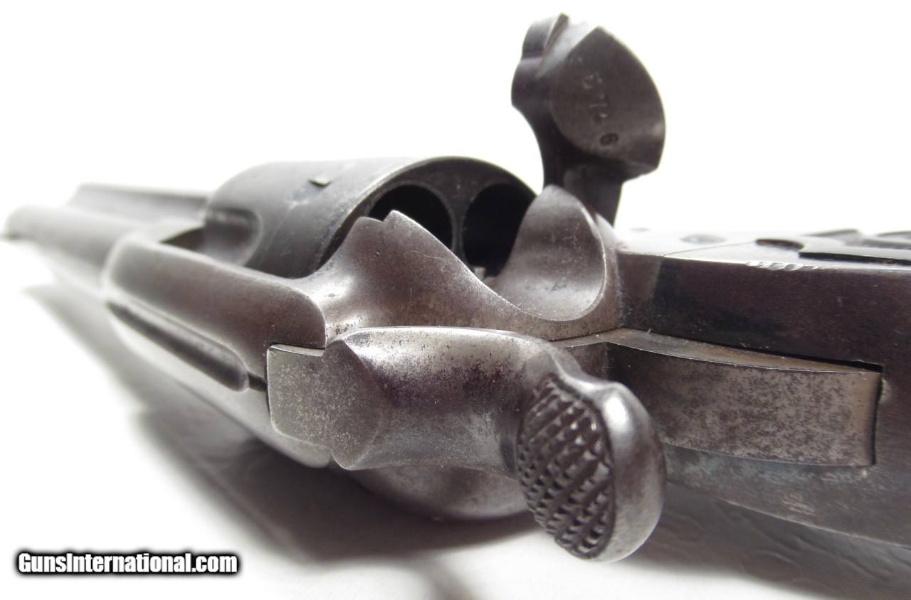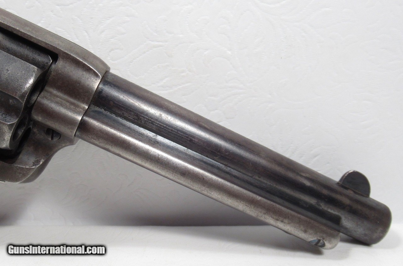 Description: Colt Single Action Army Bisley Model; Serial No. 256991; 38 W.C.F. (38/40) Cal. with 5 ½” Barrel; Factory Letter indicates a 1904 Shipping Date to Lee Hardware Company of Salina, Kansas; Revolver is 100% Matching, Correct, and Original; decent amount of Original Metal Finish Remains; Excellent Original Grips; Full Front Sight; Perfect Screws; Perfect Action; Tight Lockup; Strong Shiny Bore with some minor chattering; Hard to Find a Western Shipped Colt that is 100% Pure and 115 Years Old; LIQUIDATING PERSONAL COLLECTION; Price: $2,800 Shipped; Price includes insured shipping; return policy: three days inspection from the date the item is received; full refund of shipping both ways ONLY IF THE ITEM IS MISREPRESENTED. SOLD Manufacturer: Colt Model: Bisley Serial Number: 256991 |