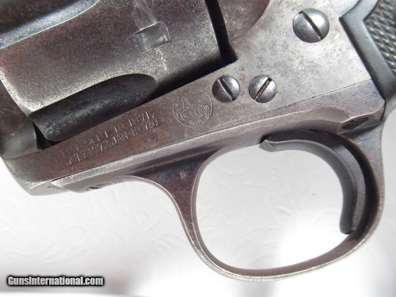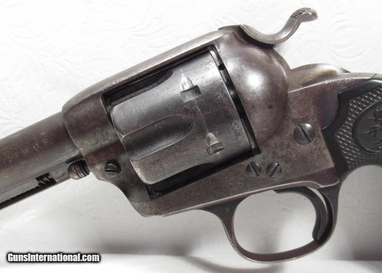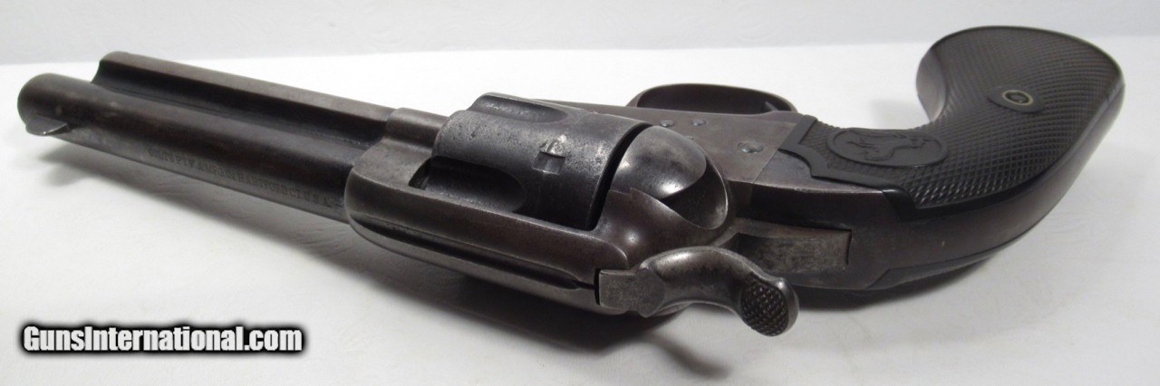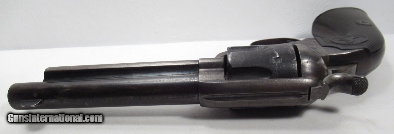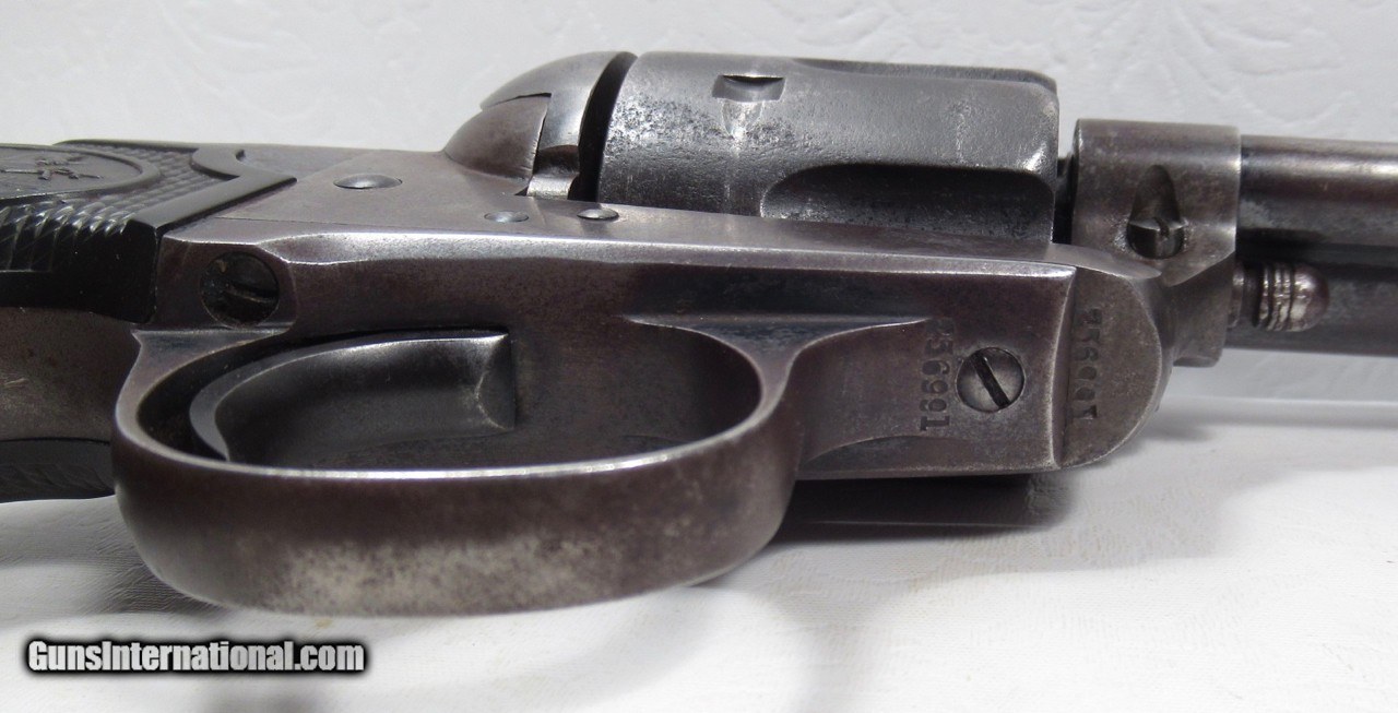 Description: Colt Single Action Army Bisley Model; Serial No. 256991; 38 W.C.F. (38/40) Cal. with 5 ½” Barrel; Factory Letter indicates a 1904 Shipping Date to Lee Hardware Company of Salina, Kansas; Revolver is 100% Matching, Correct, and Original; decent amount of Original Metal Finish Remains; Excellent Original Grips; Full Front Sight; Perfect Screws; Perfect Action; Tight Lockup; Strong Shiny Bore with some minor chattering; Hard to Find a Western Shipped Colt that is 100% Pure and 115 Years Old; LIQUIDATING PERSONAL COLLECTION; Price: $2,800 Shipped; Price includes insured shipping; return policy: three days inspection from the date the item is received; full refund of shipping both ways ONLY IF THE ITEM IS MISREPRESENTED. SOLD Manufacturer: Colt Model: Bisley Serial Number: 256991 |