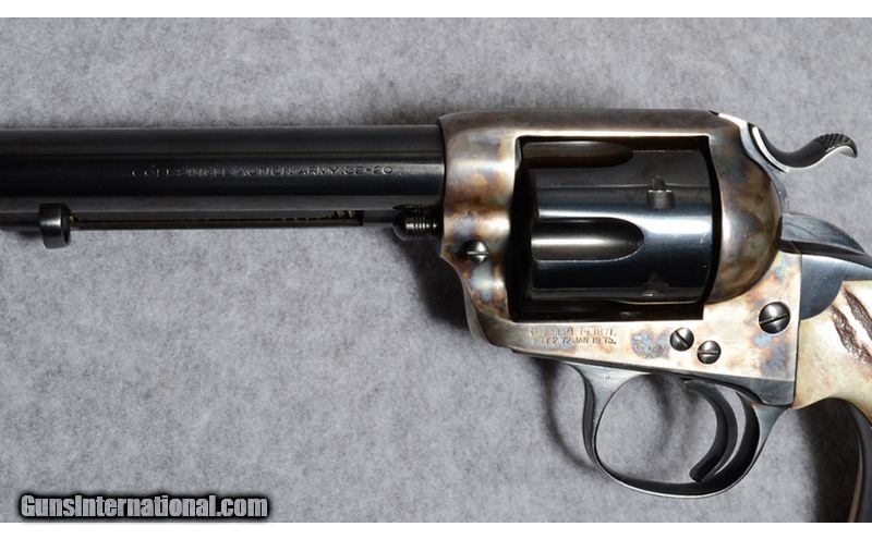 Description: Here we offer a Colt Bisley Single Action Army Revolver, re-barreled with a Colt SAA Barrel, and refinished. This firearm was manufactured in 1904. The serial Number is 256200, which is consistent with the Bisley revolvers. It is Blued with case-hardened frame and hammer. .32-20 Winchester SOLD Curio/Relic: Yes Metal Condition: Excellent with a few minor scratches on the revolving cylinder. Wood Condition: Stag Grips Bore Condition: Excellent Barrels: 7.5 Triggers: One Weight: 3 lbs. Item Location: Tulalip, WA |