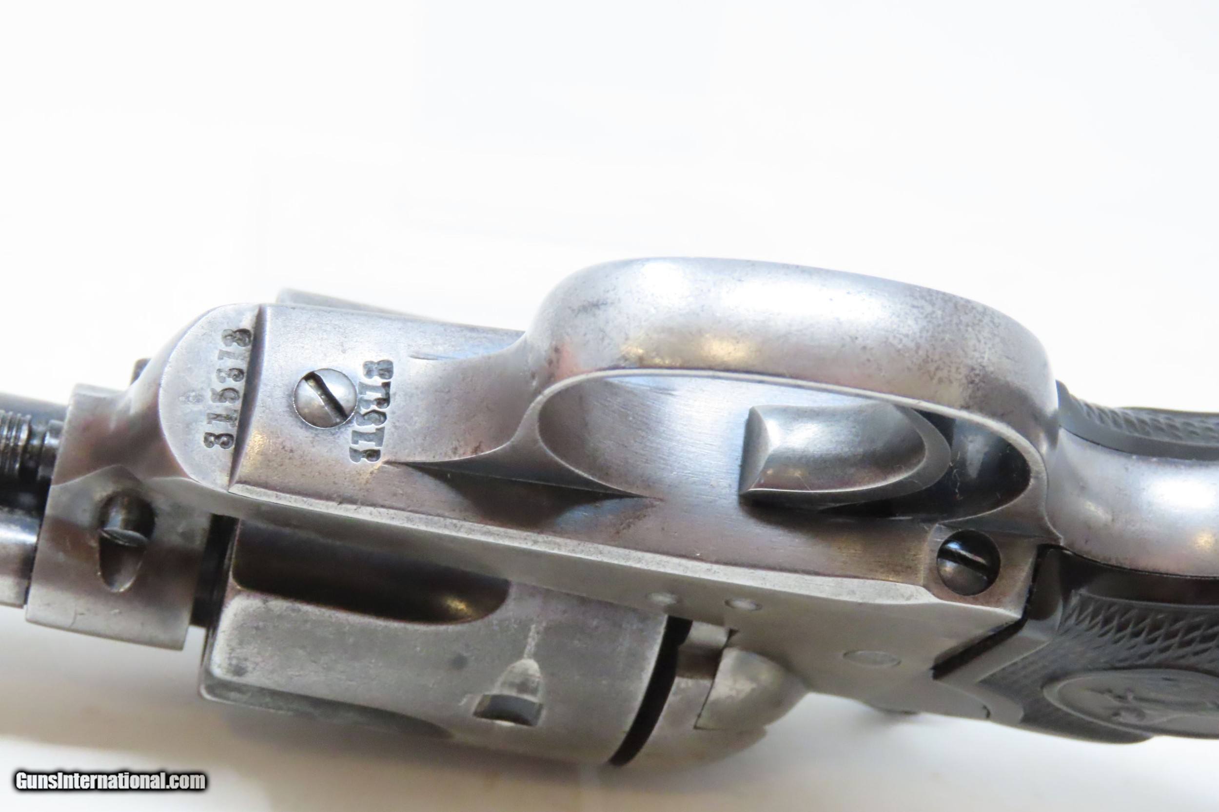 Description: First Generation COLT “Bisley” SINGLE ACTION ARMY .38 Cal. WCF C&R Revolver SAA in .38-40 WCF Manufactured in 1910 Here we present a C&R Colt Bisley Model Single Action Army Revolver in .38 WCF, manufactured in Hartford, Connecticut in 1910. Though Colt enjoyed the largest contracts of any handgun maker during the American Civil War, it had to rely on its array of percussion fired revolvers, namely the 1860 Army until the Smith & Wesson owned Rollin White Patent expired in 1869. This enabled them to begin making revolvers with completely bored through cylinder chambers in order to utilize modern metallic cartridge ammunition in the most effective manner. These revolvers made excellent companions to rifles at the time as they were chambered for the same ammunition, meaning that the user only had to keep one type to feed both guns. In 1869, Colt’s began development of a suitable cartridge revolver in earnest, first coming out with a number of conversions for their percussion lines, until 1872 when they debuted what was to become the Colt Model 1873 Single Action Army in the 1872 U.S. Trials. Needless to say, it won, and became the Army’s revolver of choice. It also became the sidearm of choice for many others like cowboys, guards, lawmen, crooks, shopkeepers and all manner of civilians. This is an example of the Bisley variant of the Colt Single Action Army revolver. The primary differences were a lower hammer spur and a more curvaceous grip frame. These were optimized toward target shooting but many general users and shooters who were not simply target shooters preferred them as well. The overall condition is near fine. Original finish/patina. Excellent, crisp action. Bright bore. Sharp markings. Both grips are in fine shape. Numbers match. This Colt Bisley would make a great addition to your collection, made in 1910! This firearm is classified as a Curio & Relic. Barrel is 5-1/2 inches. Caliber: .38-40 Winchester Center Fire Overall condition as seen in photos. Very Fast. Very Safe. FREE SHIPPING. Will need to be sent to your local FFL or C&R licensee. This firearm is classified as a Curio & Relic. Guaranteed AUTHENTIC & Includes CERTIFICATE OF AUTHENTICITY. ancestryguns $3700 #220668 SOLD Curio/Relic: Yes |