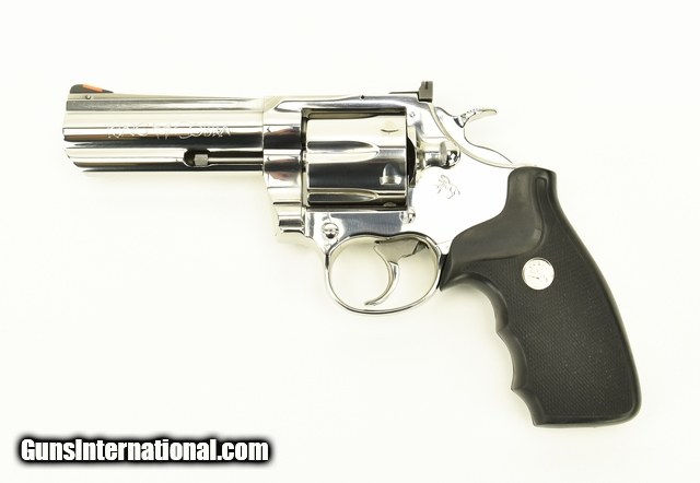Colt King Cobra .357 Magnum caliber revolver. 4” Model with scarce bright polished stainless finish. Mint condition with box.