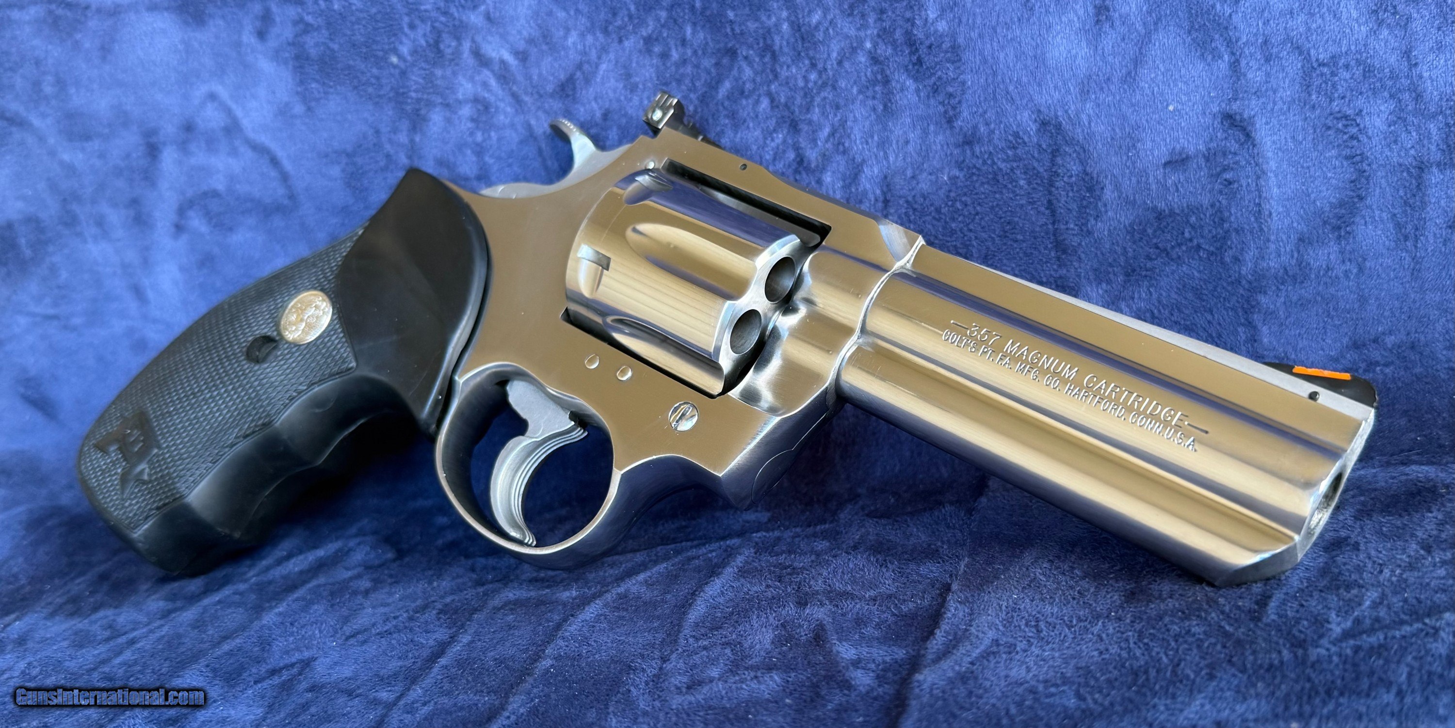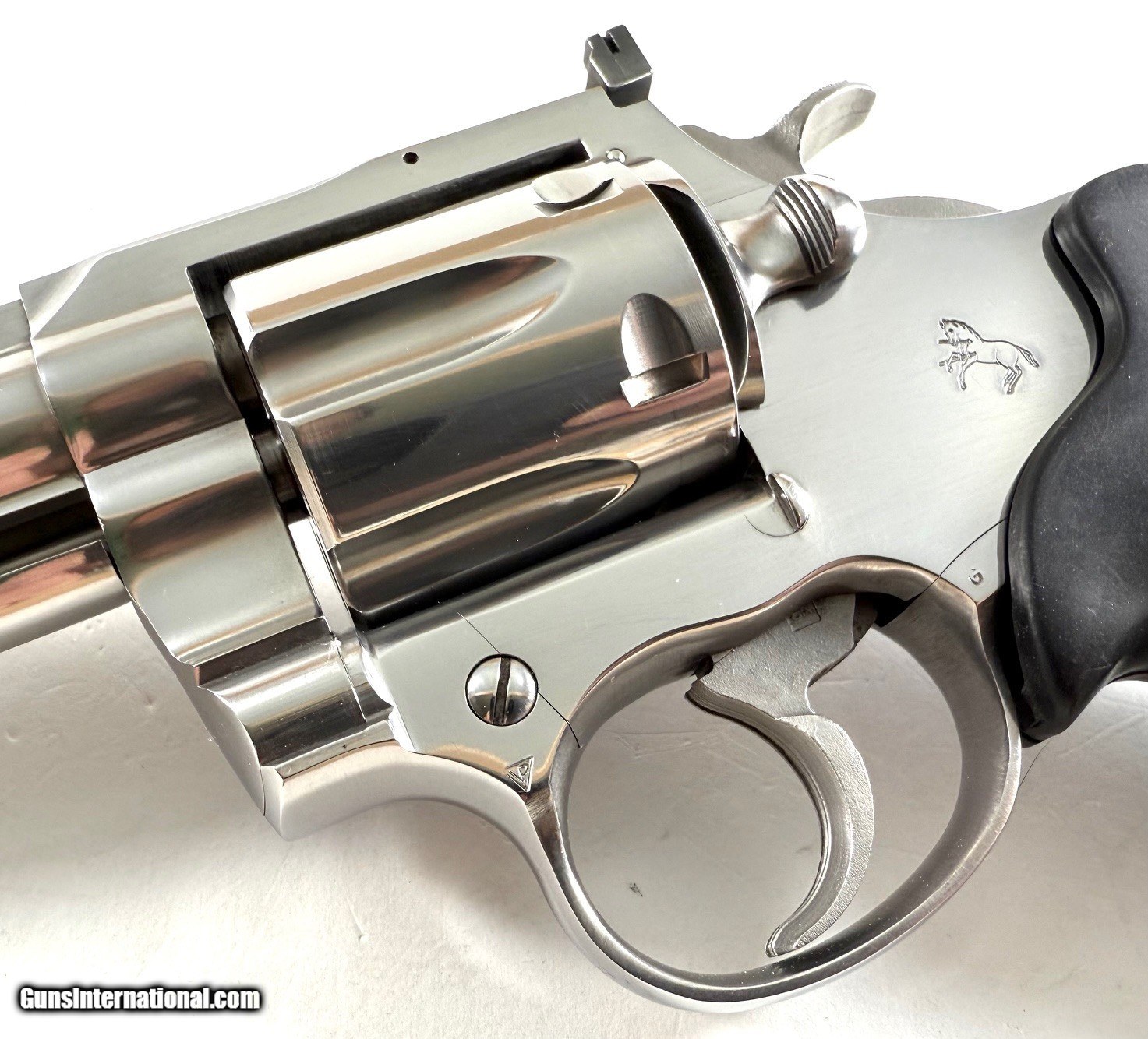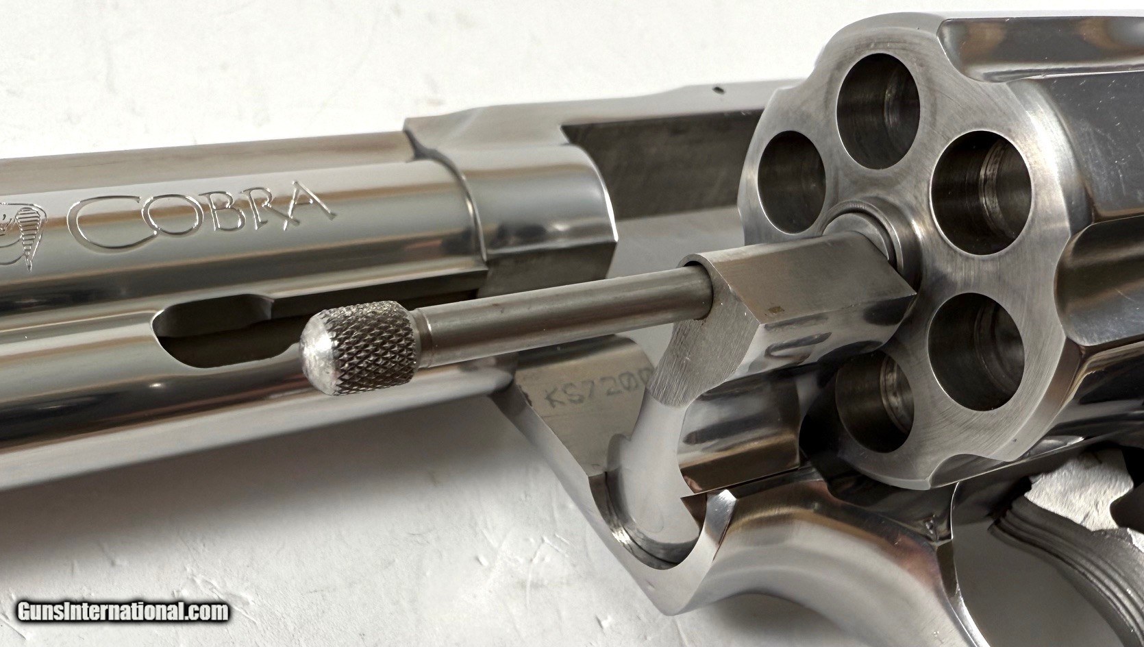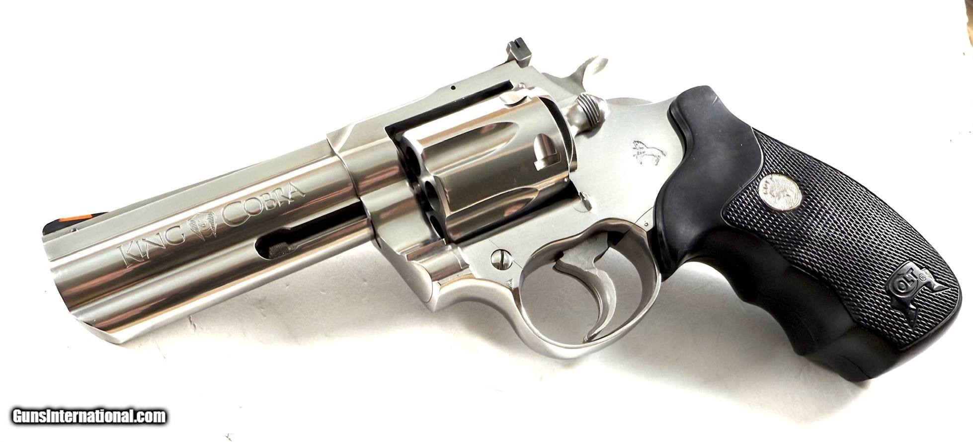Description: This is the pre-new production Colt King Cobra "Enhanced" package with a 4" barrel. It has the larger factory cylinder release and a tuned action. I have had several King Cobras and this has one of the smoothest actions of them all. Almost no signs of use. Extrememly clean. Has factory colt emblem grips. Zero rust or pitting of any king. Frame is perfect under the grips. Super nice finish. No case or paperwork. Shipping flat rate of $35 to FFL of your choice. I am a type 01 FFL dealer. Feel free to text me with questions at 503-329-6131 NO INTERNATIONAL SALES AND NO SHIPPING TO CALIFORNIA OR ANY OTHER STATE THAT HAS SIMILAR RESTRICTION. PLEASE KNOW YOUR STATE AND LOCAL LAWS BEFORE AND MAKE SURE YOU ARE NOT DISQUALIFIED FROM OWNING THIS GUN. NO LAYAWAY OR TRADES! Credit card sales add 3% to total cost. SOLD Handgun Caliber: .38 Special, .357 Magnum |