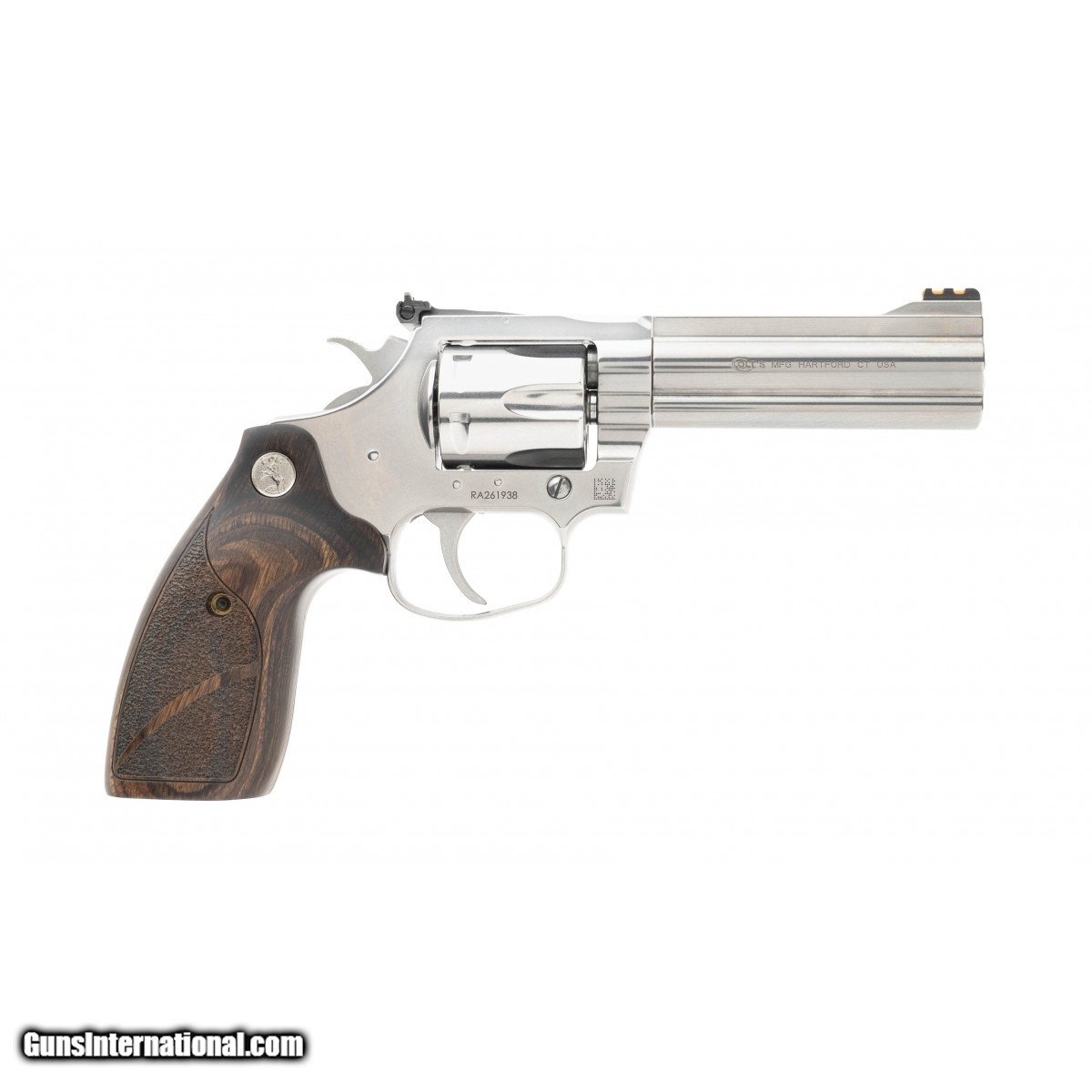 Colt's Manufacturing King Cobra target revolver, 357 magnum, 4.25"" barrel, steel frame, stainless finish, altamont wood grips. NEW UPC:098289001306