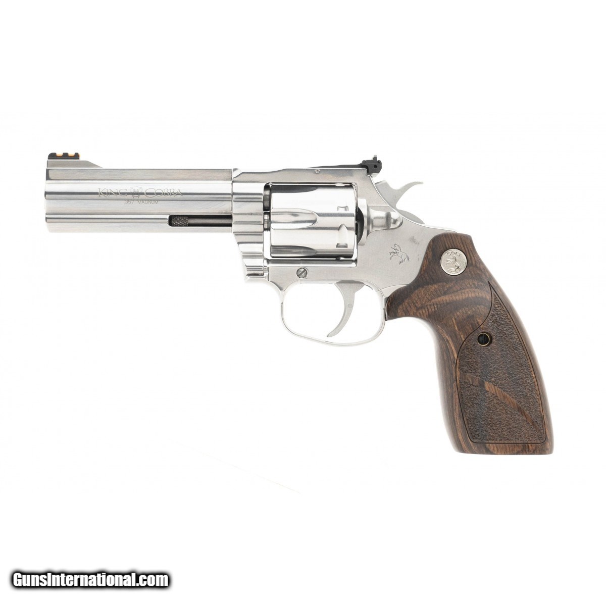 Description: " Colt's Manufacturing King Cobra target revolver, 357 magnum, 4.25"" barrel, steel frame, stainless finish, altamont wood grips. NEW UPC:098289001306 SOLD |