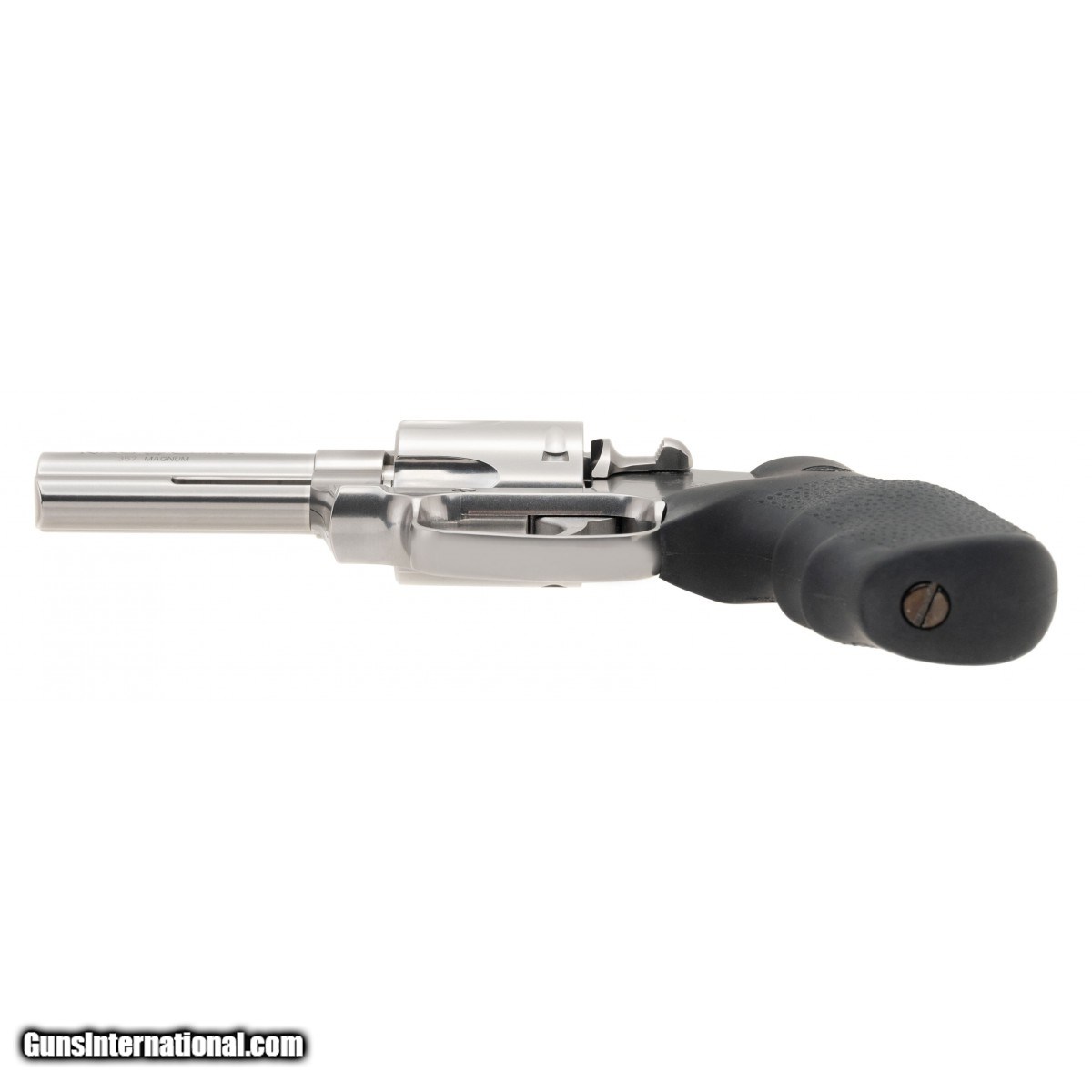 Description: " SN: RA251499. Modern production. .357 Magnum with a 3"" barrel, bore is excellent. Double action revolver with polished stainless finish, gold bead front sight and black rubber grips. Overall excellent condition. Comes with box and wood grips. SOLD |