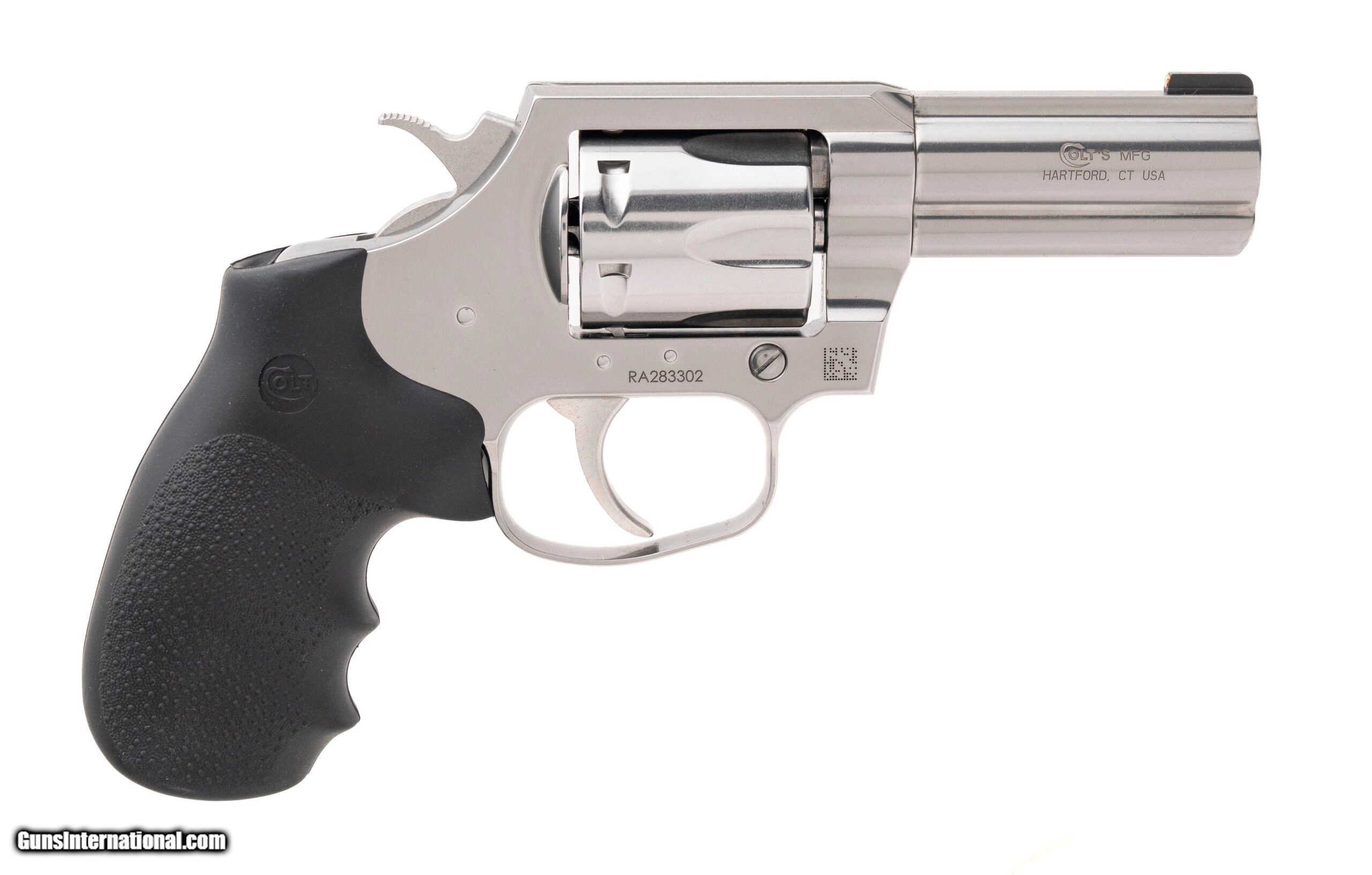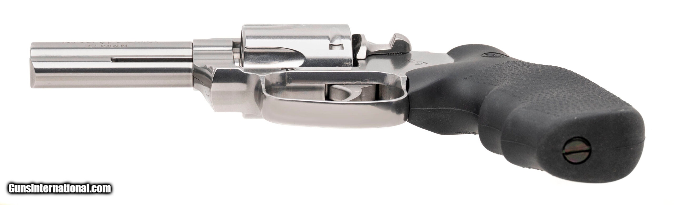 Description: "SN: RA283302. Modern production .357 Mag with a 3"" barrel. Stainless steel small frame revolver with polished finish and rubber grips. Excellent condition with case. SOLD |