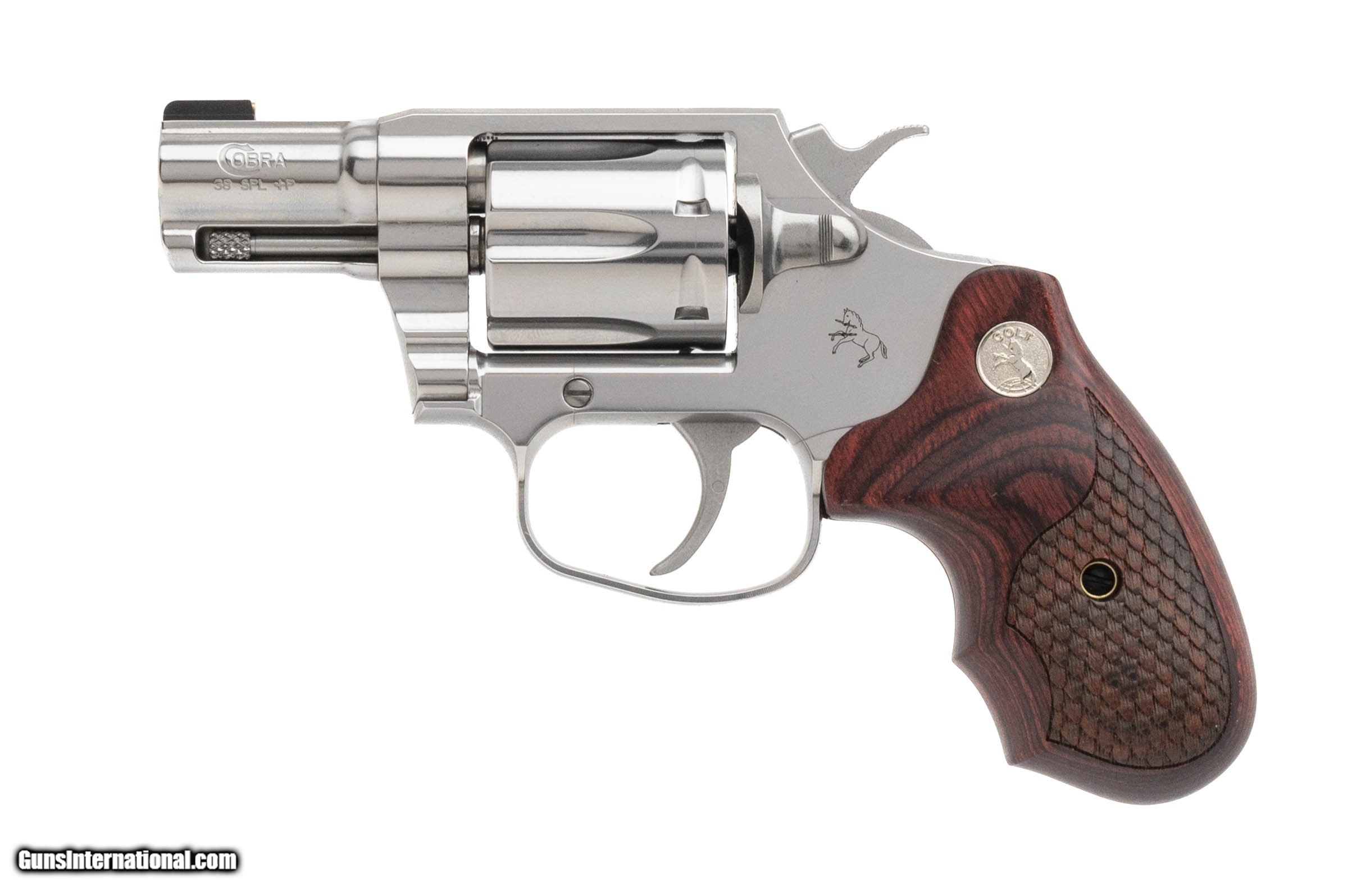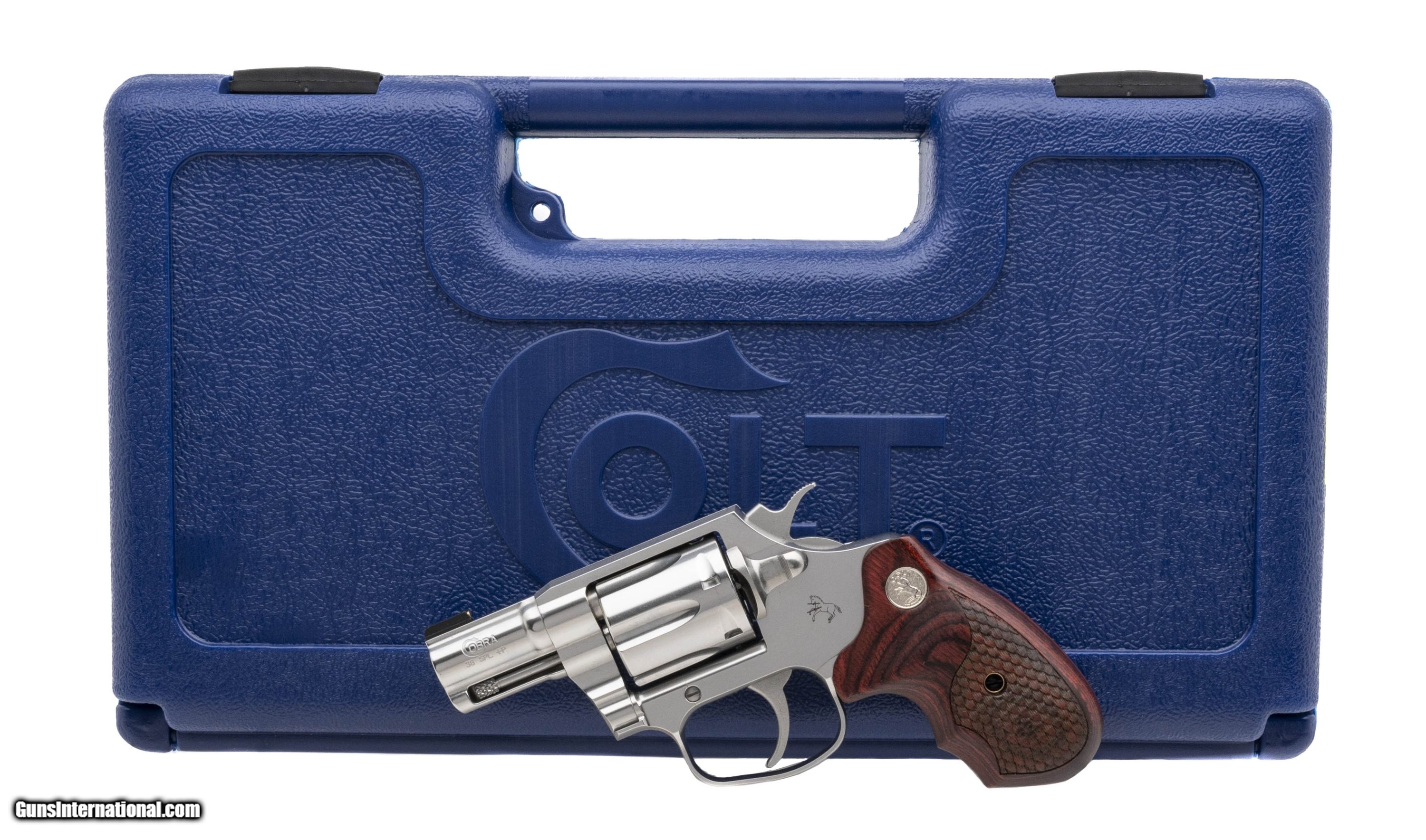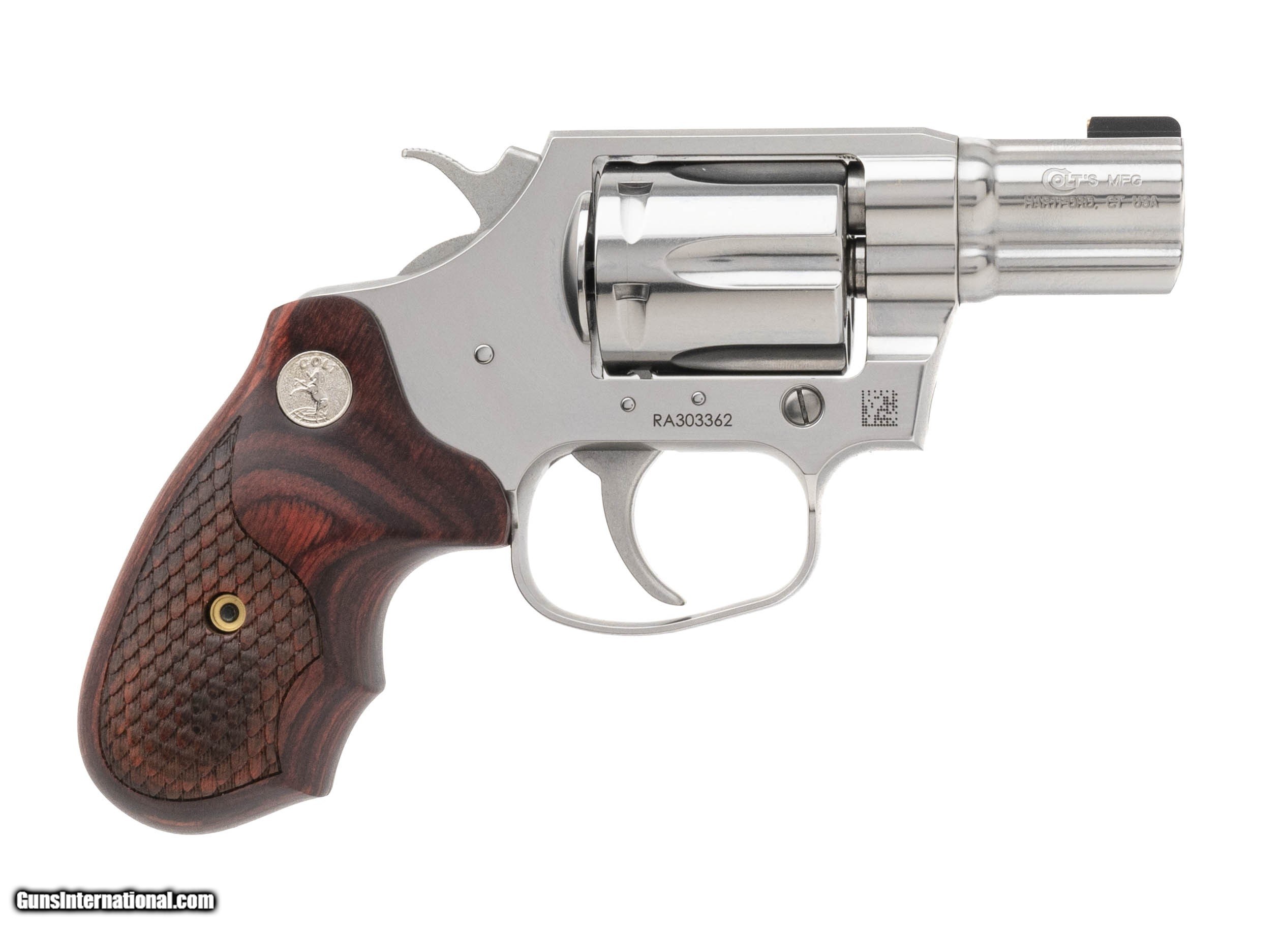 Description: "Snub nose stainless steel revolver with Colt snake scale grips and gold bead front sight. NEW. UPC: 098289007223 (STOCK PHOTO) SOLD |