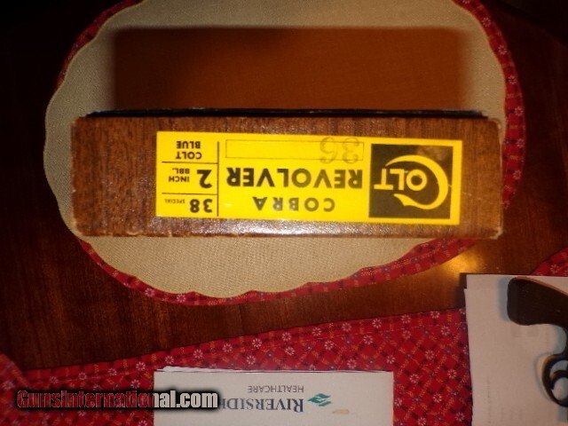 Description: Up for sale is an unfired 1st Generation(1966) Colt Cobra in the original box.This revolver is new It has never been loaded or fired The owners manual is for the newer Cobras.I only accept Money orders and Cashiers checks and i only ship to the lover 48 for $50.00.I'll ship to your FFL by USPS Express mail. SOLD Handgun Caliber: .38 Special Manufacturer: Colt Model: Cobra Serial Number: 219436 Barrel Length: 2in Bore: excellent Condition: Like new Metal Condition: excellent Wood Condition: excellent Bore Condition: excelent Manufacture Date: 1966 |