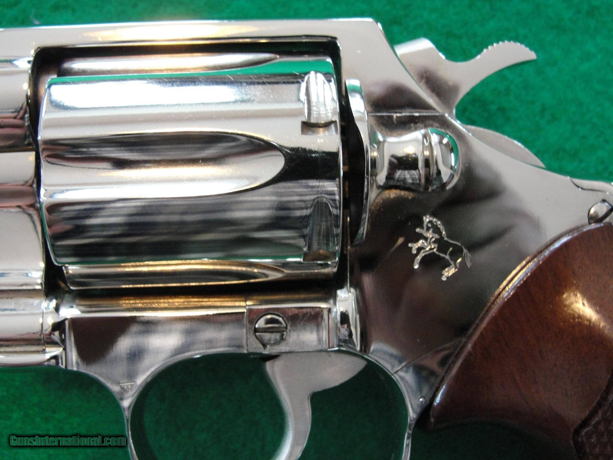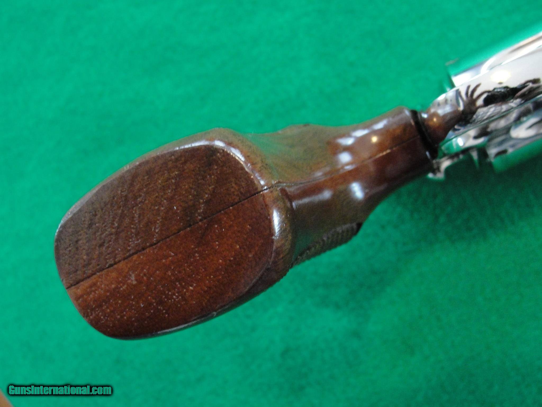 Description: Old School Nickel Snubby Revolver! Lightly used, in excellent condition. Has a few dings and pressure marks on the grips, otherwise, factory nickel and wood finish look superb! We see just enough soot on the breech and cylinder face to tell its been shot a few times, and It could use a good detail-cleaning. Superb bore and chambers, mechanically fine, great lock up. Getting hard to find these in fine shape! No box or papers. # H930xx made 1975. CA sales OK, but ONLY by face-to-face PPT in the SF East Bay Area. Email or call for more info. SOLD |
